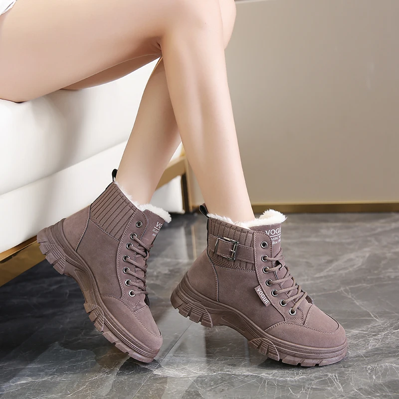 2023 Winter Women Boots Medium Heel Comfortable Ankle Ladies Boots Fashion Designer Shoes Solid Color Lace-Up Chaussure Femme