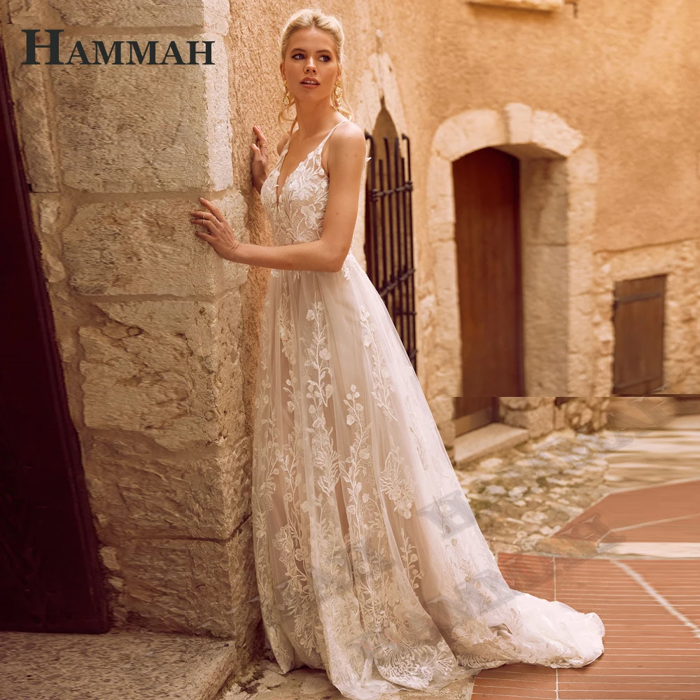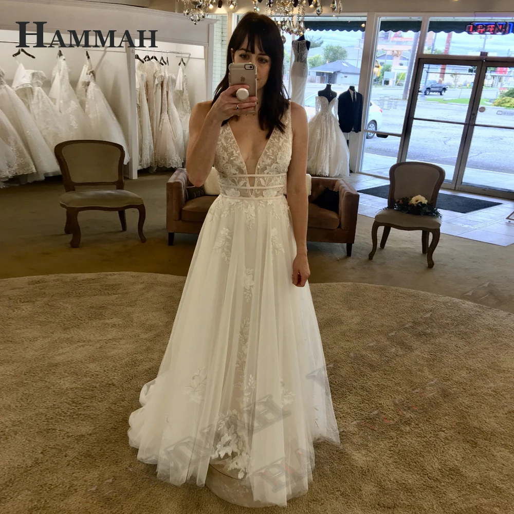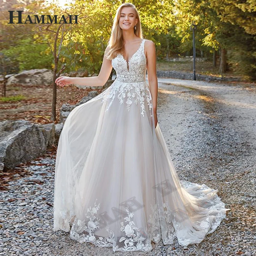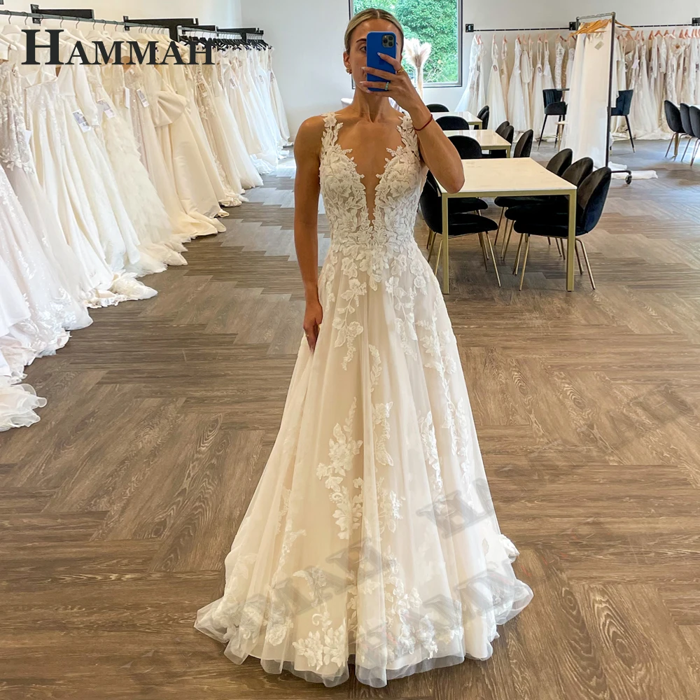 HAMMAH V Neck Tank Appliques Wedding Dresses For B…