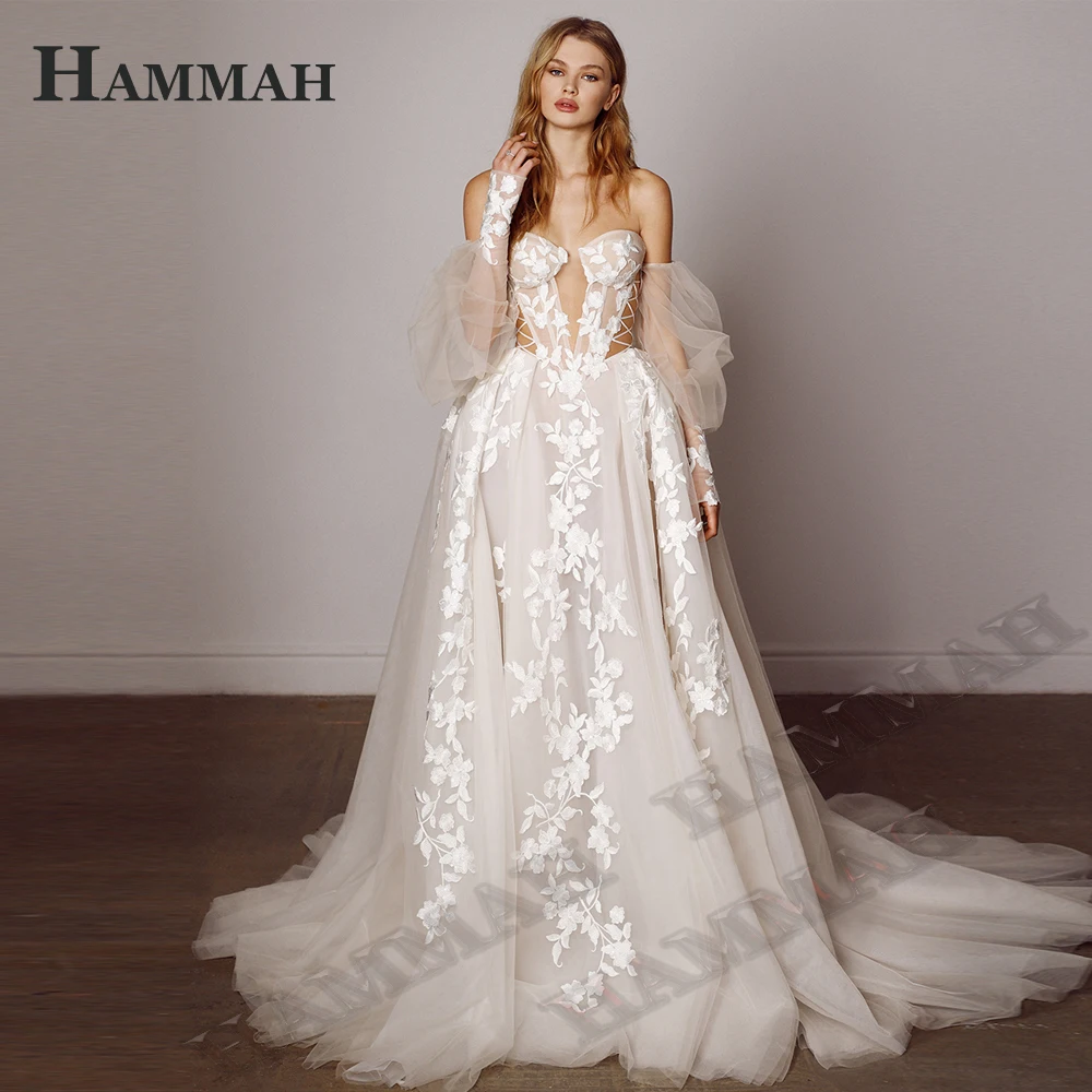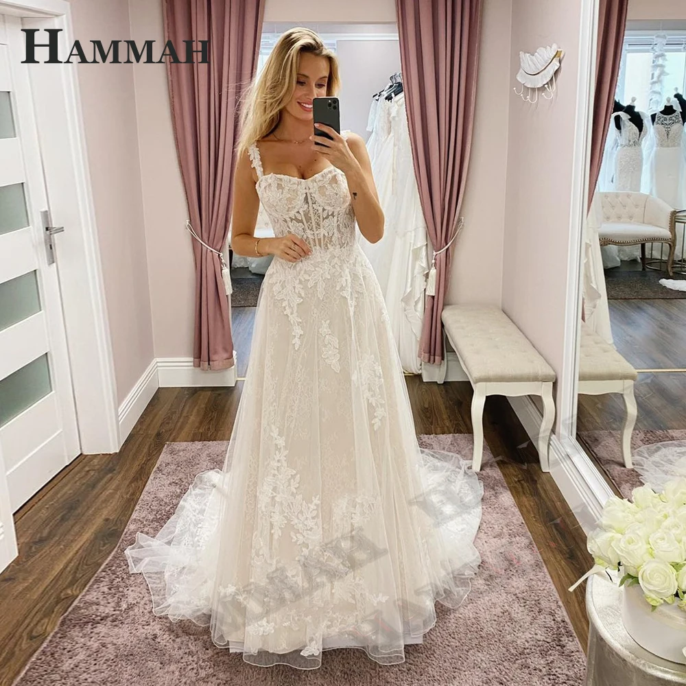 HAMMAH Sweetheart A Line Wedding Dresses Appliques…