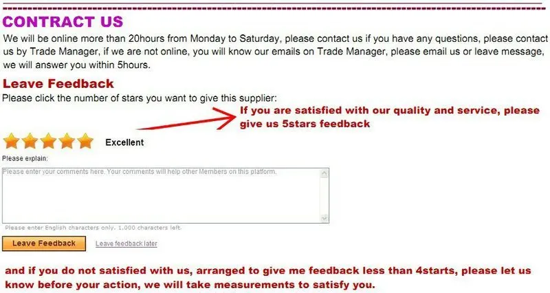 We hope you are satisfied with our dress and service. If there’s anything problem, please contact us first, we will do our best to help you.
