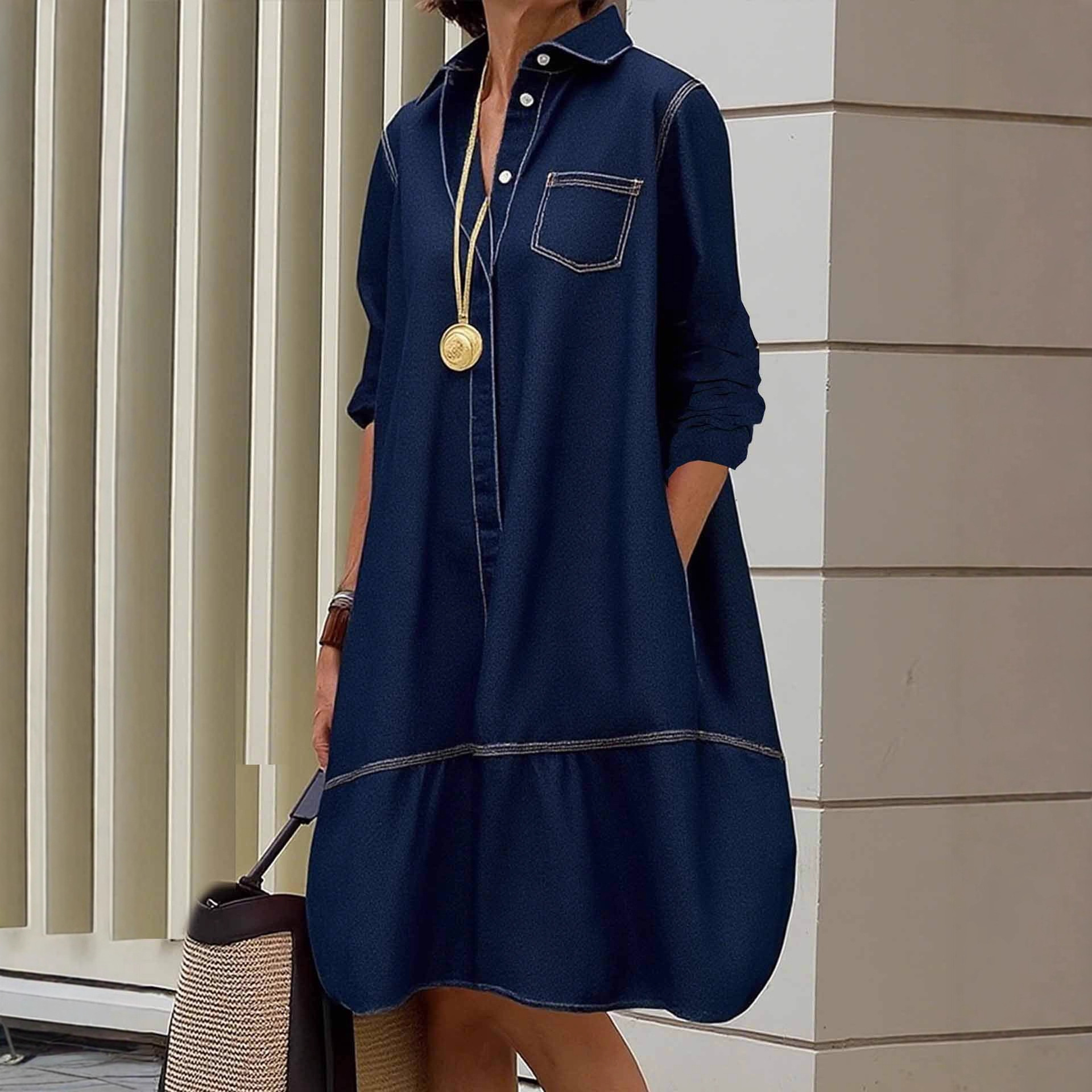2025 New Simple Long Sleeves Loose Solid Color Lapel Shirts Dress Womens Fall Spring Elegant Buttoned Pockets Midi Dresses