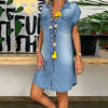 Women Fashion Summer Casual Jeans Dress Short Sleeve High Quality Solid Denim Sundress Turn Down Collar Mini Party OL Dress