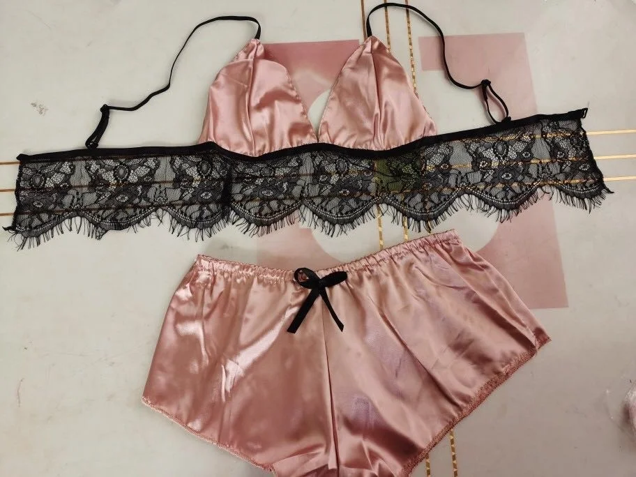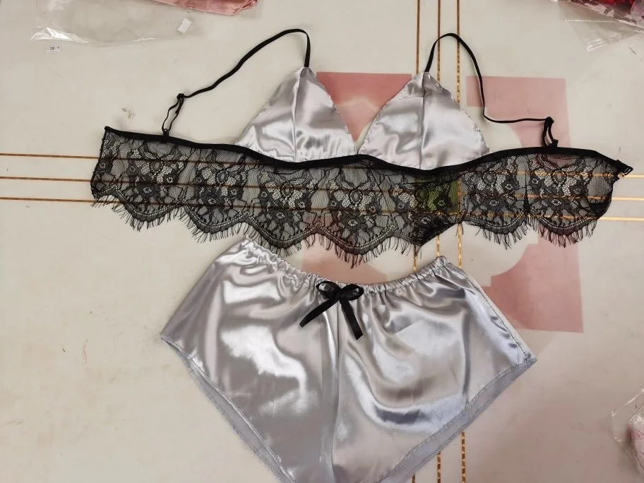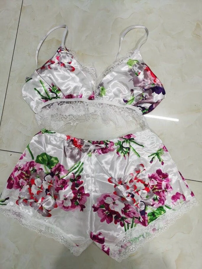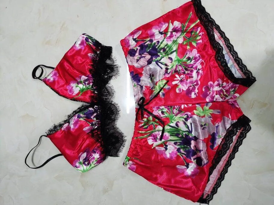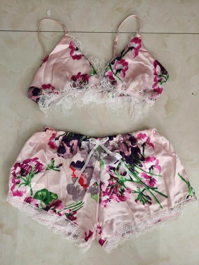 2PCS Women Underwear Sexy Silk Satin Lingerie Pajamas Crop Tops Bra+Shorts Sets Sexy Female V-Neck Sleeveless Nightwear