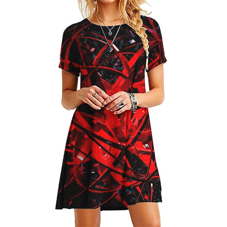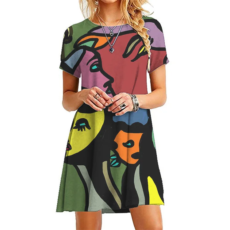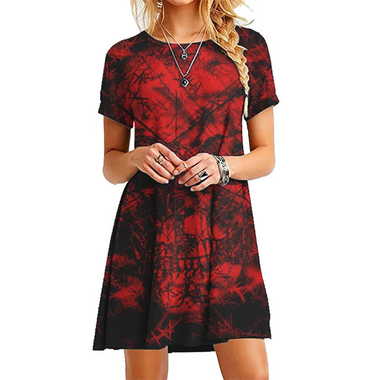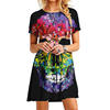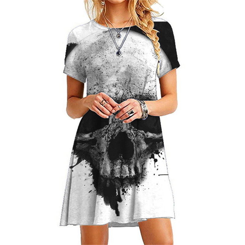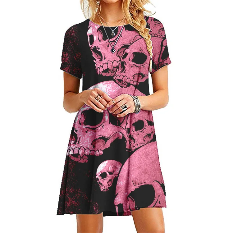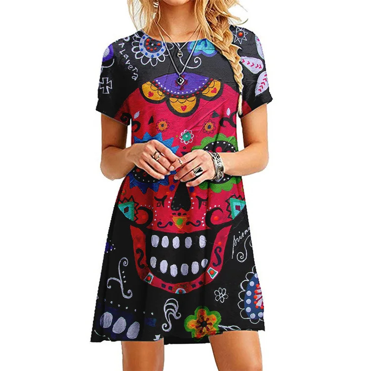 3D Printed Skull Print Fashionable Women's Short Skirt O Neck Short Sleeve Multicolor Casual Ladies Dress dresses for women 2022