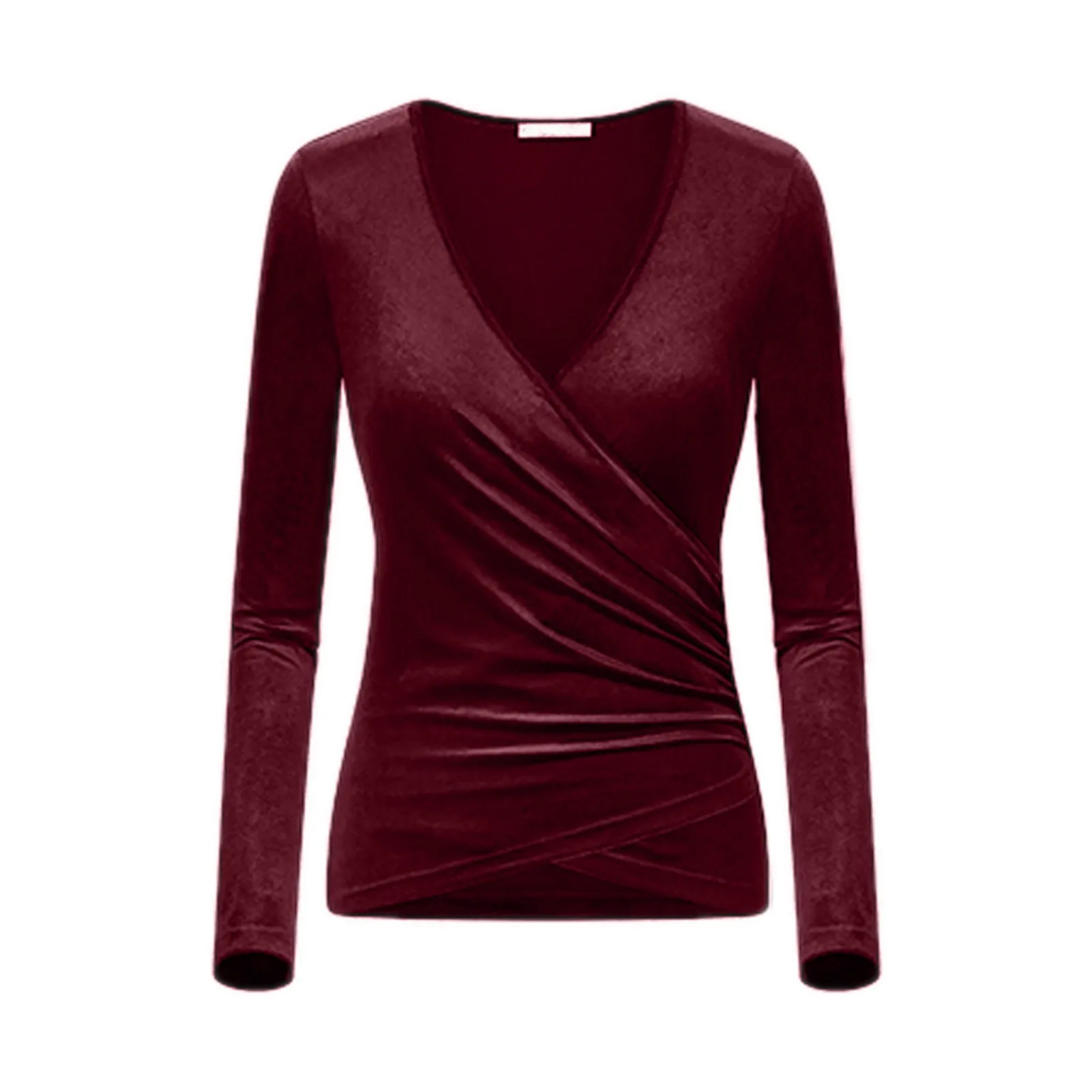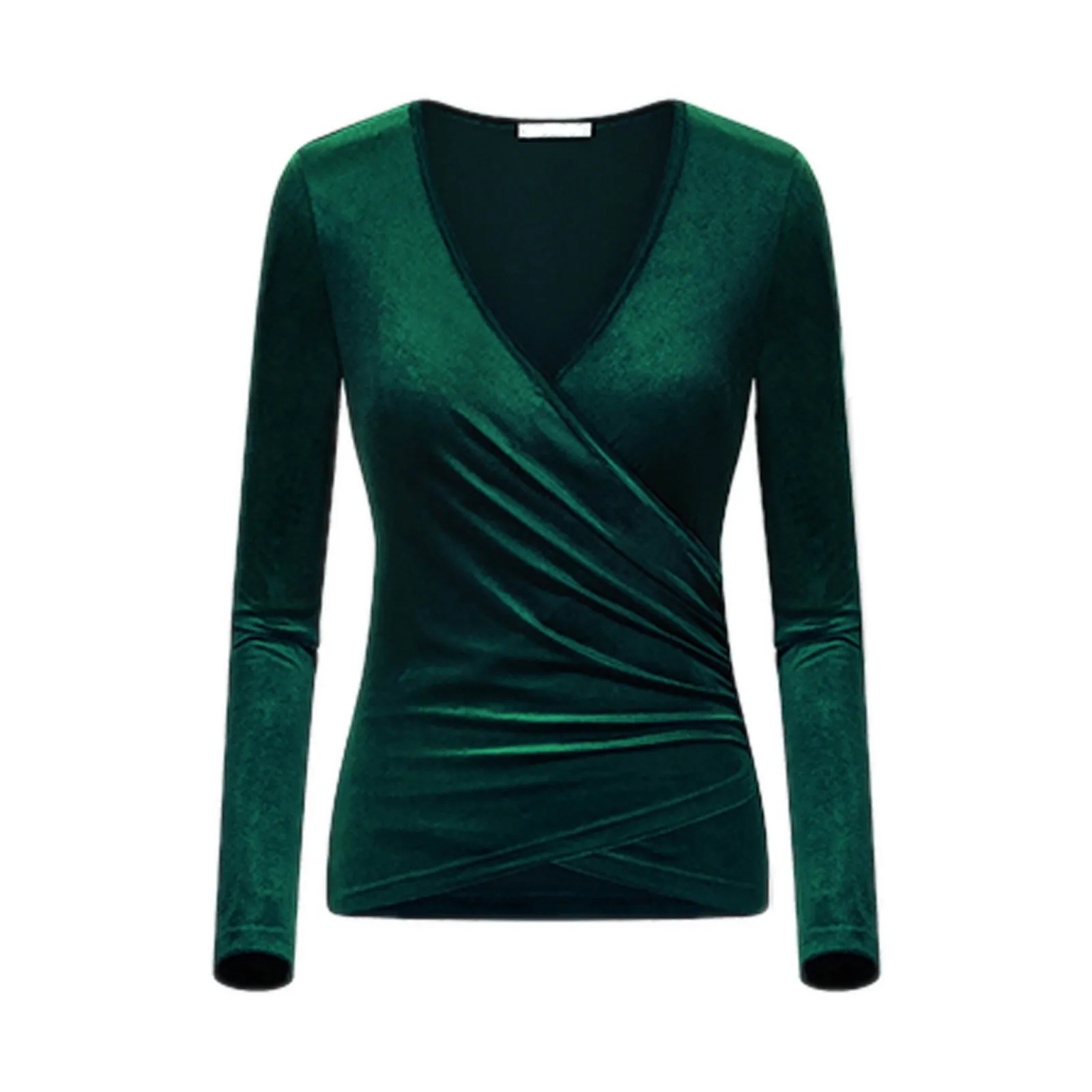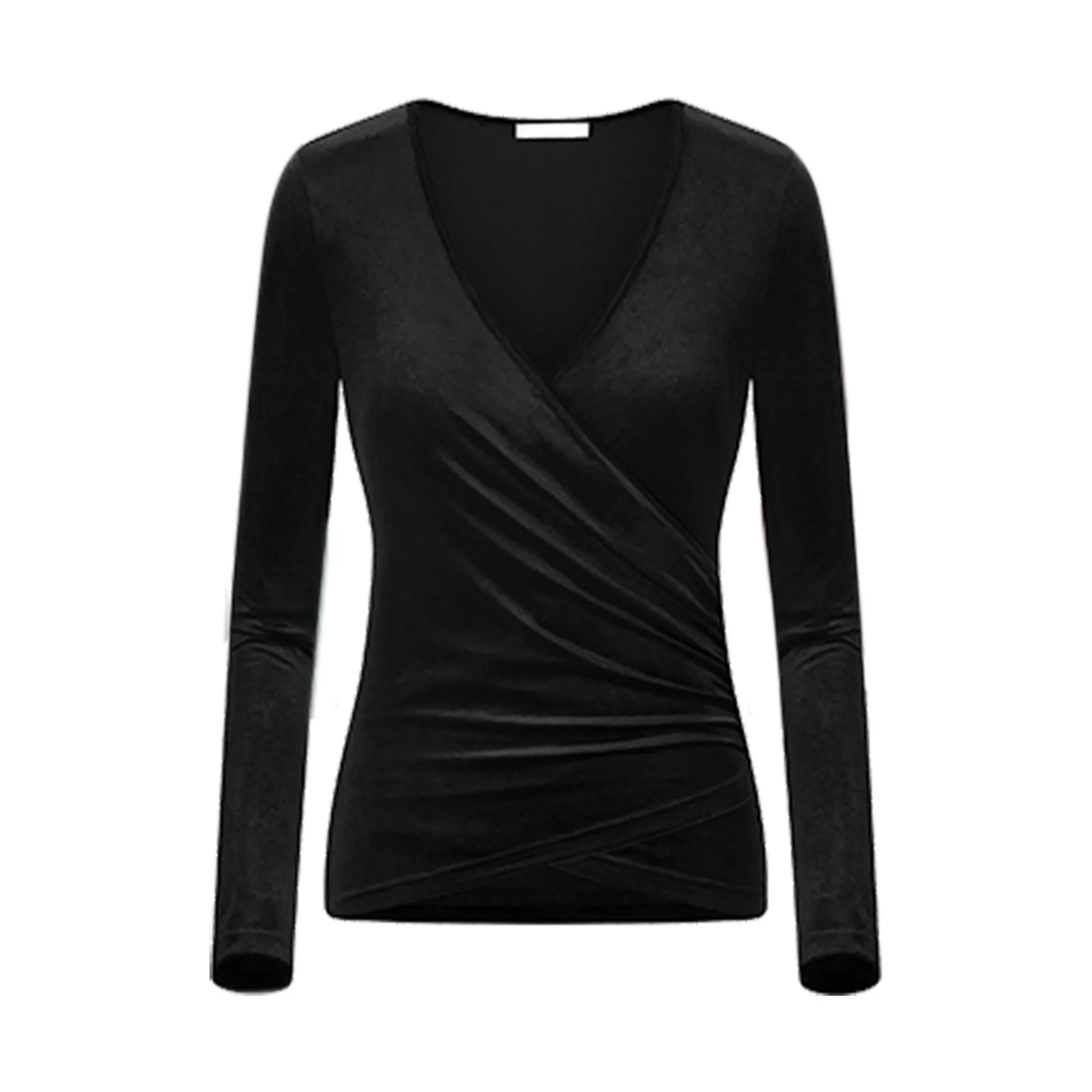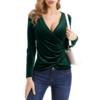 Women Deep V Neck Long Sleeve Velvet Unique Cross Wrap Sexy Slim Fit Tops