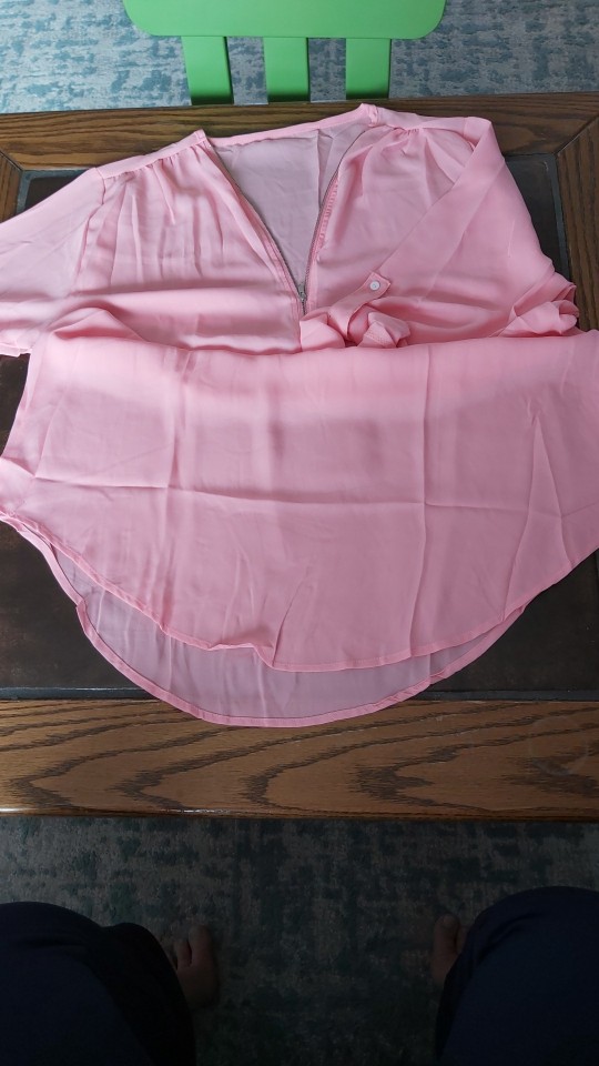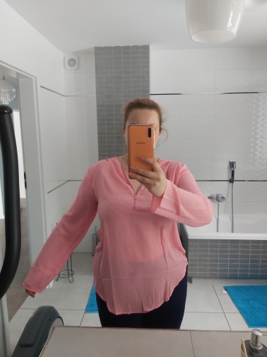Zamówiłam size XXXL, size The agrees. Sleeves are wide, but the podwijają, so it not completely the mind. Neckline is nicely arranged. Material the elektryzuje, but I hope that after washing it will change. No brzydkiego smell. The downside is that the material is hard transparent, so to work rather is not suitable. Down shirt askew cut out, no symmetry.