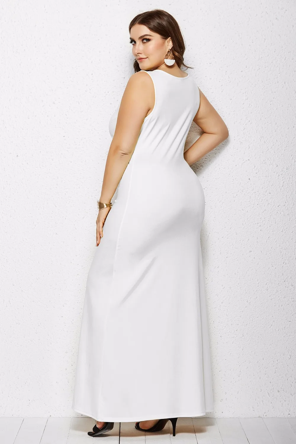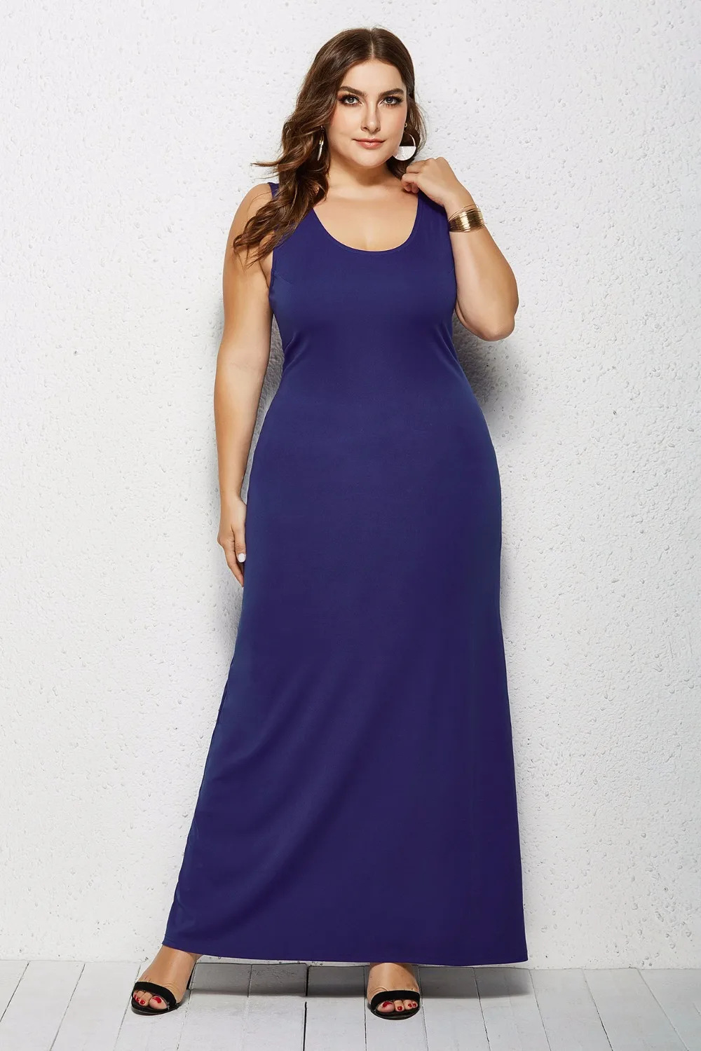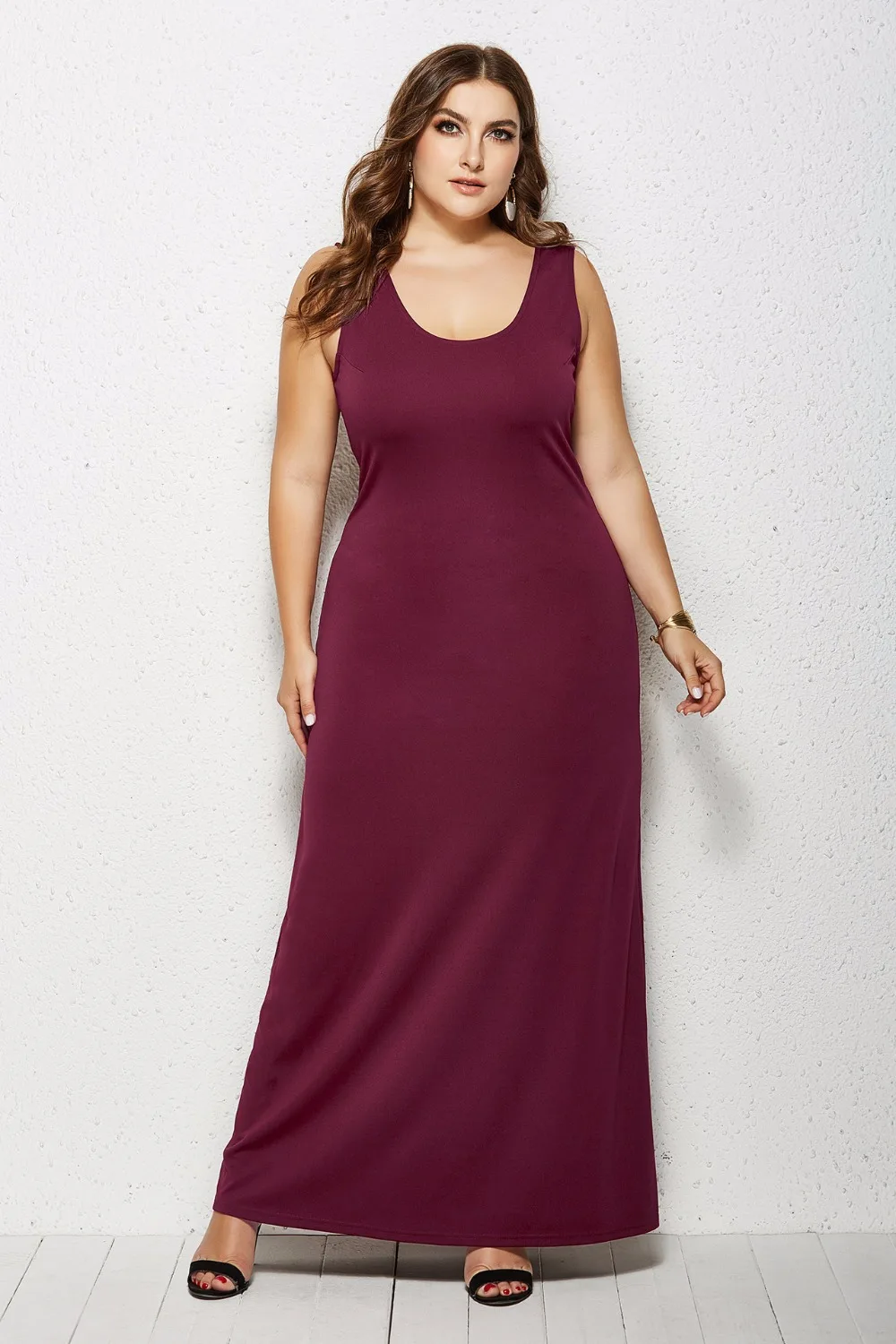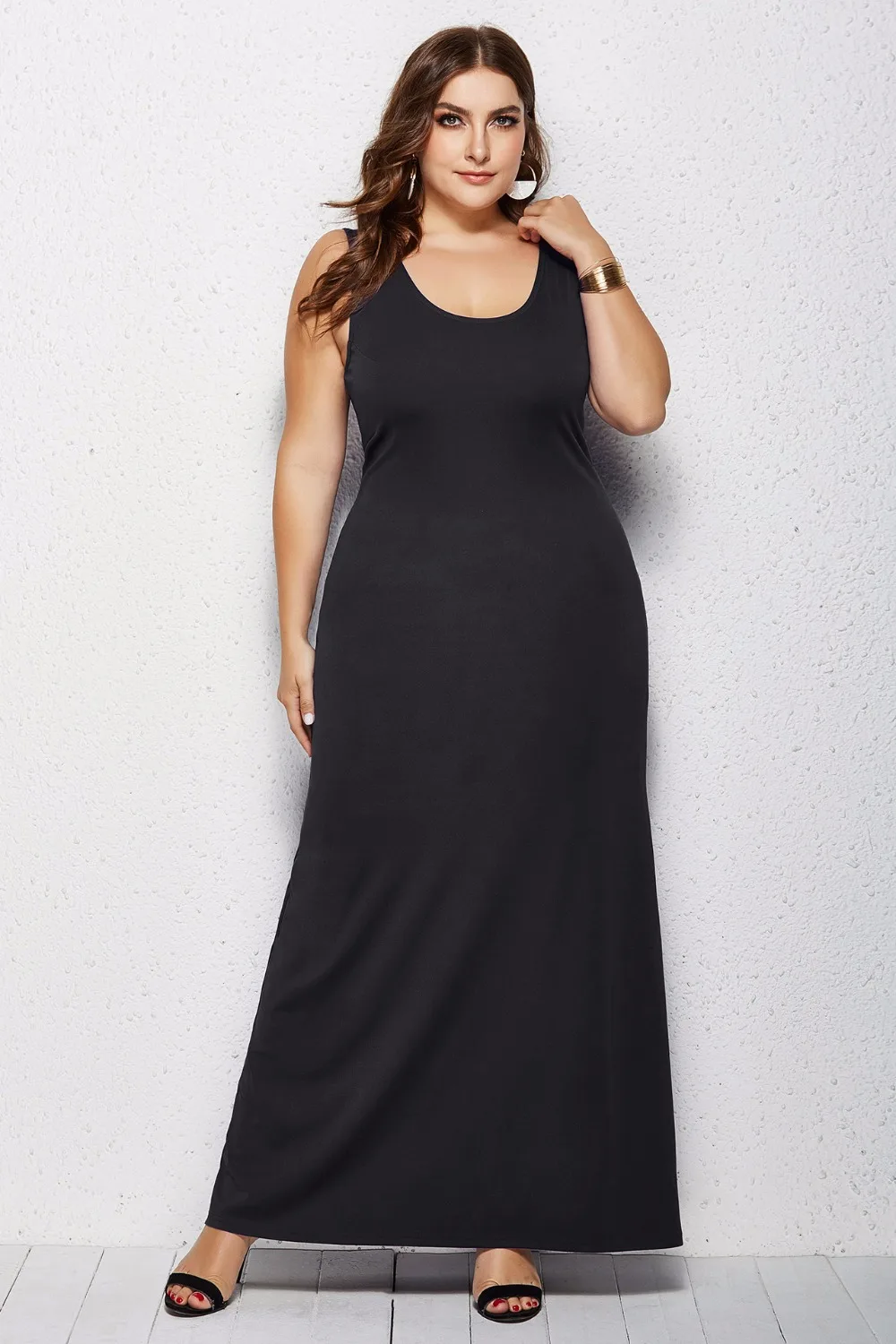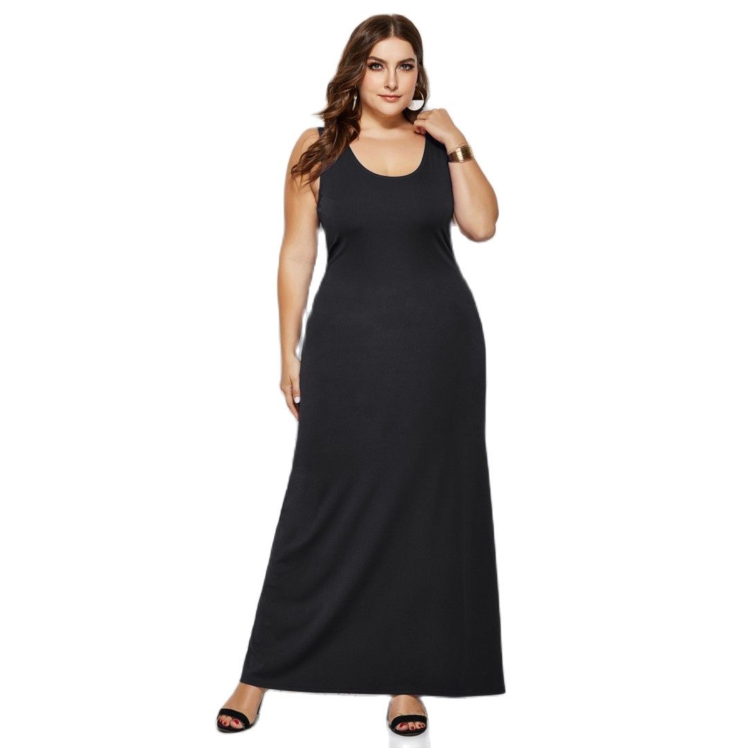 5XL Plus Size Tank Robe Summer Casual Women Sexy Dress O-neck Sleeveless Maxi Dress Streetwear Ladies Black Long Dress Vestidos