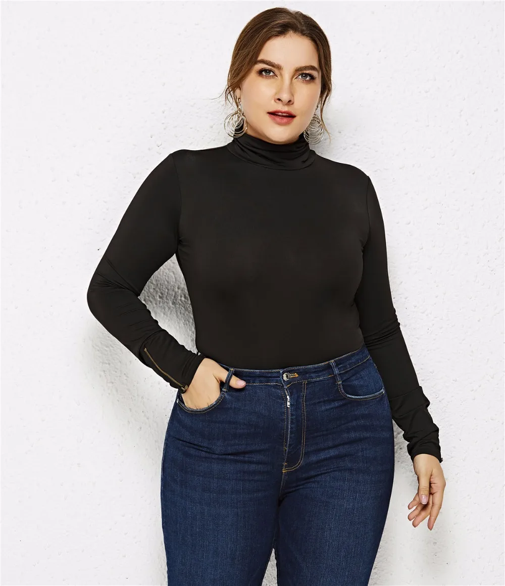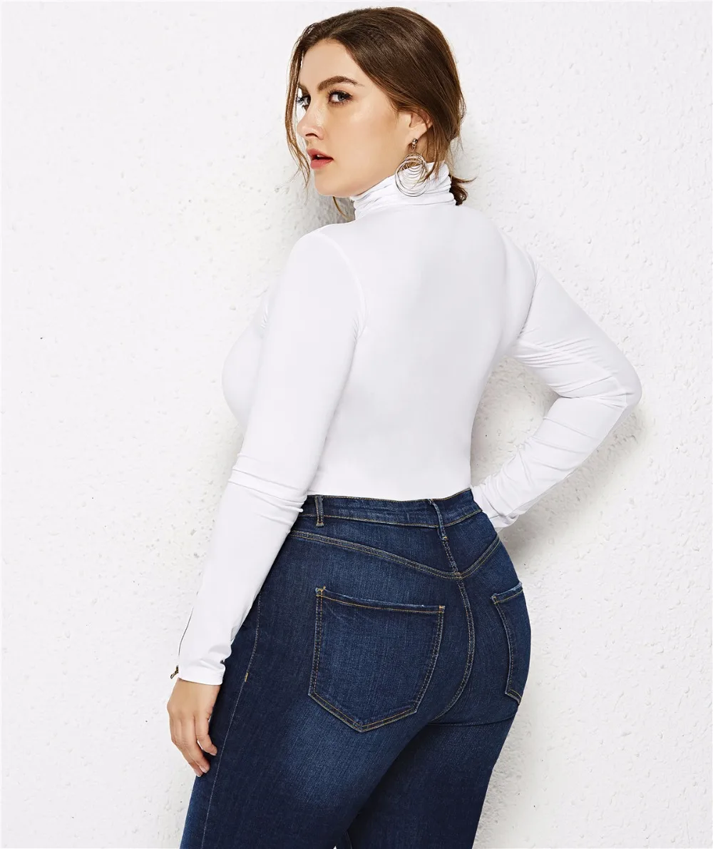 5XL6XL Jumpsuits For Women Long Sleeve Turtleneck Slim Women Sexy Bodysuit Black White Red Knitted Plus Size Women Romper Zipper