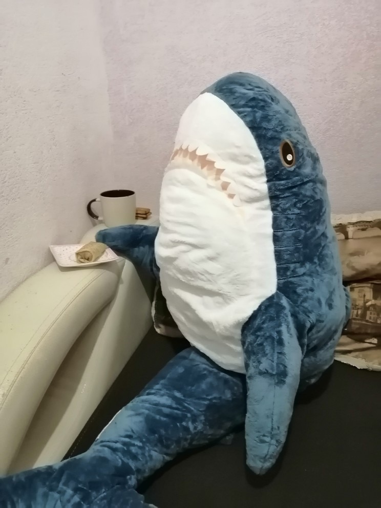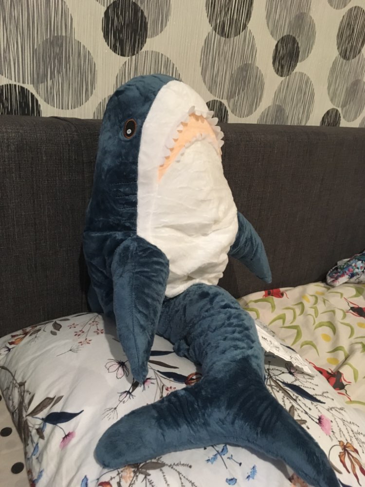 Акула пришла за 2 дня до Навашино, игрушка прикольная , но смятая ,во многих местах свалялась, в целом 4/5 :)