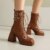 9cm Square Heel Waterproof Platform Short Boots Heart-shaped Metal Buckle Rivets Leather Short Plush Winter Ankle Boots 35-45