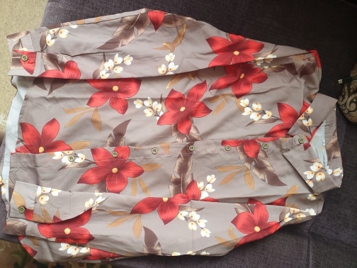 Blouse-delight! Bright red flowers on the khaki field is something. Fabric-synthetics, thin, but in summer at + 30 will be hot. Size L on the rose. m, I recommend the store.
