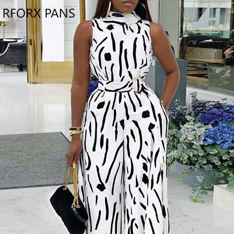 Abstract Print Sleeveless Wide Leg Jumpsuit