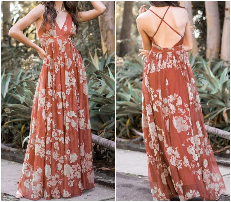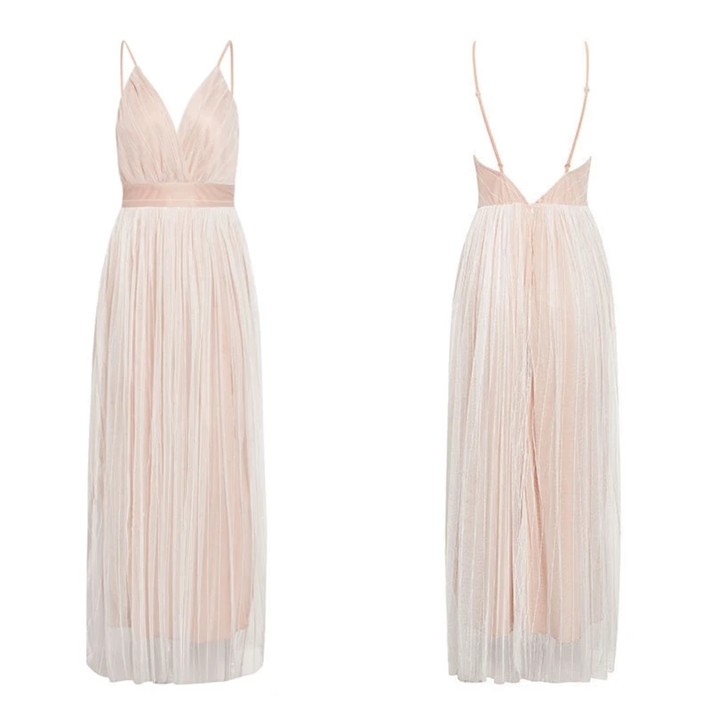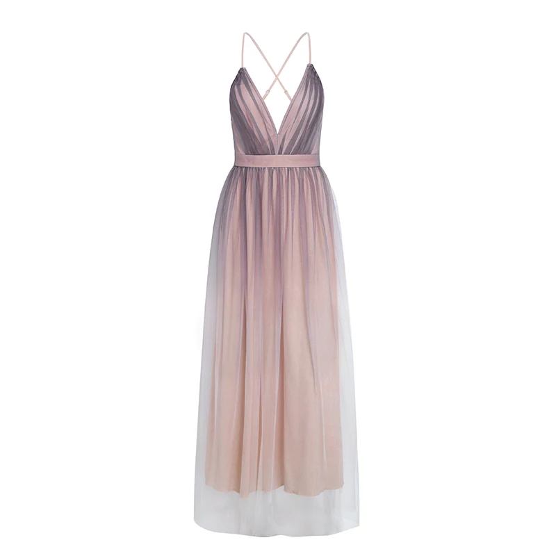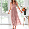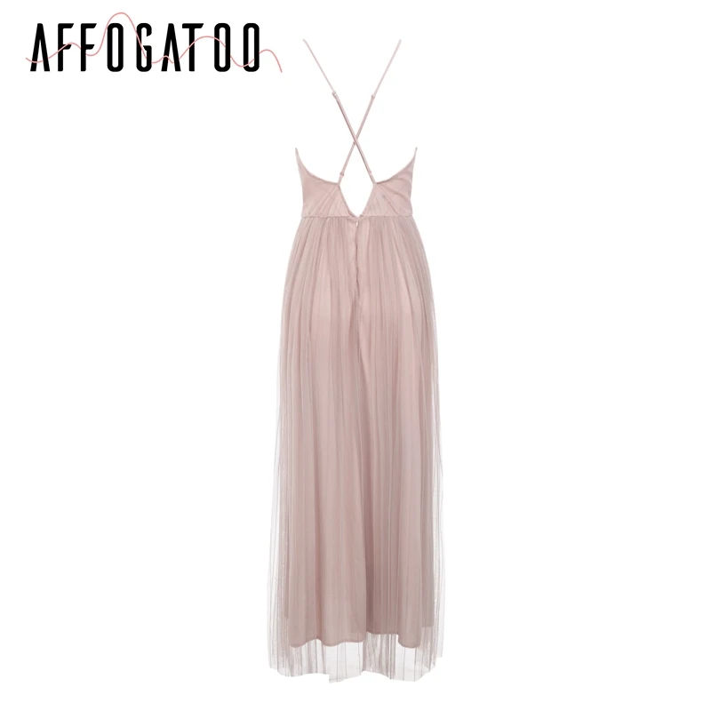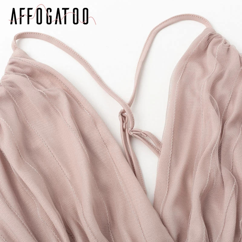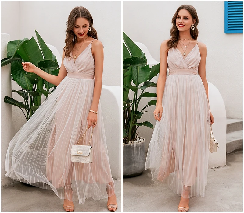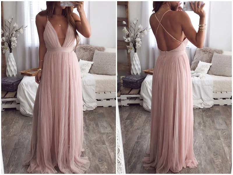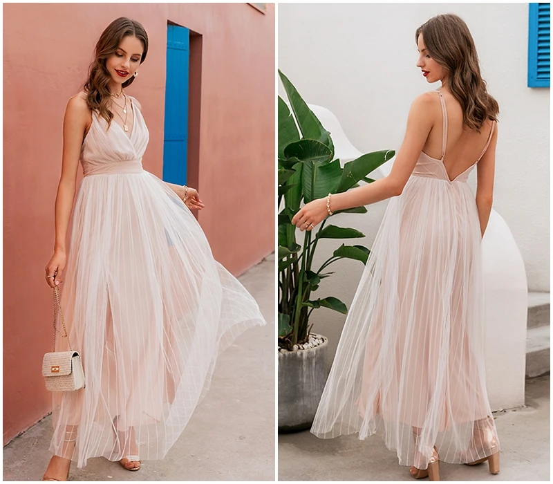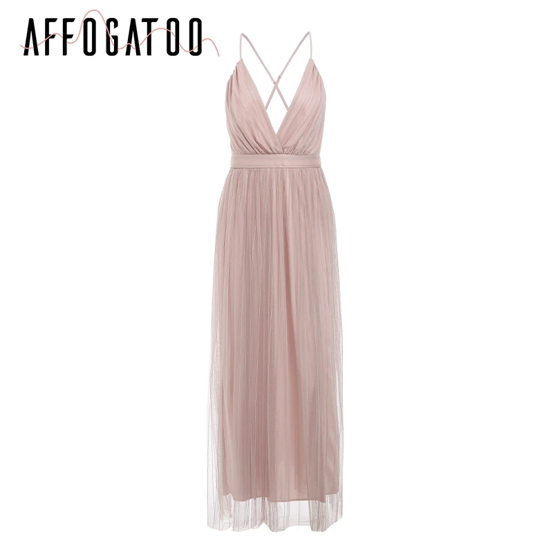 Affogatoo Sexy v neck backless summer pink dress women Elegant lace evening maxi dresses female Holiday long party dress ladies