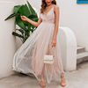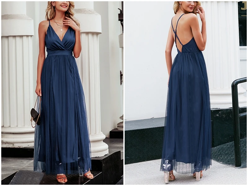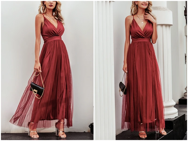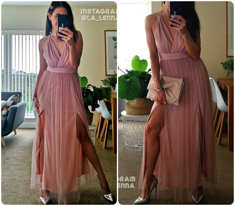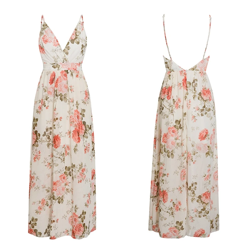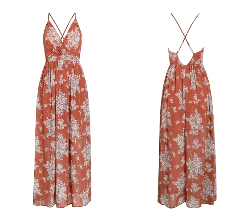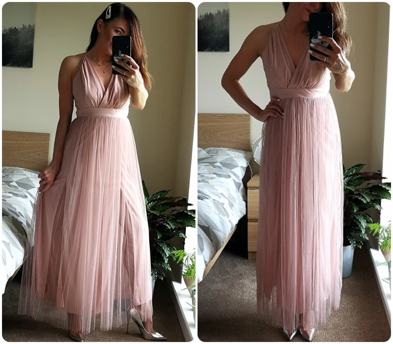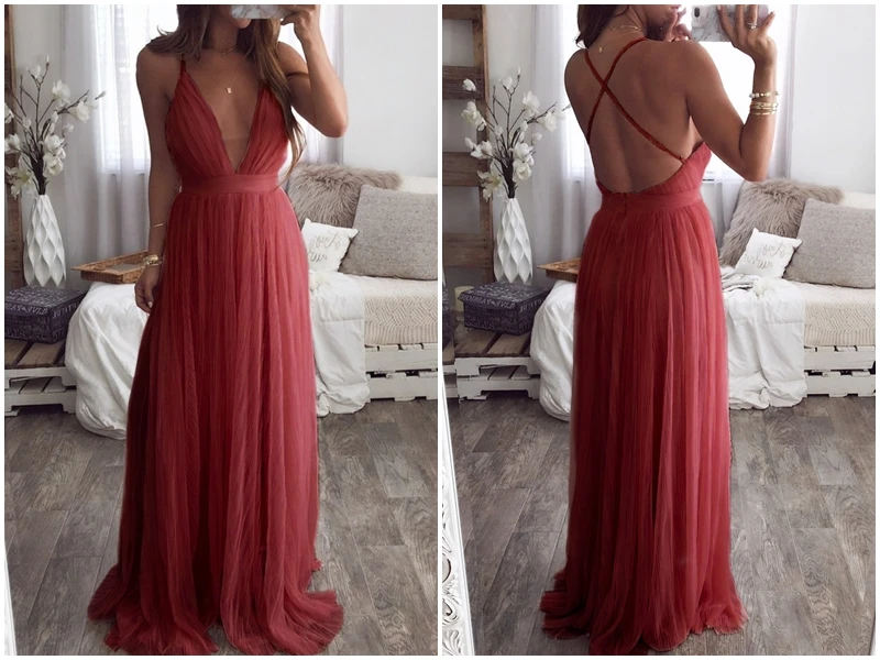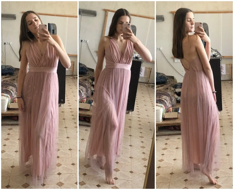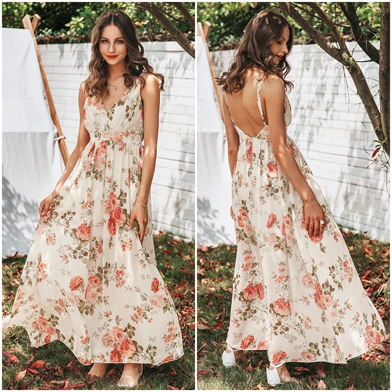 Affogatoo Sexy v neck backless summer pink dress women Elegant lace evening maxi dresses female Holiday long party dress ladies