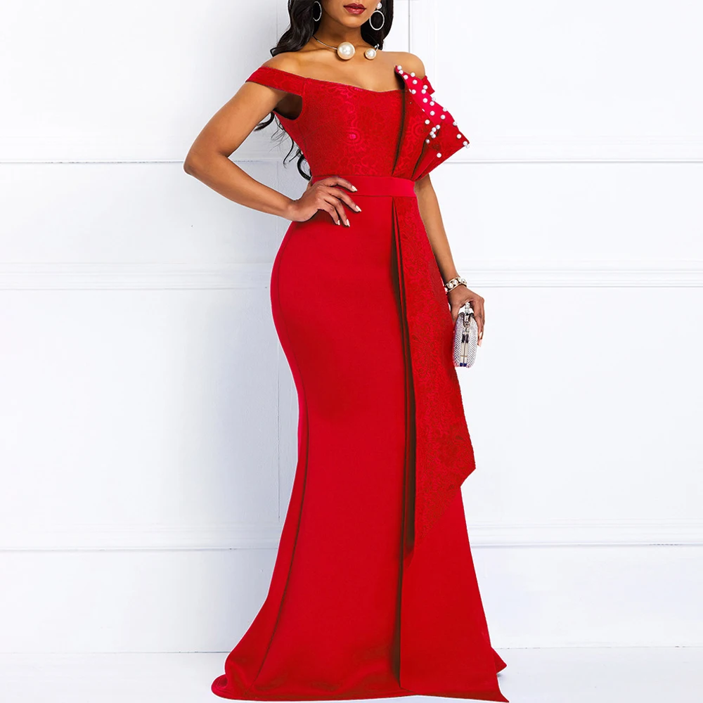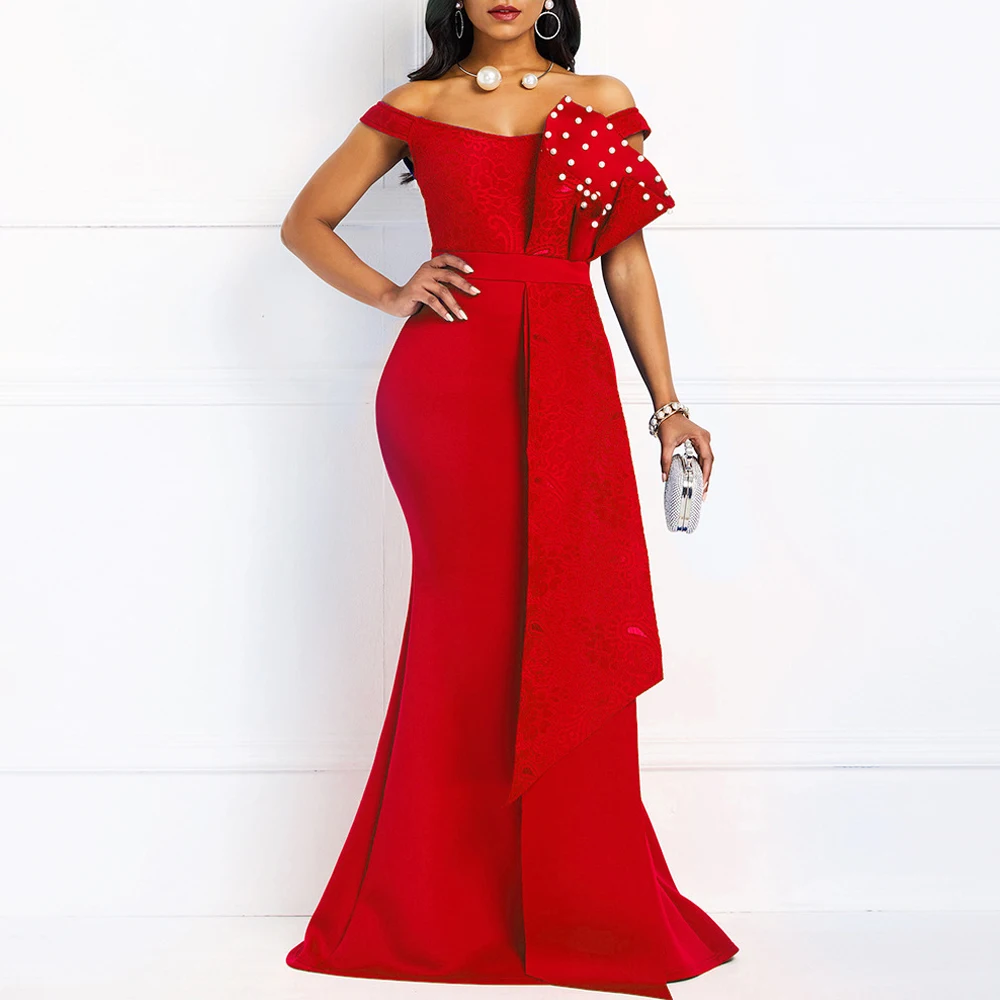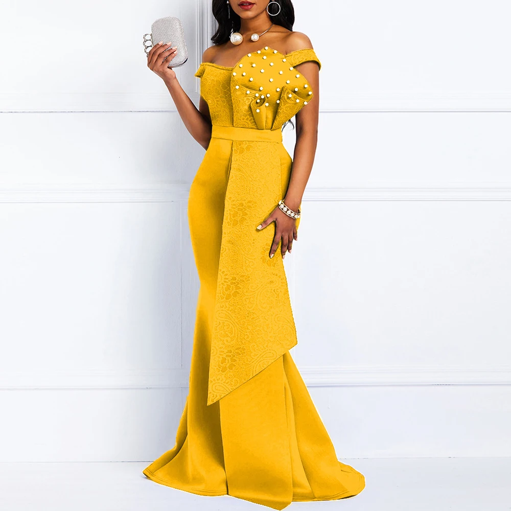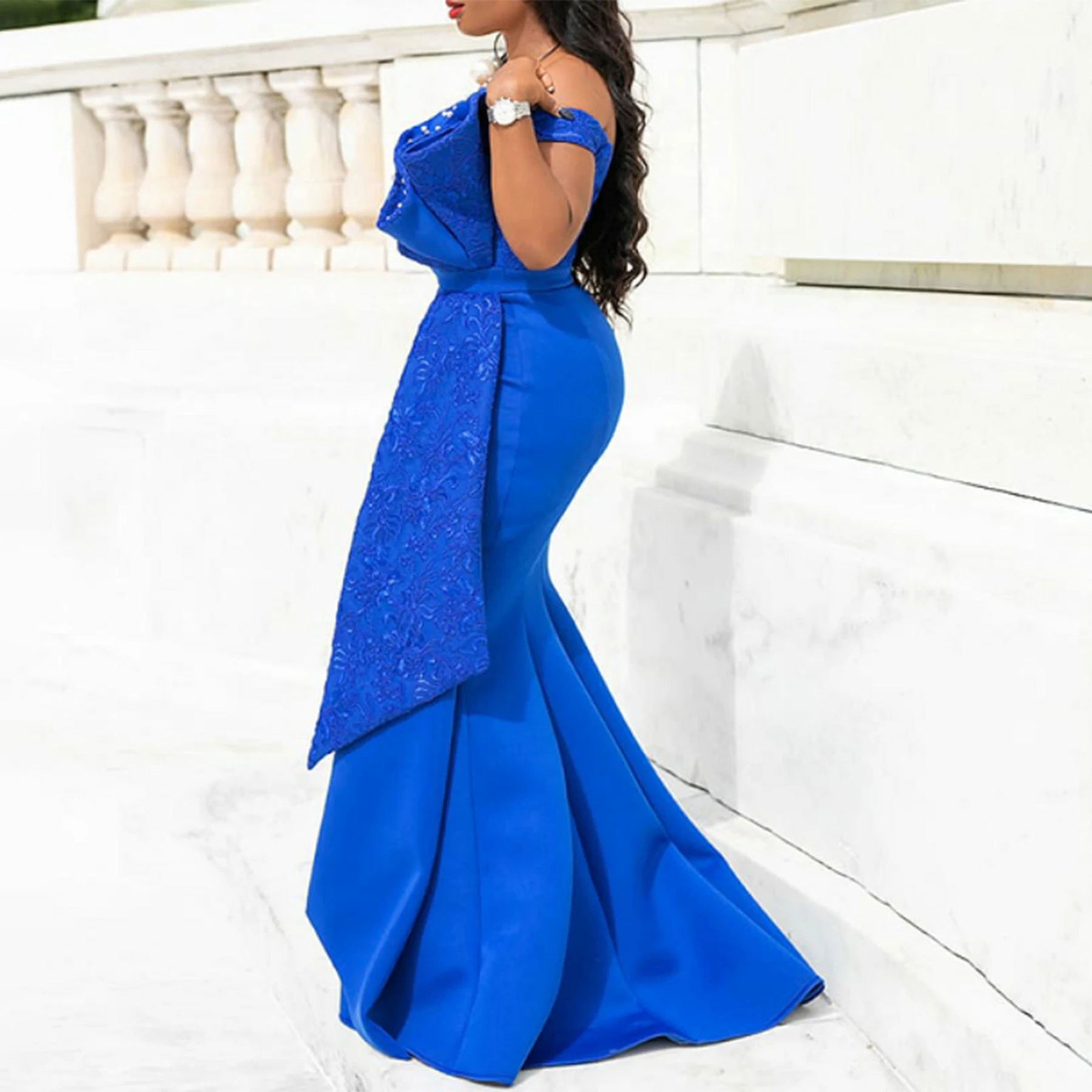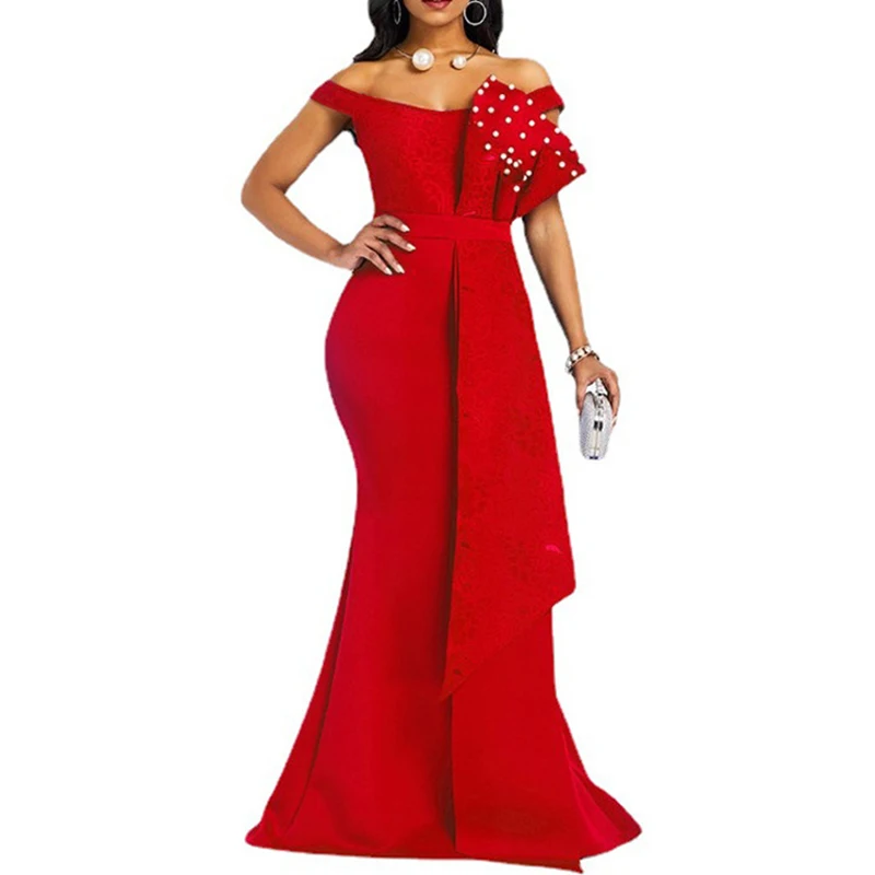 African High Waist Maxi Dress for Women Elegant Evening Party Dress Sexy Off Shoulder Ruffles Sleeveless Bodycon Dress