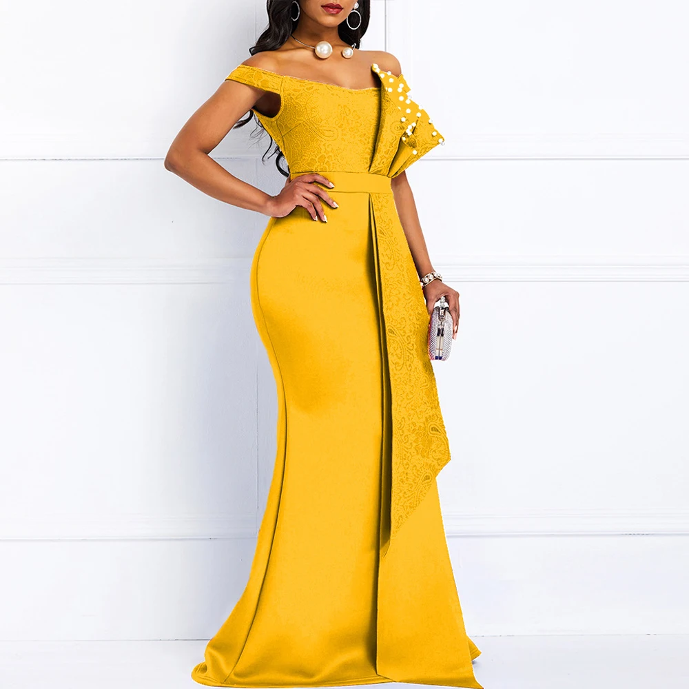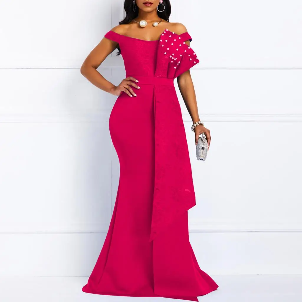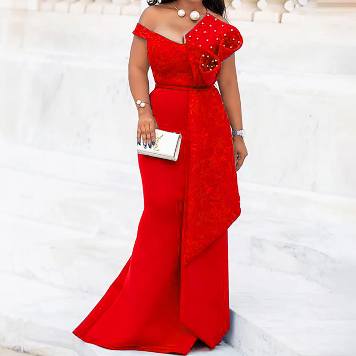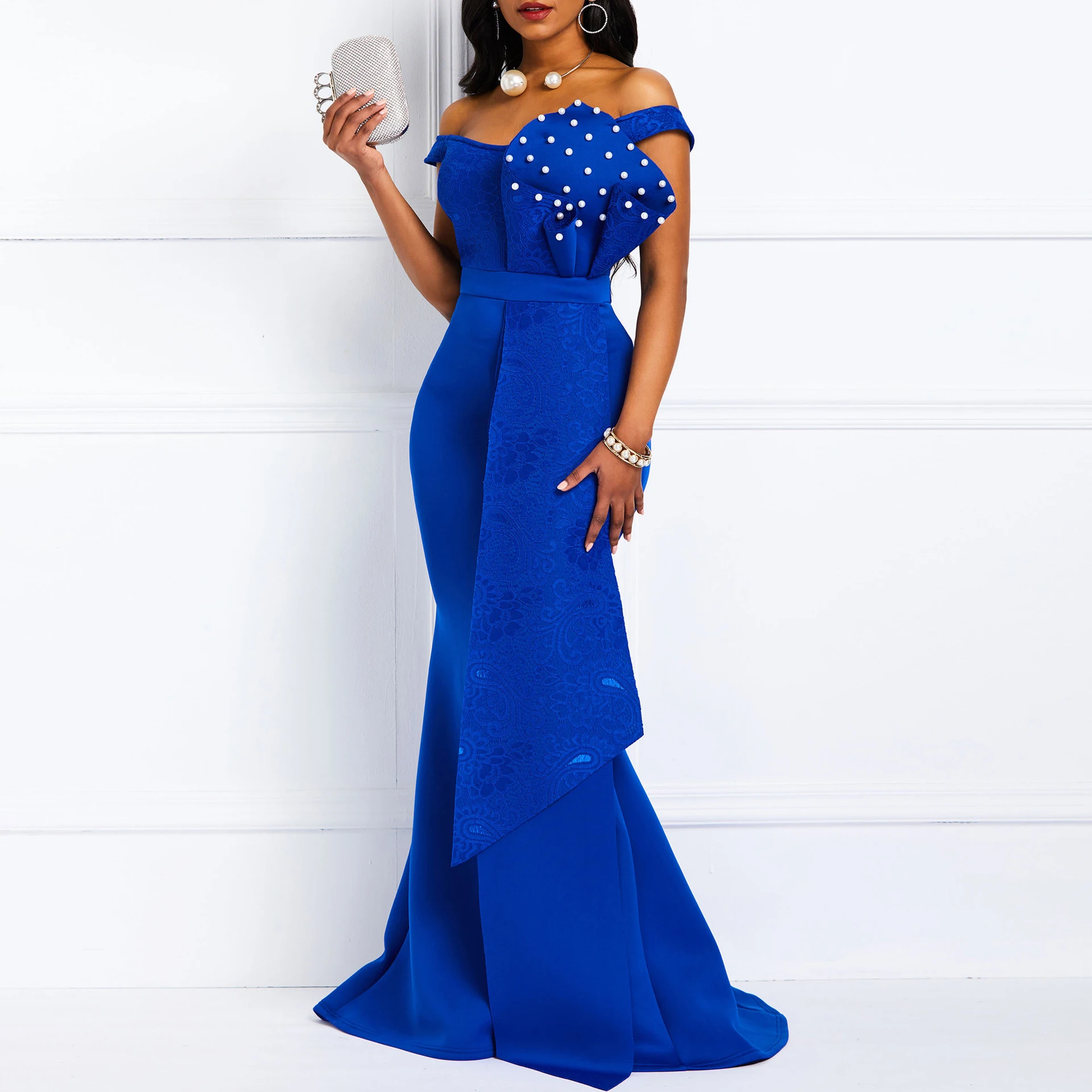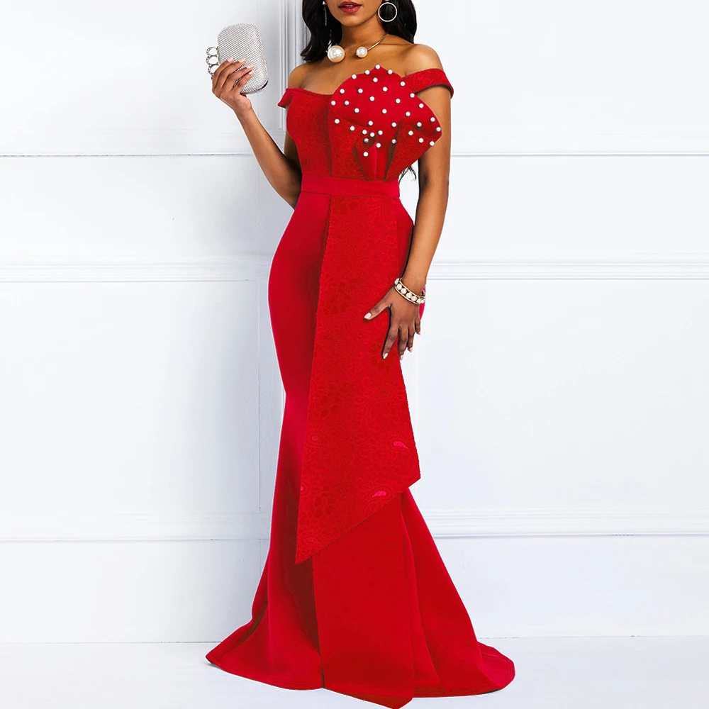 African High Waist Maxi Dress for Women Elegant Evening Party Dress Sexy Off Shoulder Ruffles Sleeveless Bodycon Dress