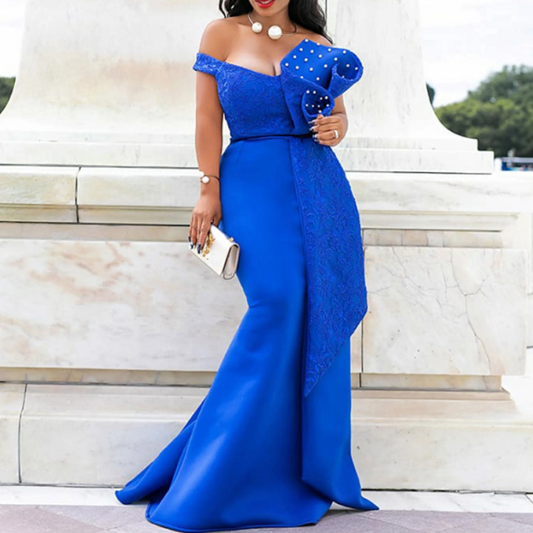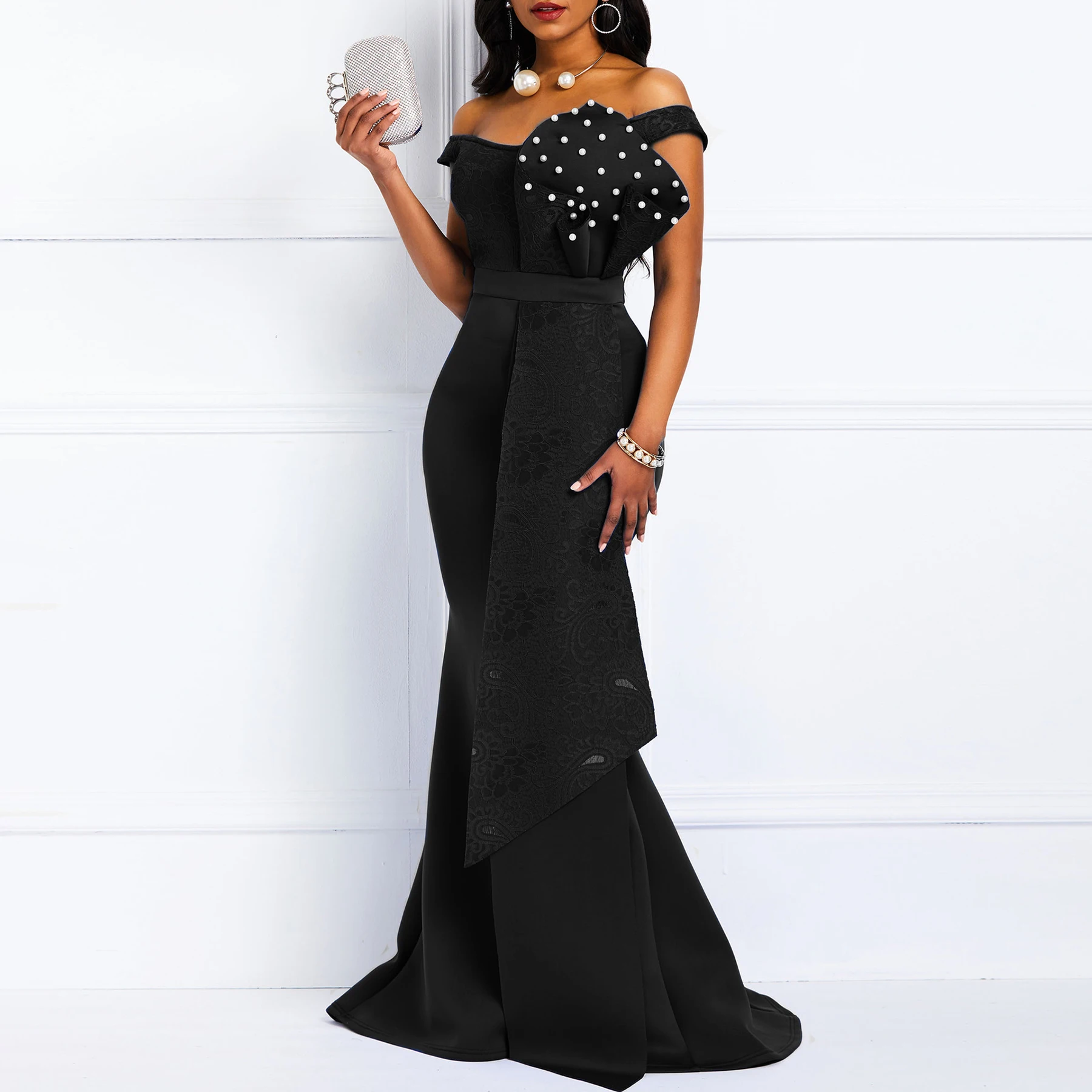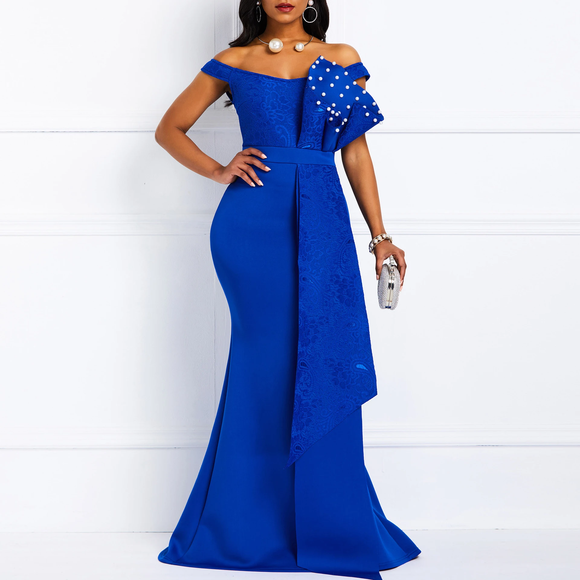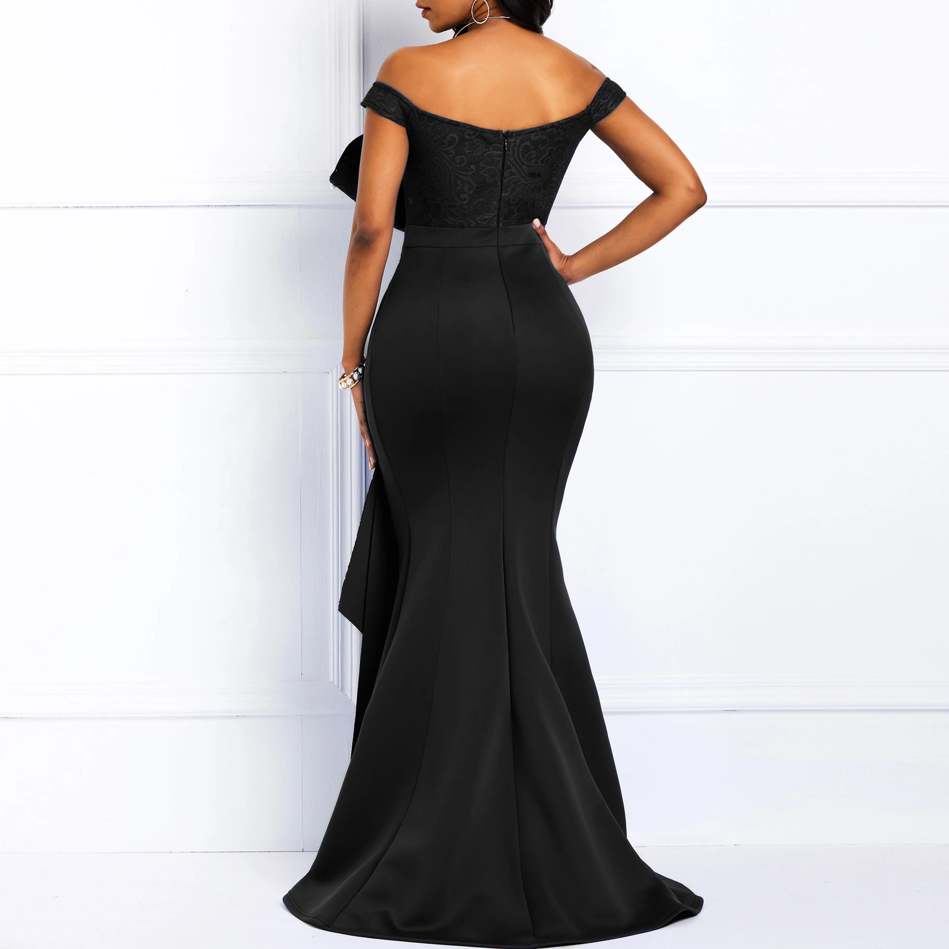 African High Waist Maxi Dress for Women Elegant Evening Party Dress Sexy Off Shoulder Ruffles Sleeveless Bodycon Dress