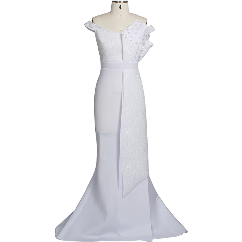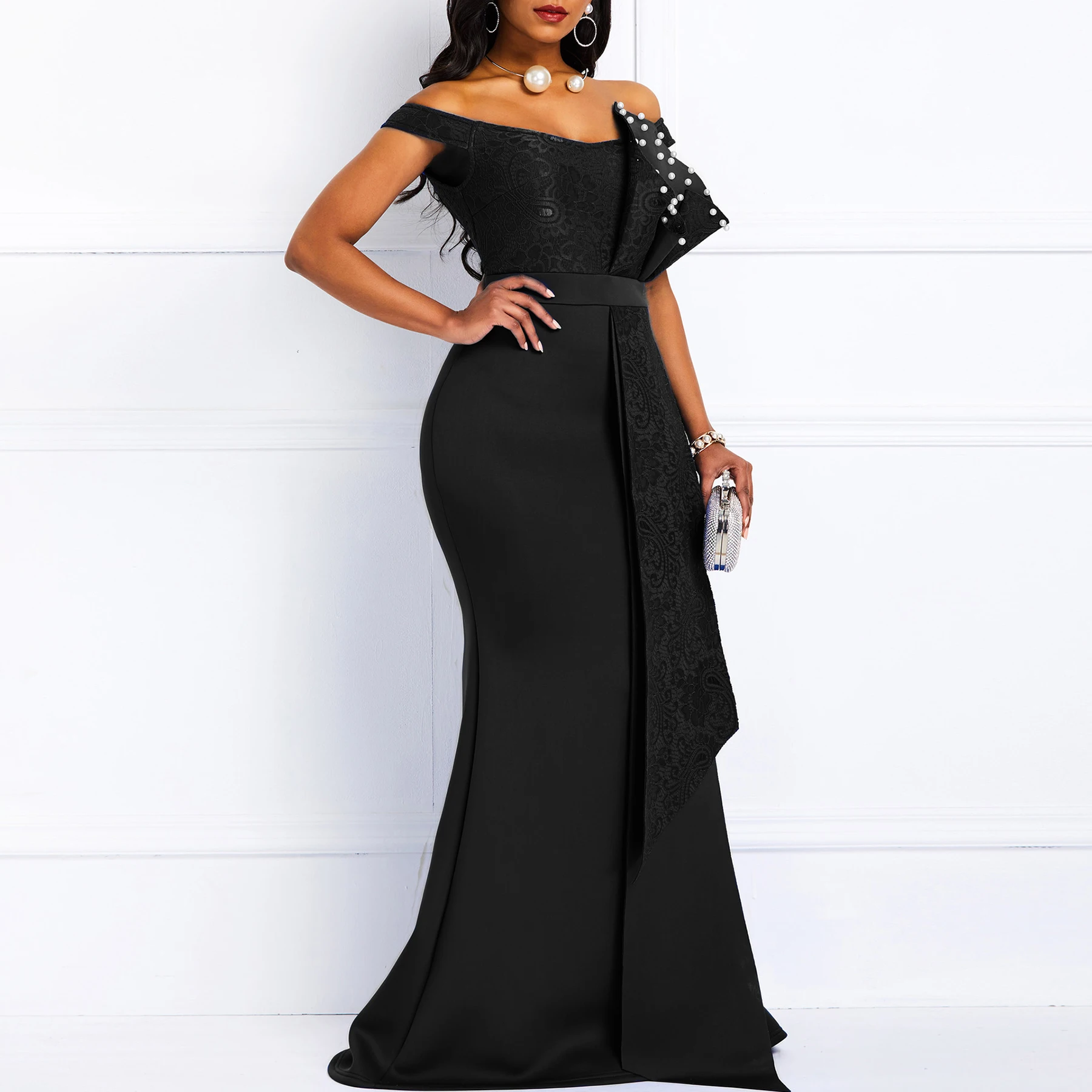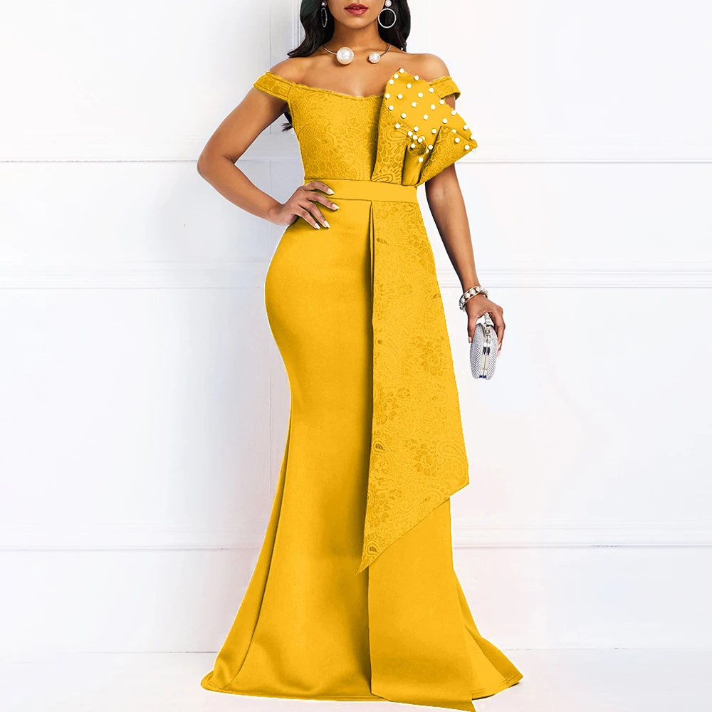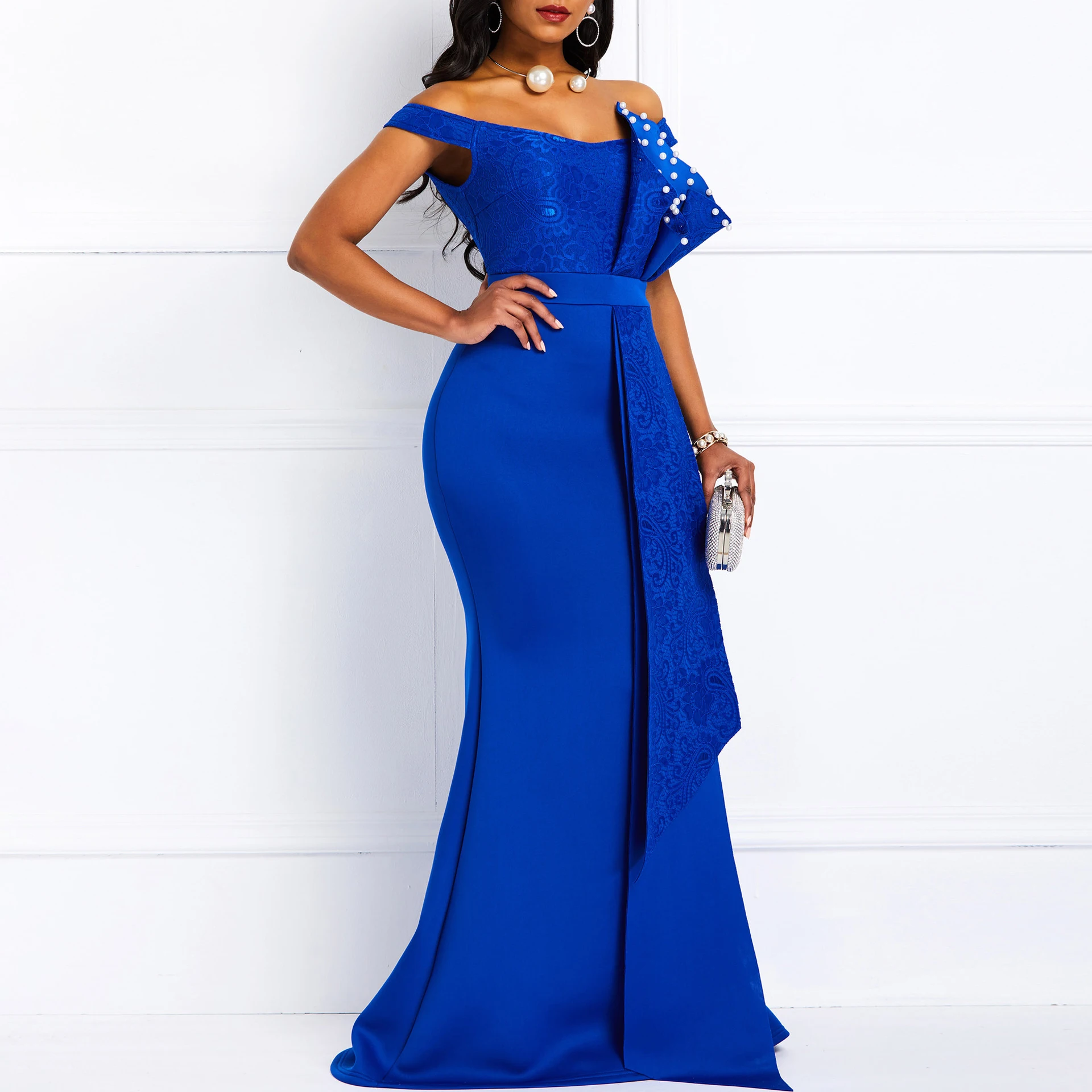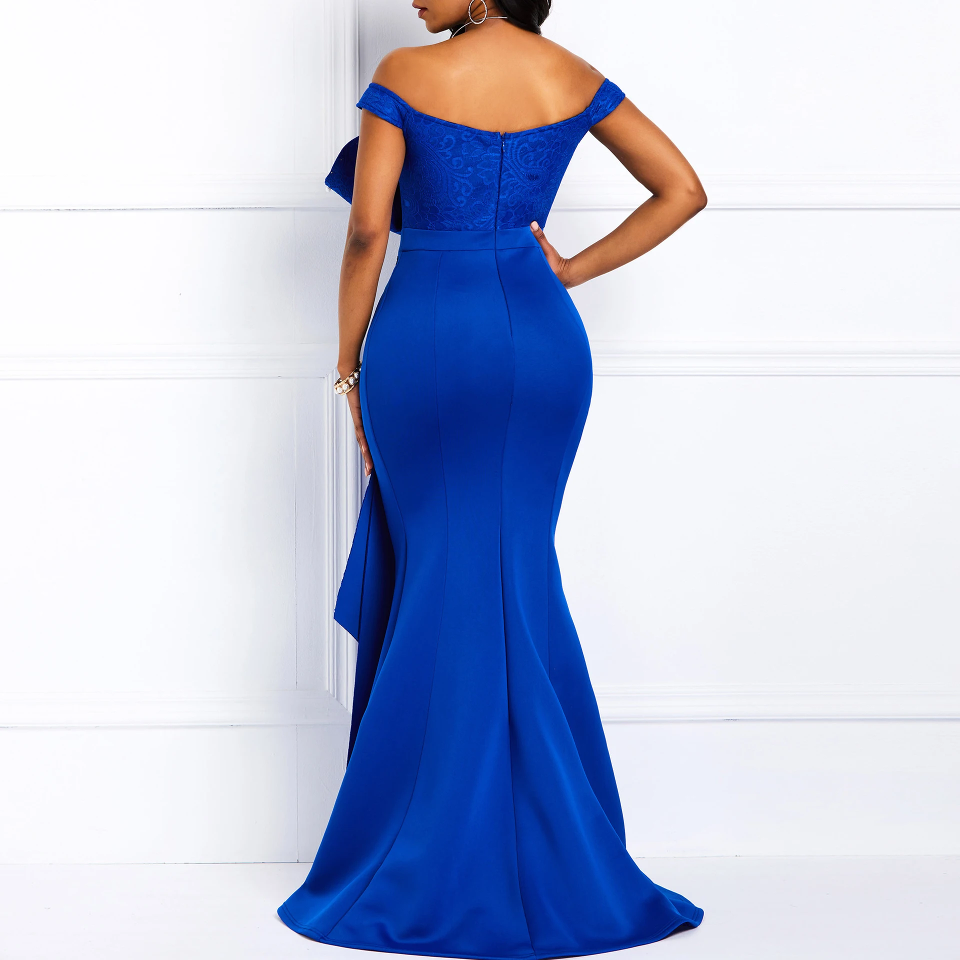African High Waist Maxi Dress for Women Elegant Evening Party Dress Sexy Off Shoulder Ruffles Sleeveless Bodycon Dress