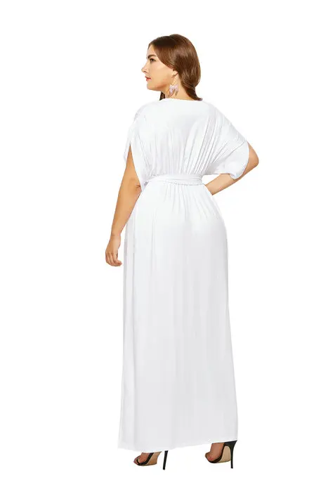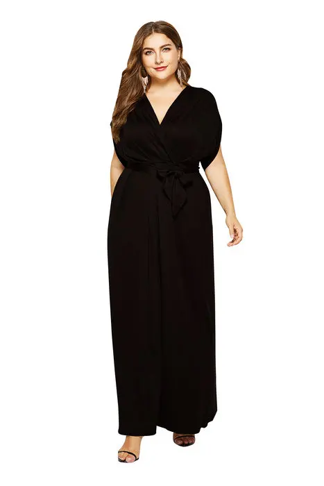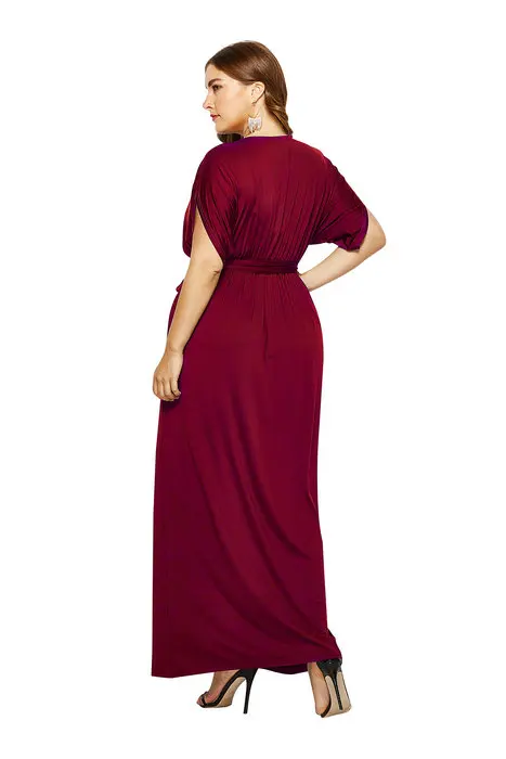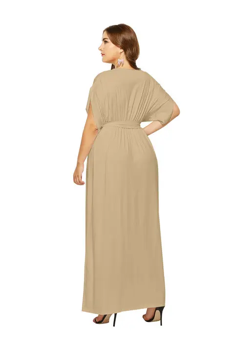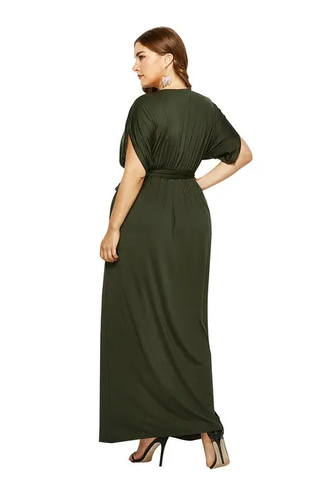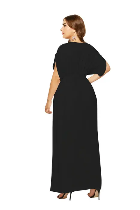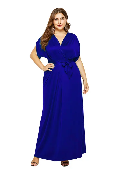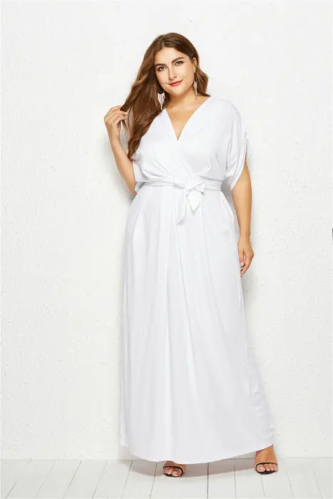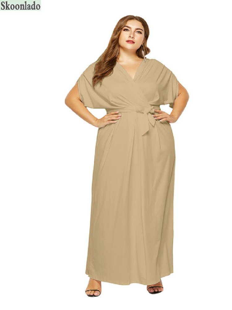 All Sizes 5xl Women Summer Long Dresses High Quality Special V-Neck Design Solid Elegant Color Party Meeting Female Classic Styl
