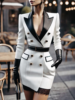American Style Formal Peak Lapel Double Breasted Belt Mini Blazer Dress Elegant Street Long Sleeve Women Quality Chic Dresses