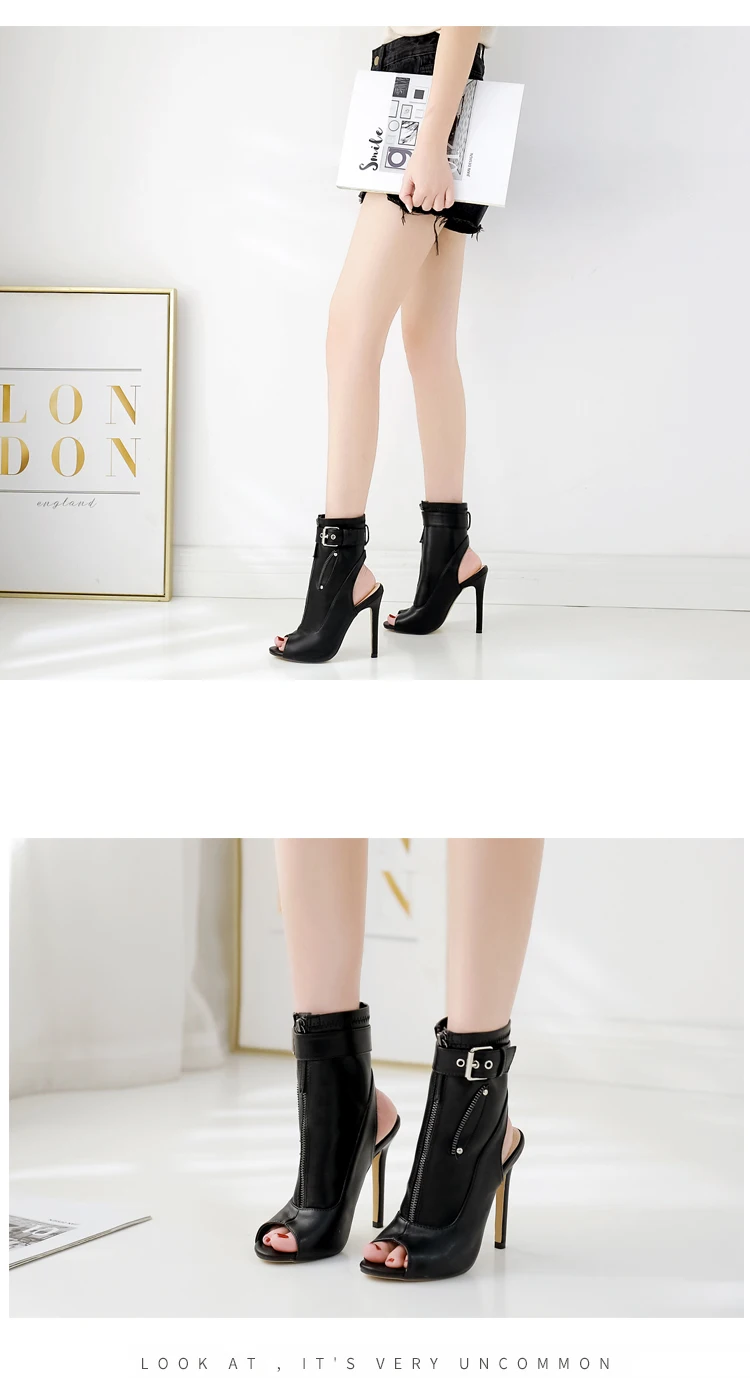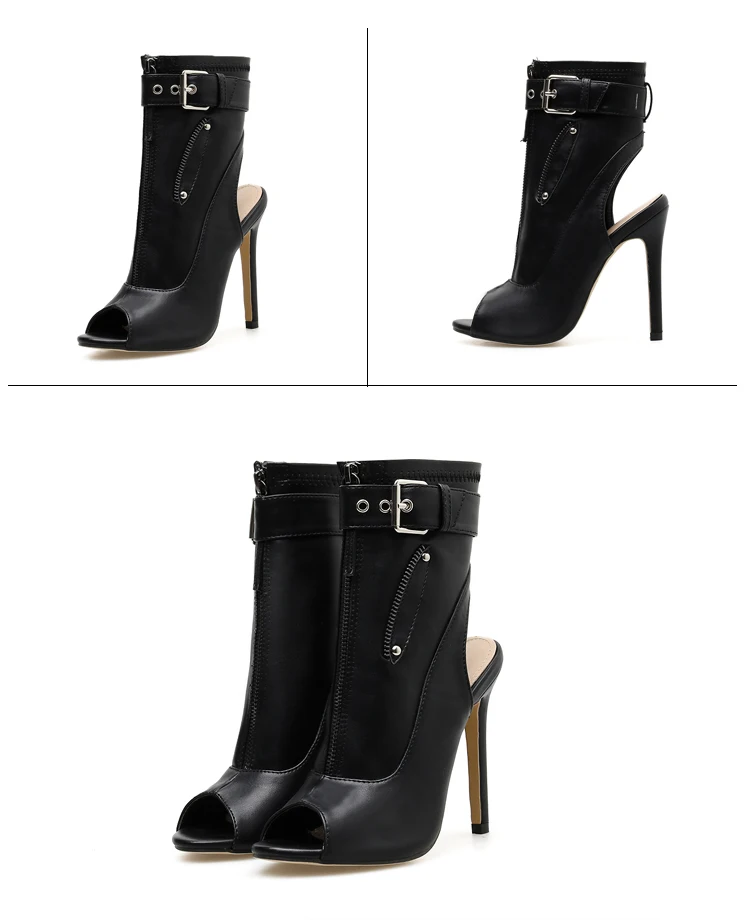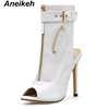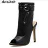 Aneikeh PU Summer Ankle Boots High Heels Women Shoes Peep Toe Sexy Lady Chelsea Boots Party Thin Heeled Shoes Size 35-40