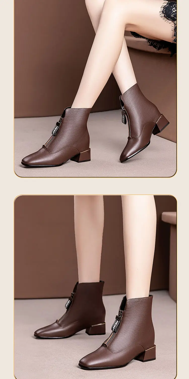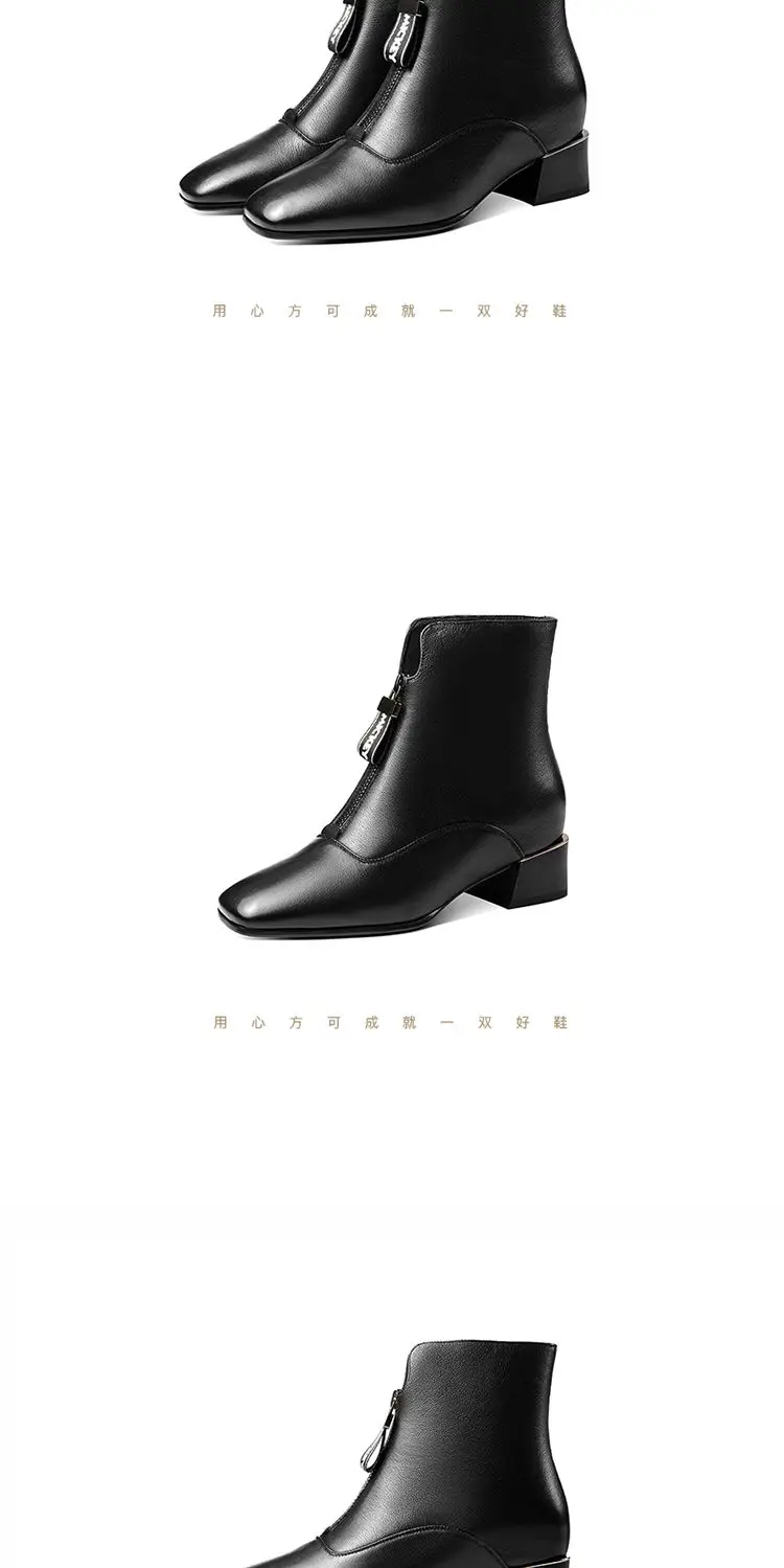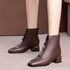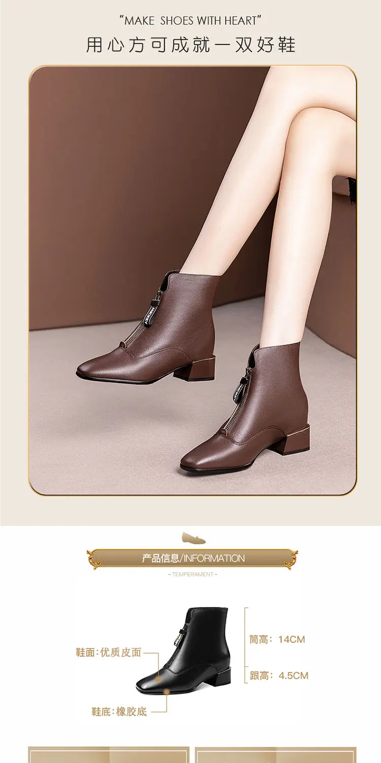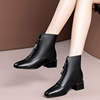 Ankle Boots Women Sheepskin Genuine Leather Zip Lace-Up Square Toe High Heel Lady Boots Handmade 2020 New