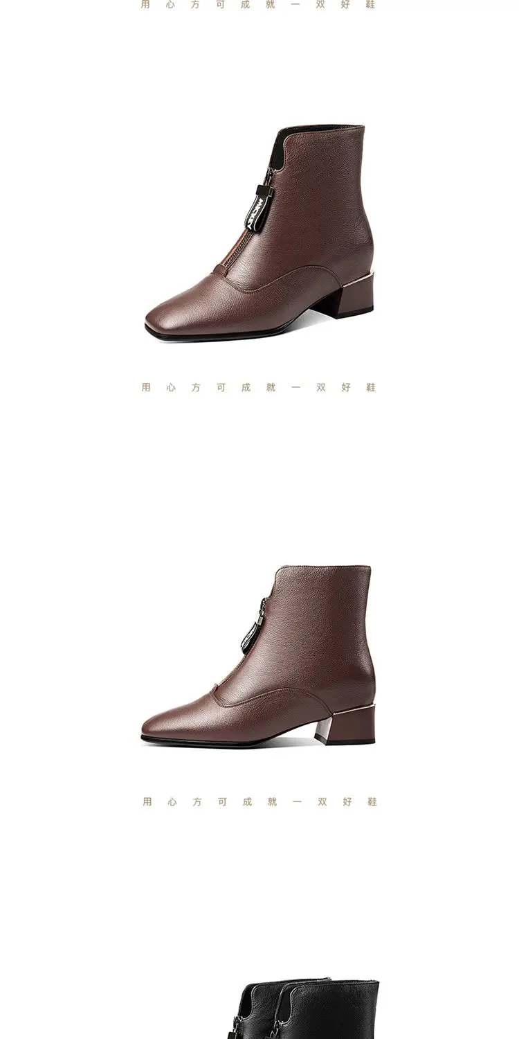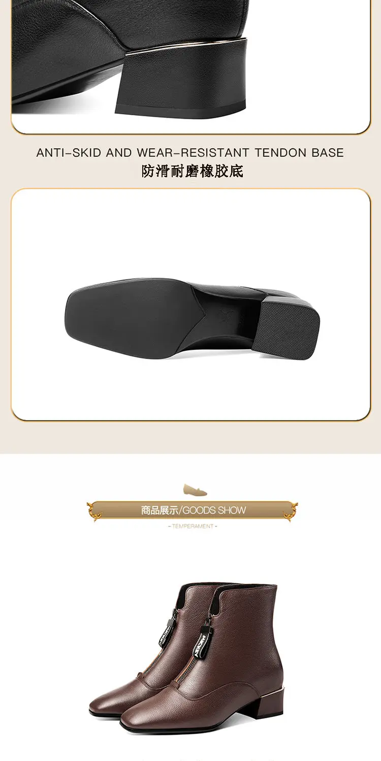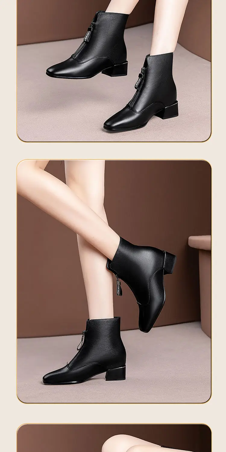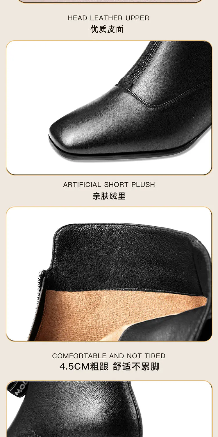 Ankle Boots Women Sheepskin Genuine Leather Zip Lace-Up Square Toe High Heel Lady Boots Handmade 2020 New