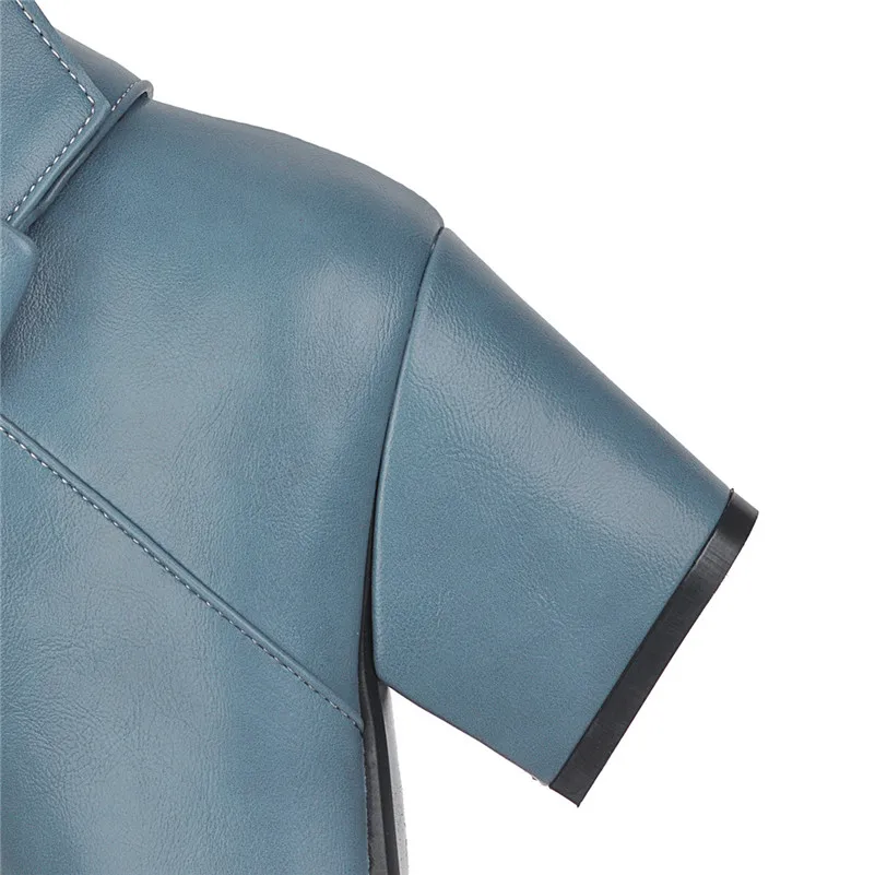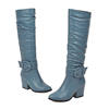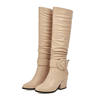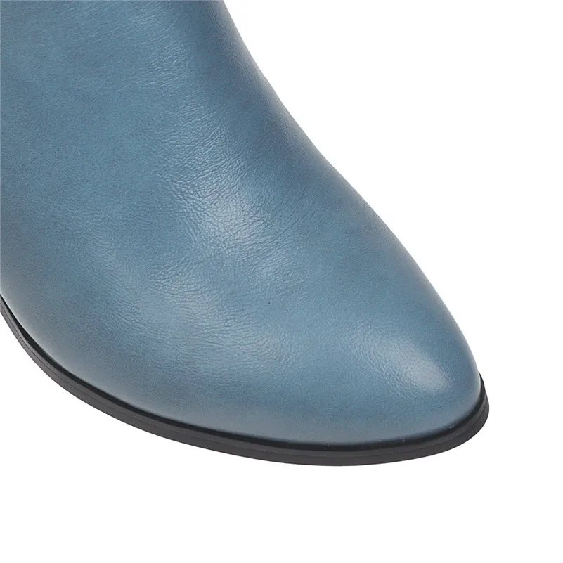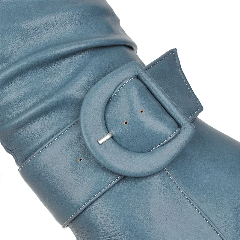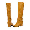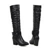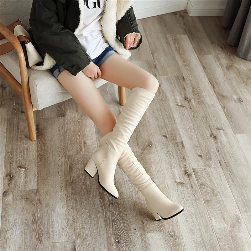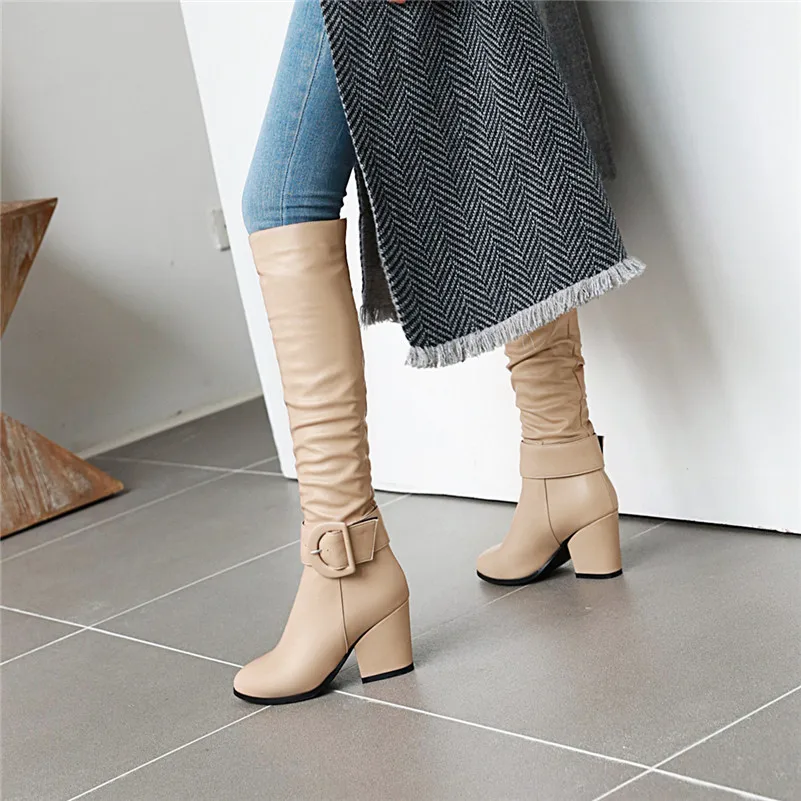 ANNYMOLI Winter Knee High Boots Women Buckle Square High Heels Long Boots Pleated Pointed Toe Shoes Lady Autumn Large Size 3-12