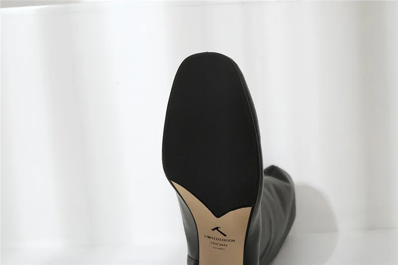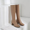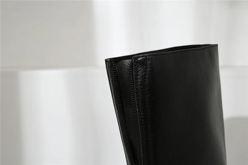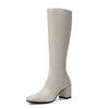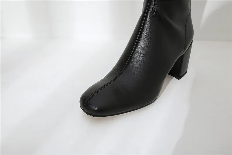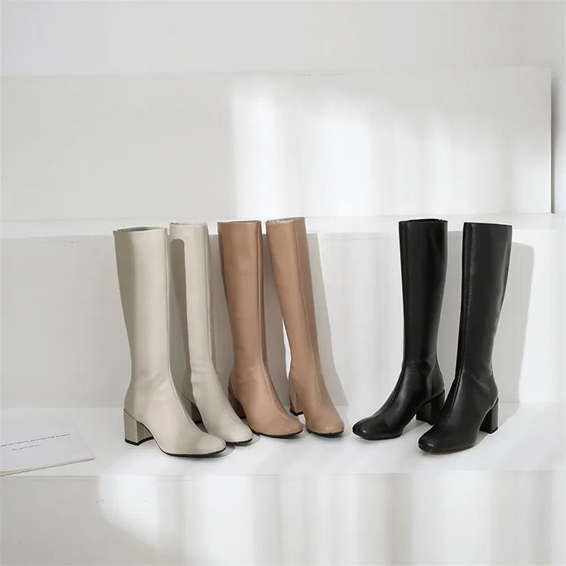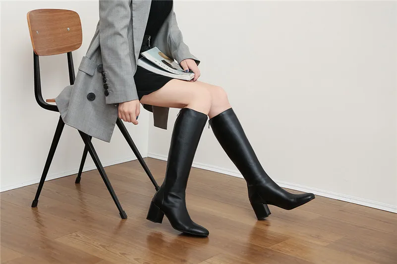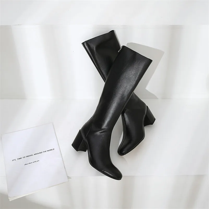 ANNYMOLI Winter Knee High Boots Women Natural Genuine Leather Block High Heel Long Boots Zipper Round Toe Shoes Lady Size 34-39