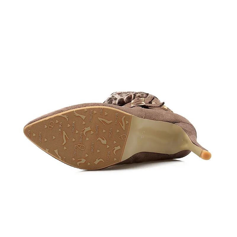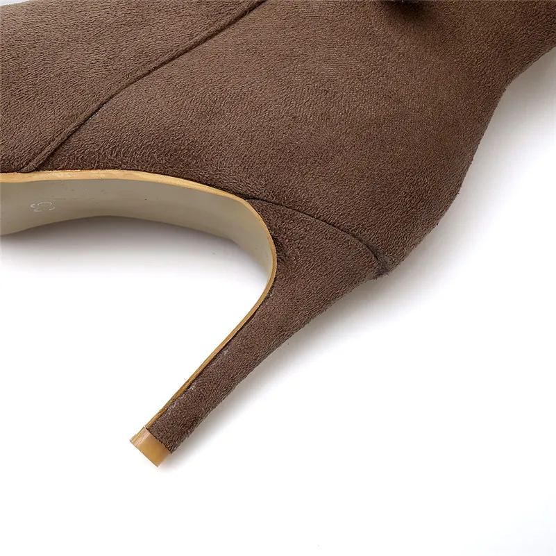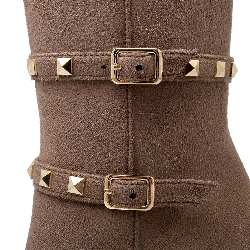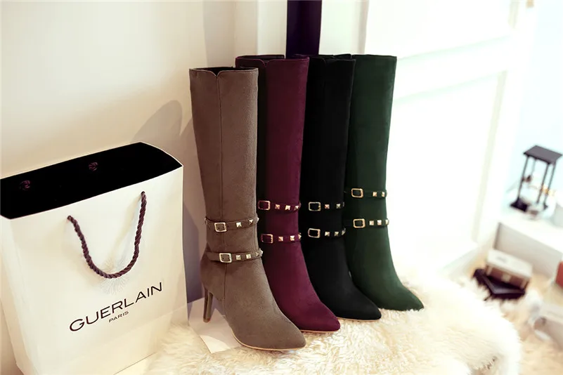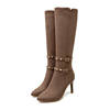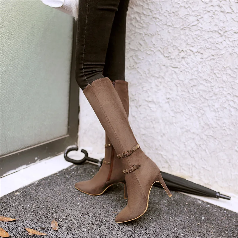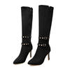ANNYMOLI Winter Knee High Boots Women Rivets Zipper Thin Heel Tall Boots Buckle Super High Heel Shoes Ladies Fall Big Size 33-43