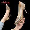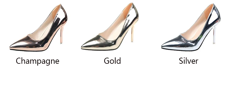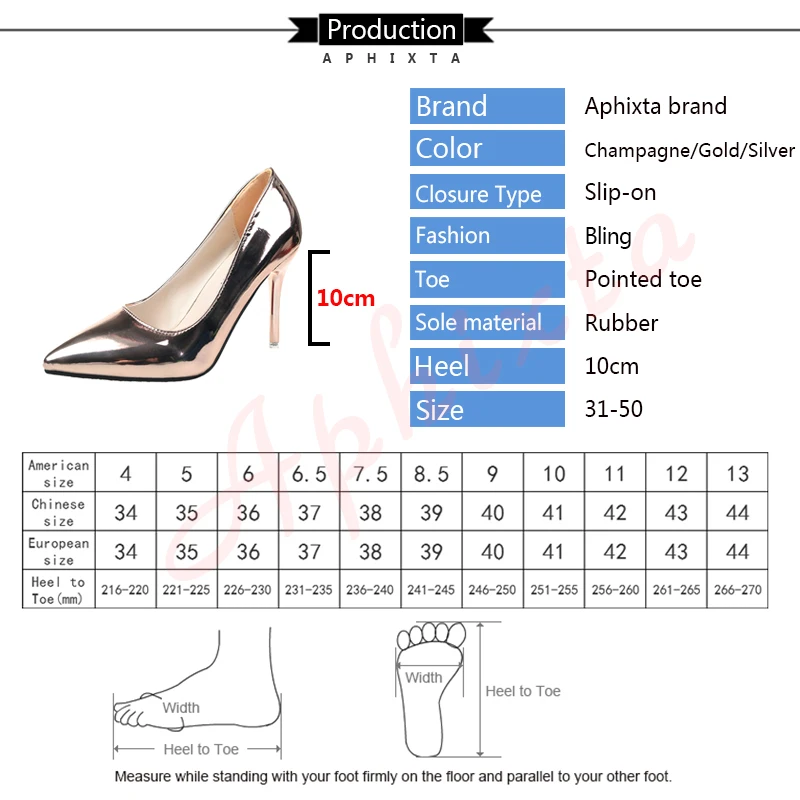 Aphixta 10cm Heels Women Pumps Shoes Pointed Toe Bling Gold Patent Leather Sexy Wedding Party Official Shoes Woman Big Size 48