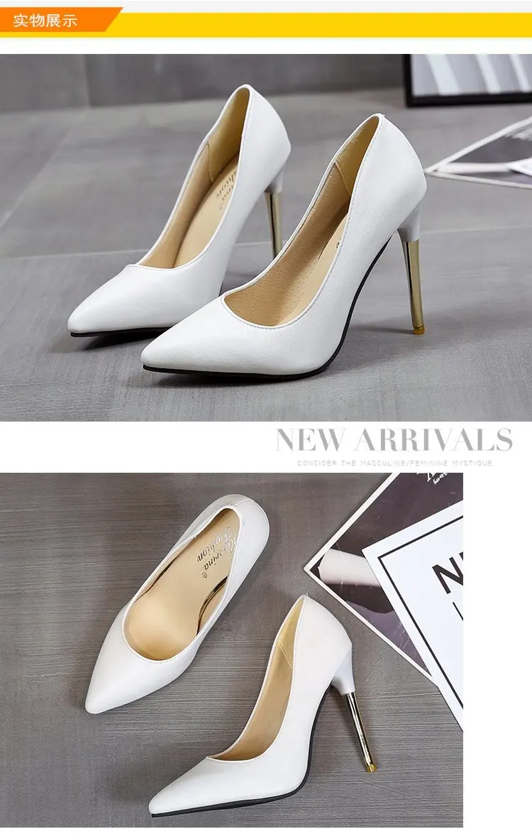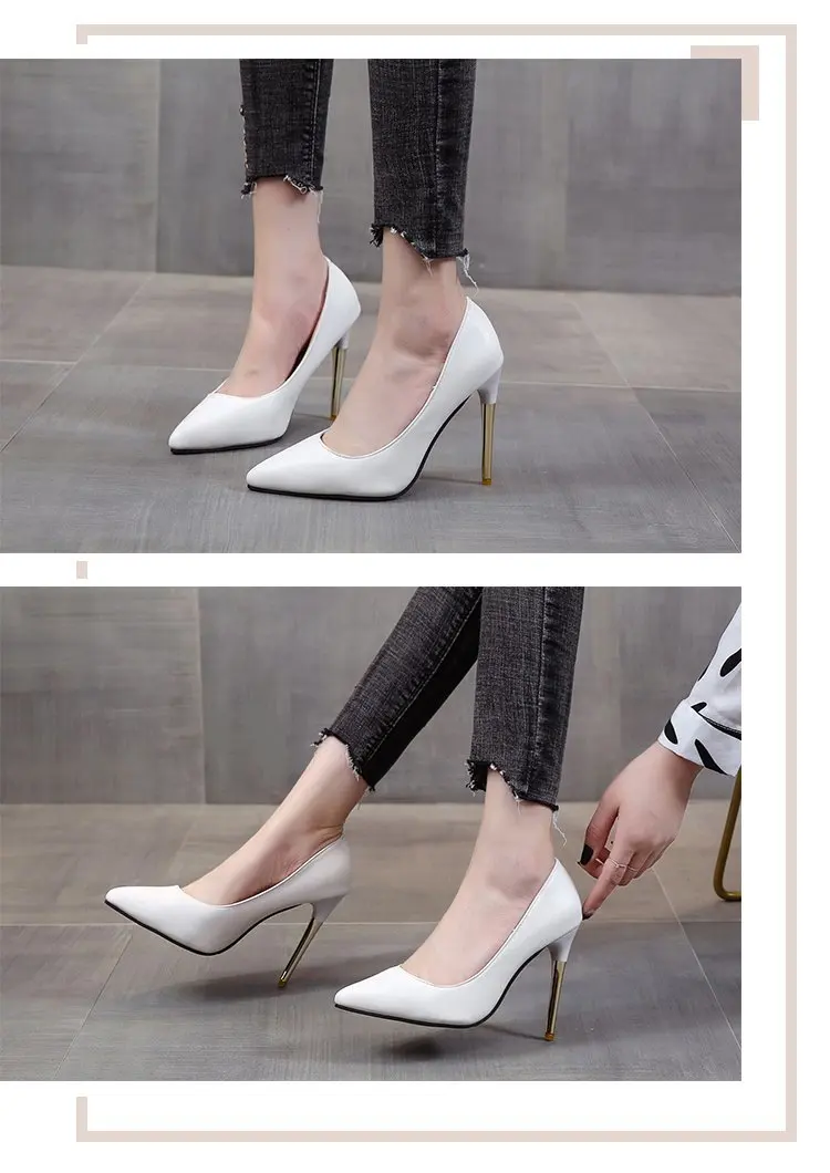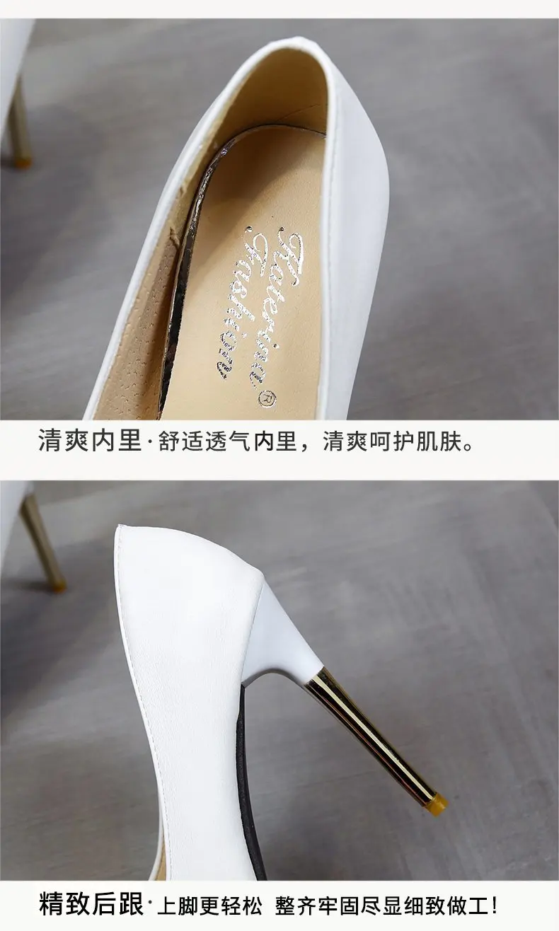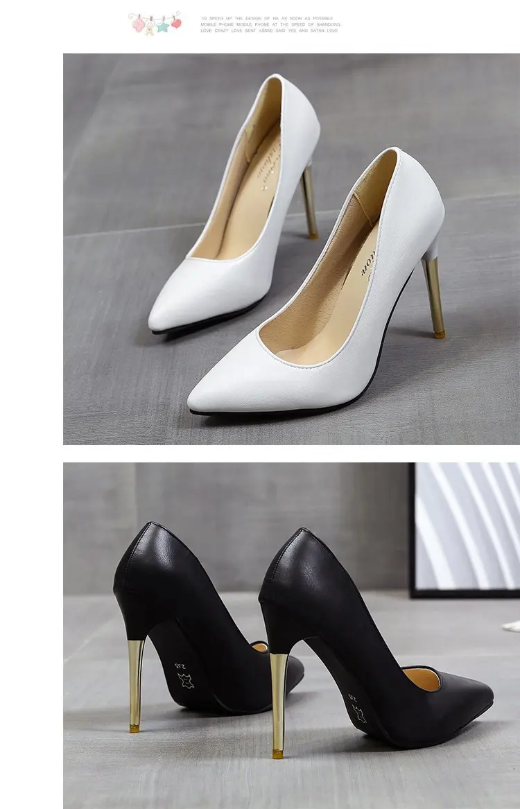 Aphixta 11cm Super High Thin Heels Pumps Women White Pointed Toe Gold Heel Office Wedding Party Shoes Woman Big Size 43 44