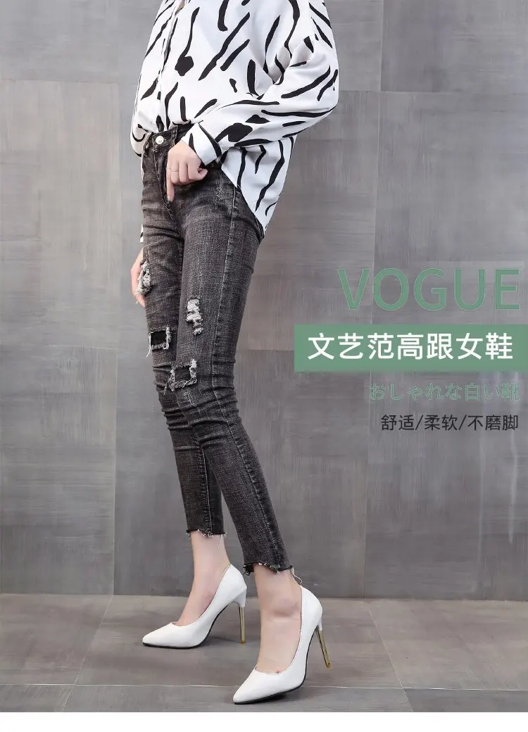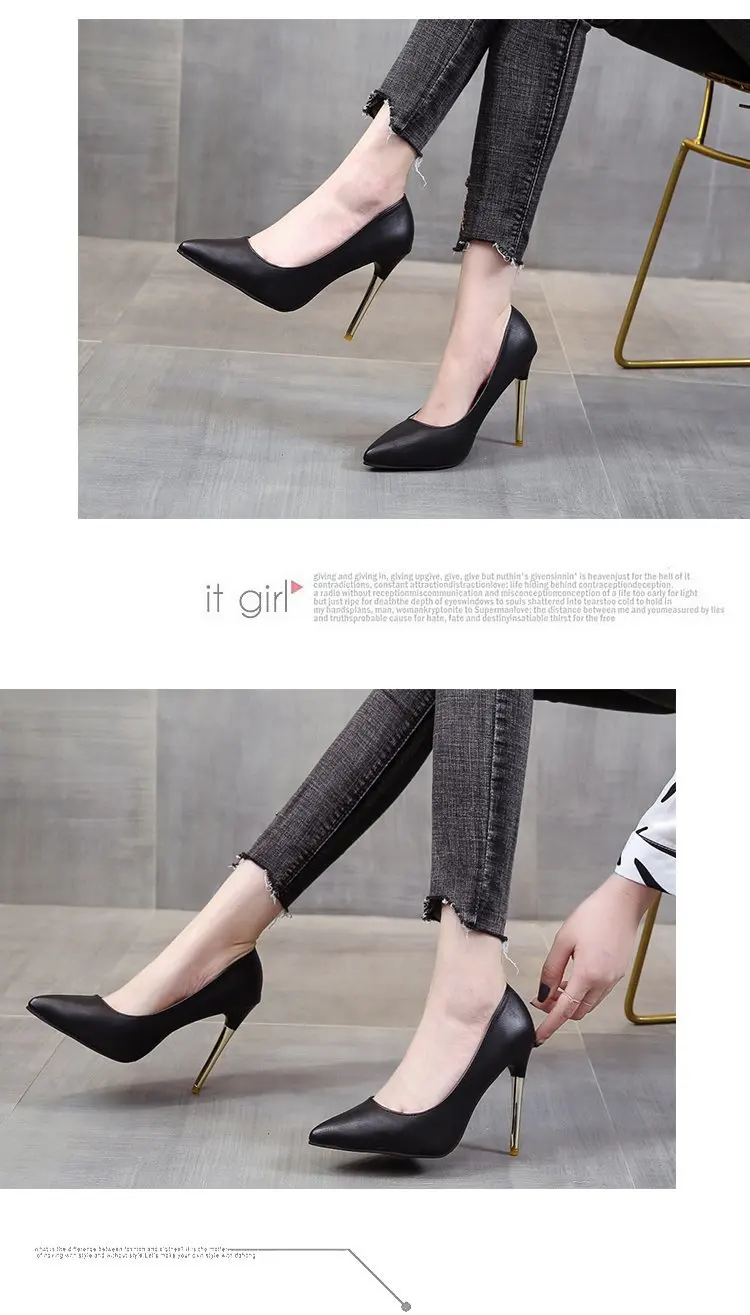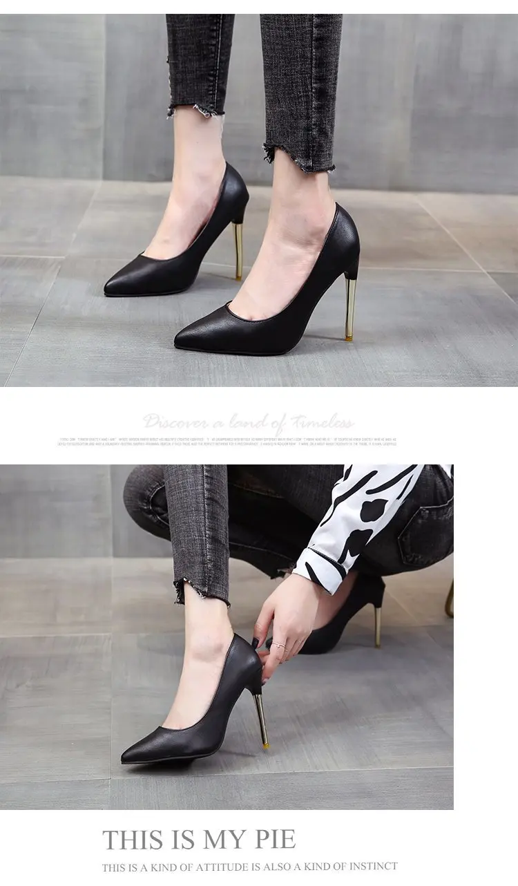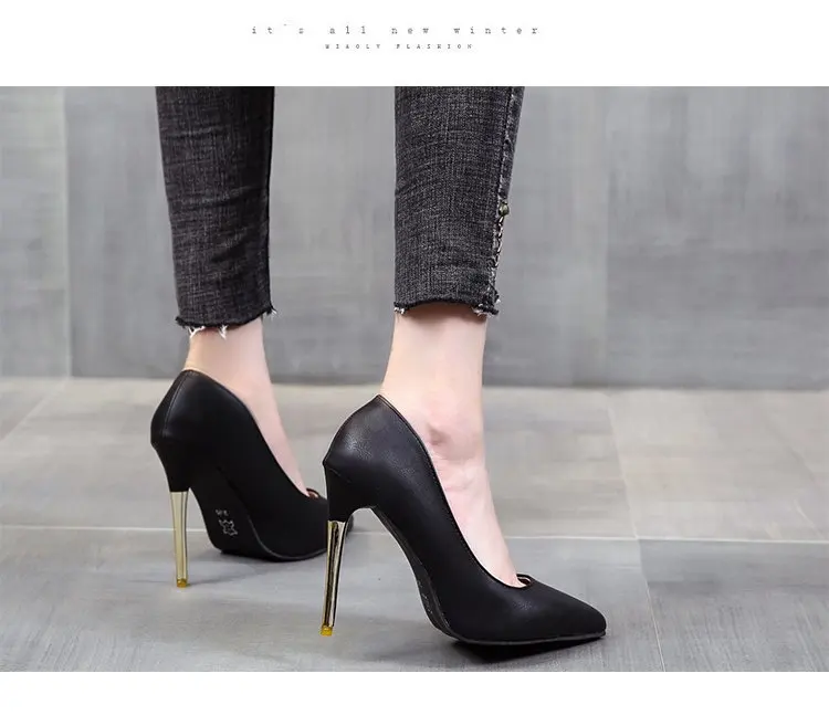 Aphixta 11cm Super High Thin Heels Pumps Women White Pointed Toe Gold Heel Office Wedding Party Shoes Woman Big Size 43 44