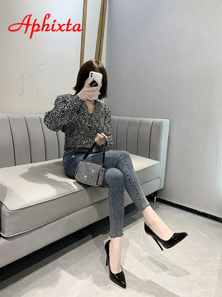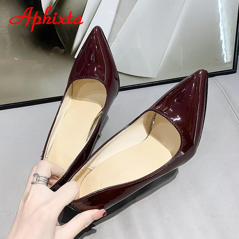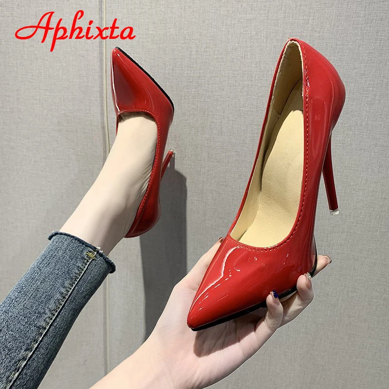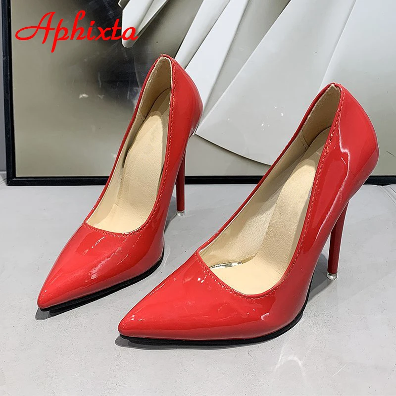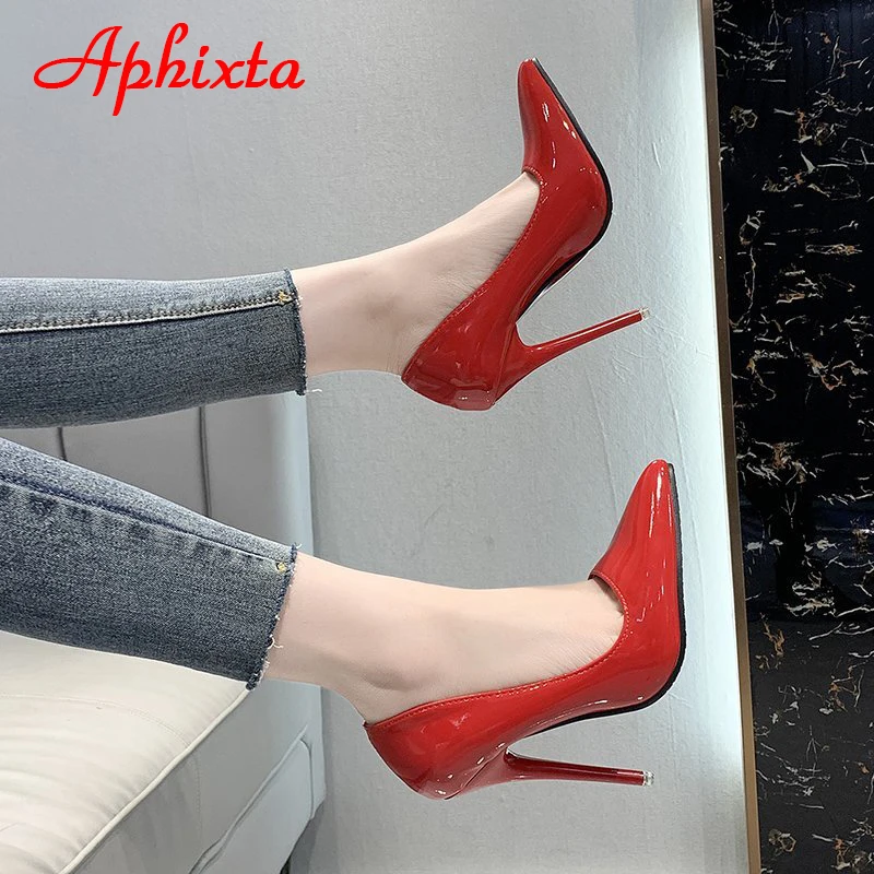 Aphixta 12cm Super High Thin Heels Pumps Women Shoes Pointed Toe Patent Leather Wedding Dress Office Femme Super Big Size 49 50