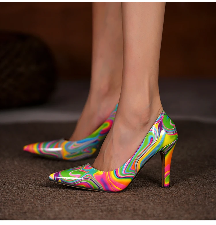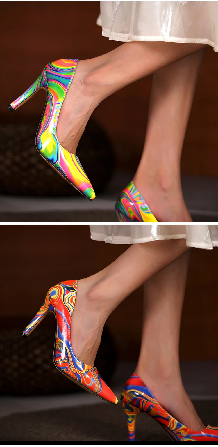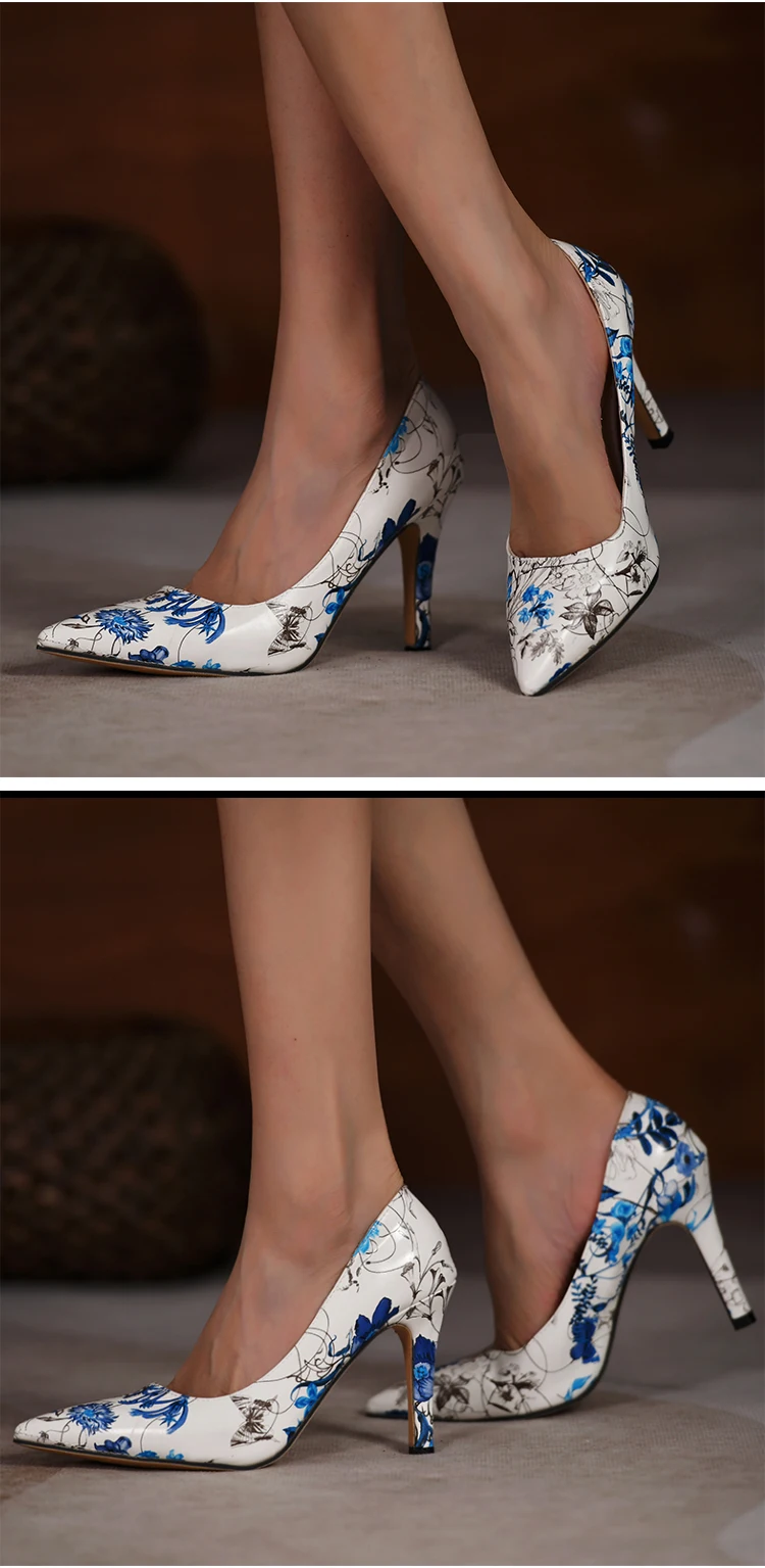 Aphixta 2021 New Flowers Prints 9cm Thin Heels Pointed Toe Pumps Women Leopard Zebra Pattern Leather Shoes Patent Wedding Shoes