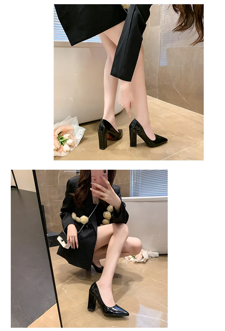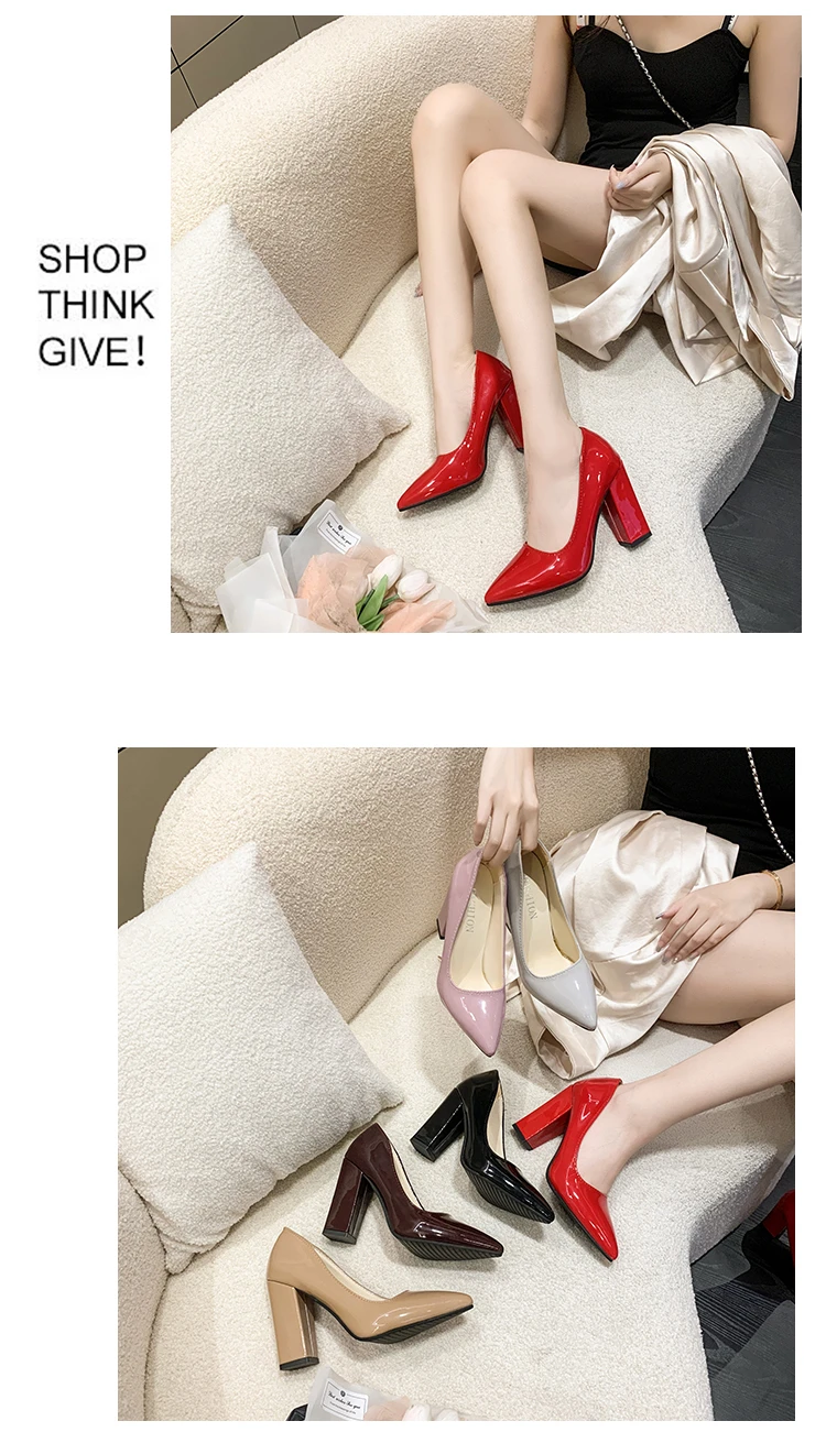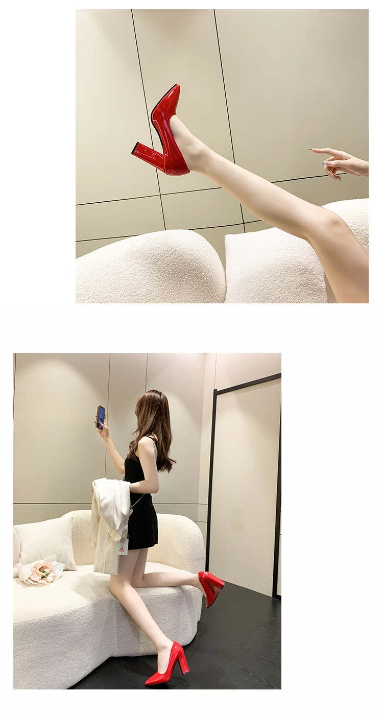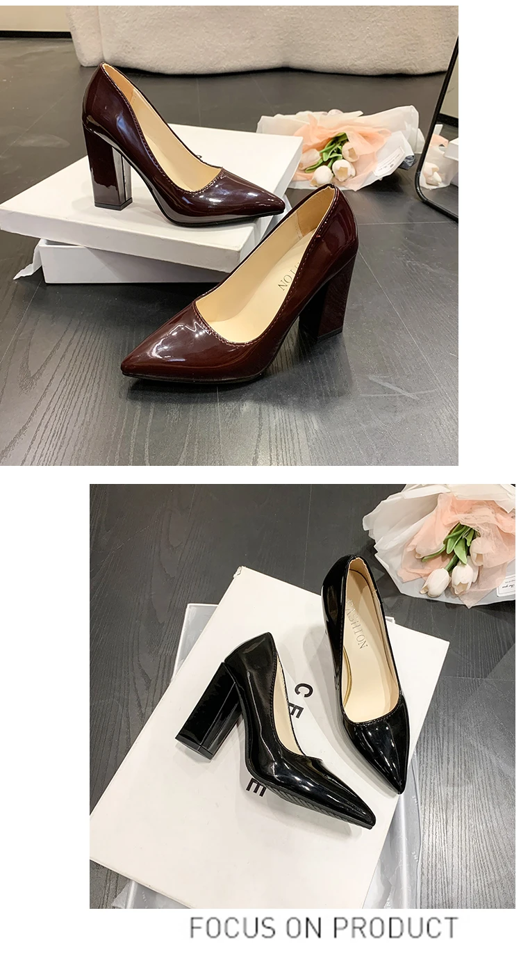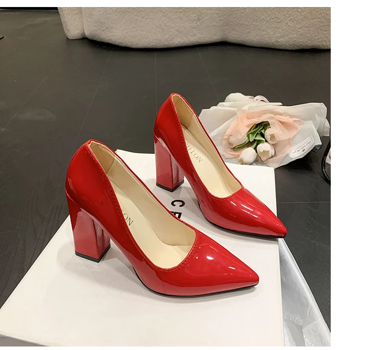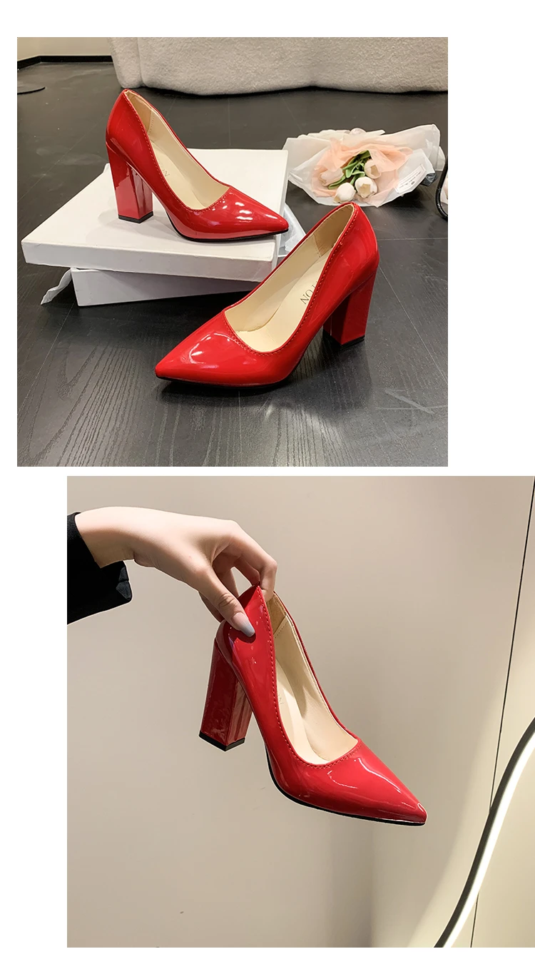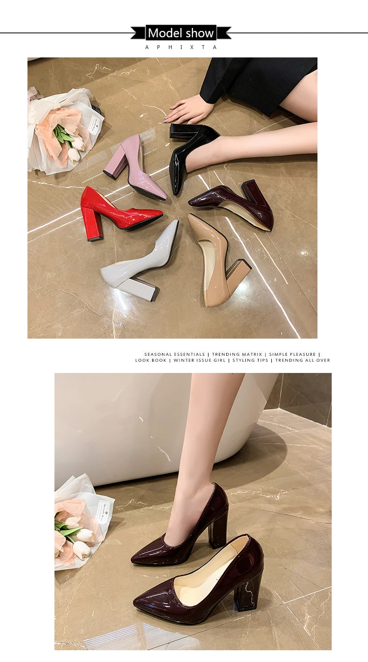 Aphixta 2022 Autumn 3.94Inch Chunky Heels Pumps Women Shoes Wine Red Patent Leather Sexy Party Official Leisure Plus Szie 33-46