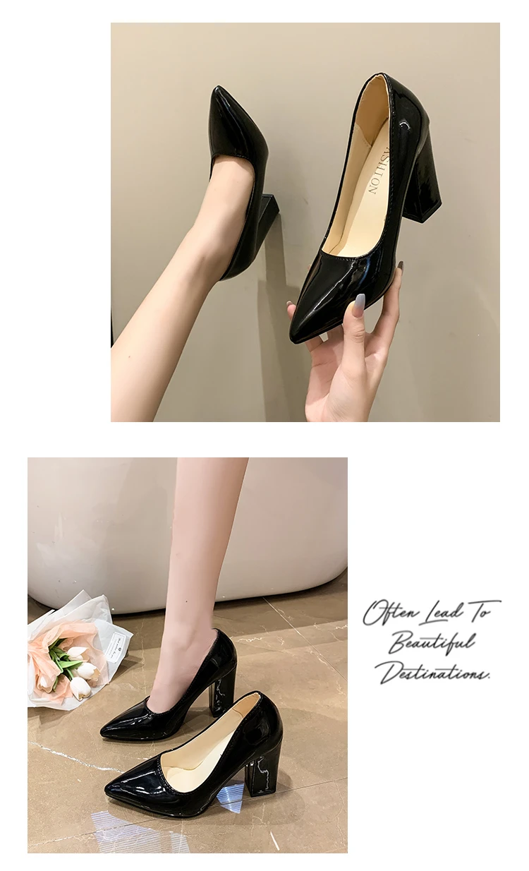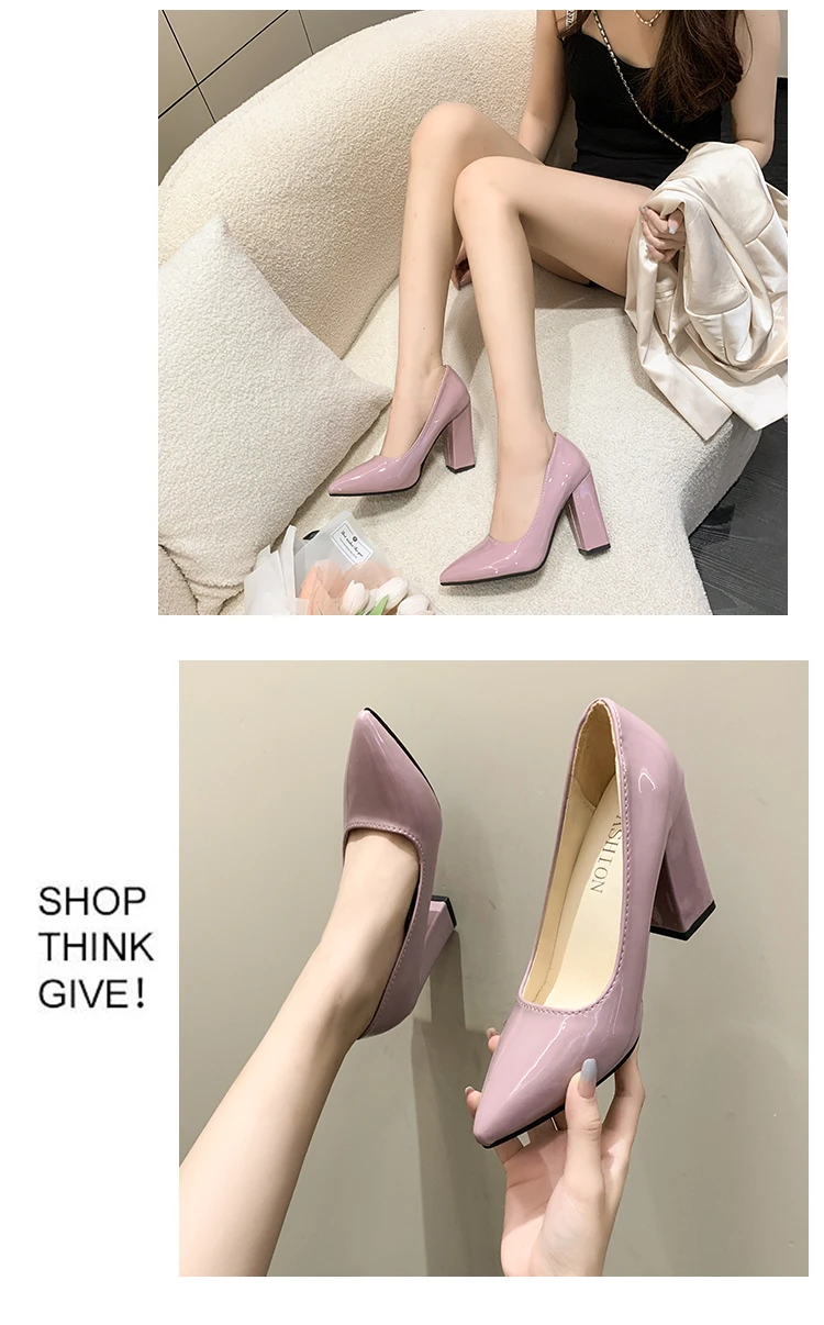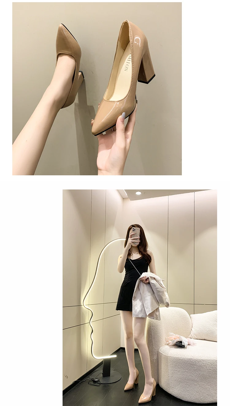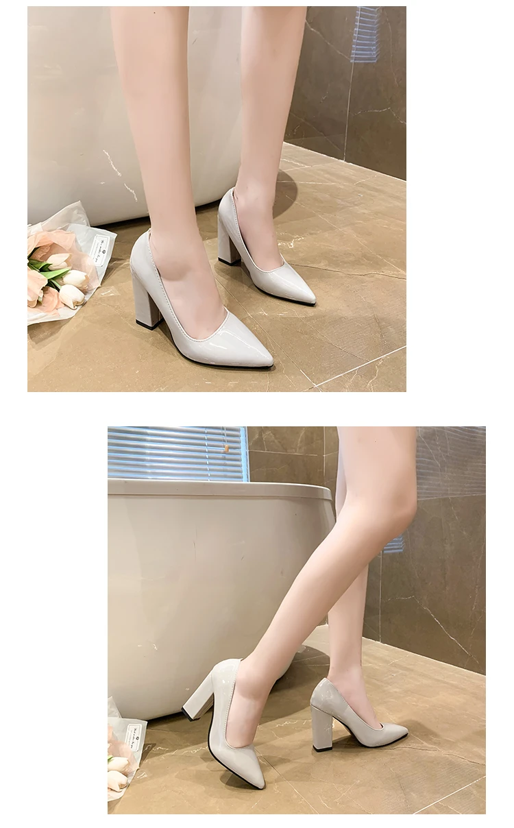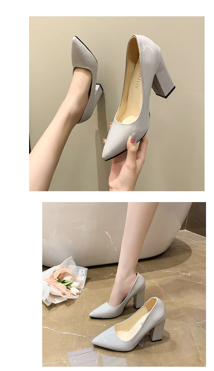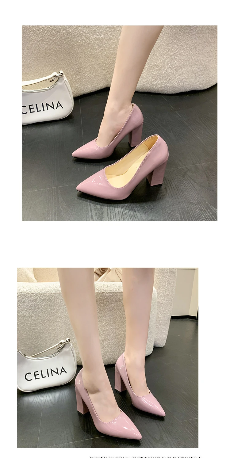 Aphixta 2022 Autumn 3.94Inch Chunky Heels Pumps Women Shoes Wine Red Patent Leather Sexy Party Official Leisure Plus Szie 33-46