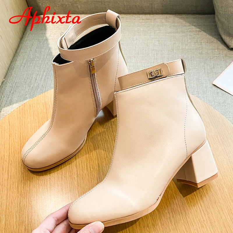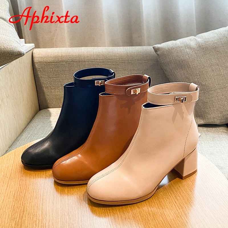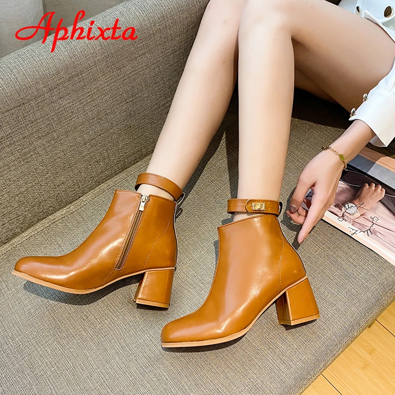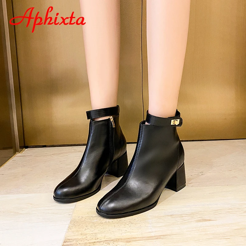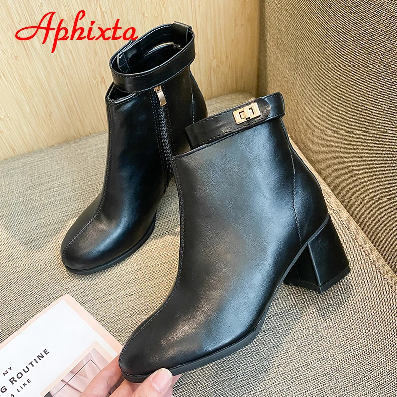Aphixta 2022 Autumn Winter Boots Women Zip 6cm Square Heel Ankle Boots Antiskid Fashion Platform Shoes Woman Boats