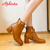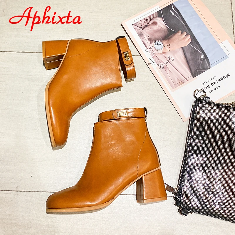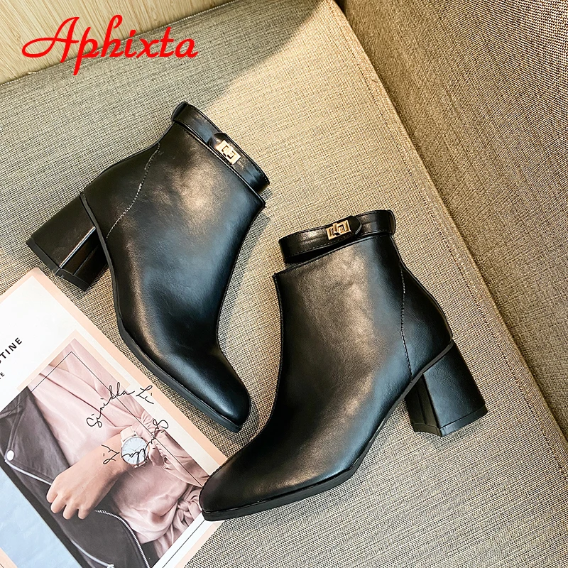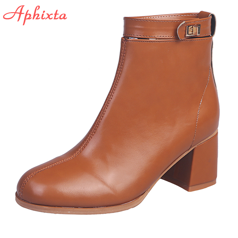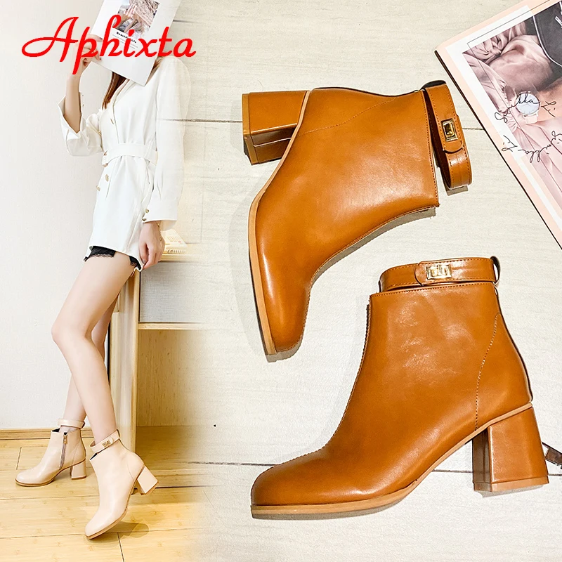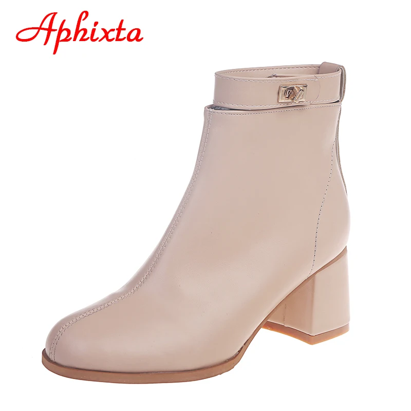 Aphixta 2022 Autumn Winter Boots Women Zip 6cm Square Heel Ankle Boots Antiskid Fashion Platform Shoes Woman Boats