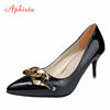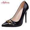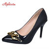Aphixta 2022 Black High Stiletto Heels Women's Pumps Fashion Big Chain Buckle Pointed Toe Patent Leather Shoes Super Size 50