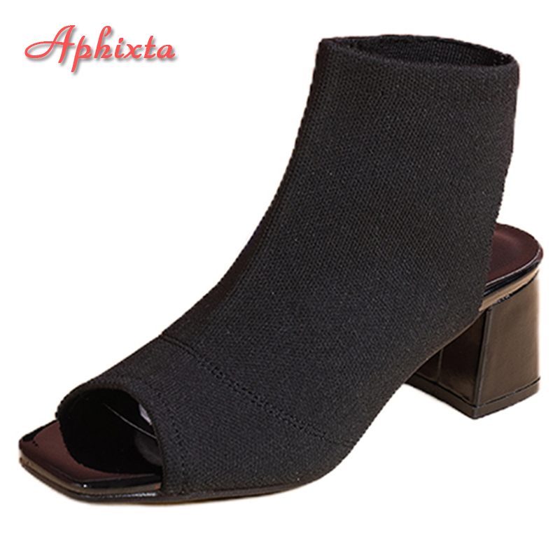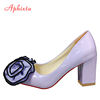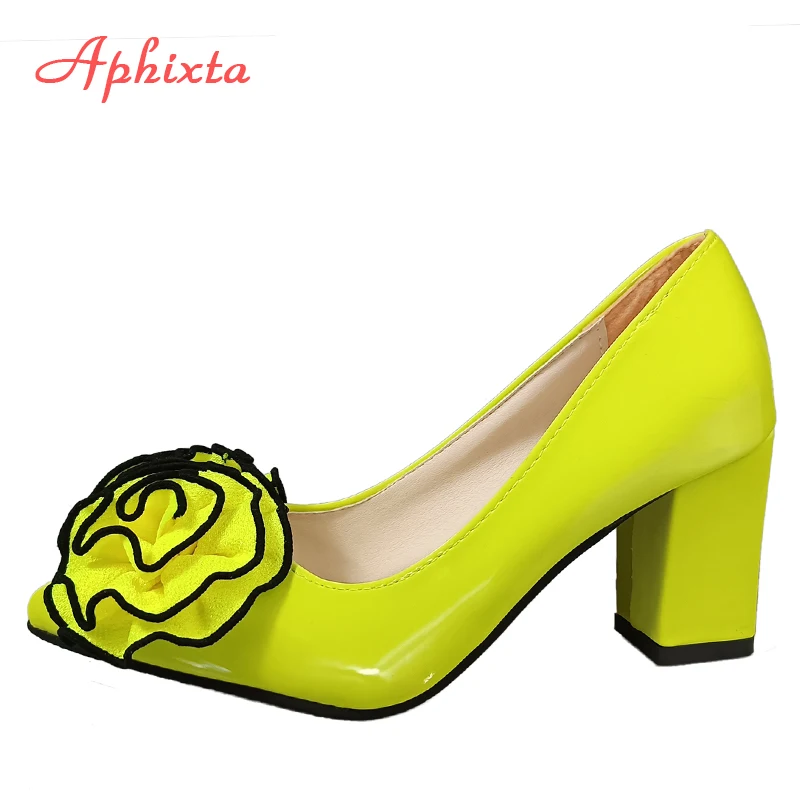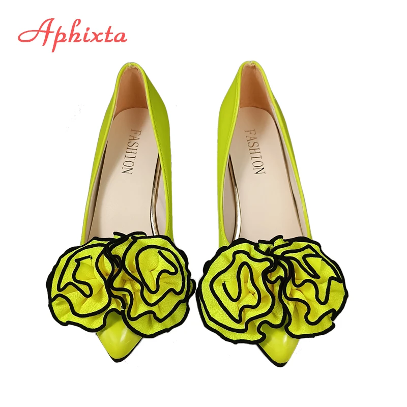 Aphixta 2022 Hot Sale Big Rose Flowers 7cm Chunky Heels Pumps Women Shoes Pointed Toe Appliques Pumps Super Big Size 30-50