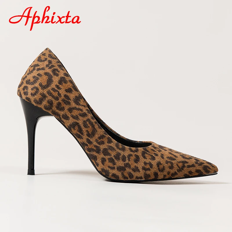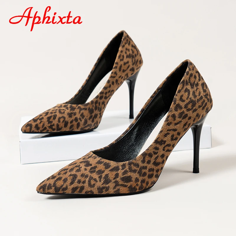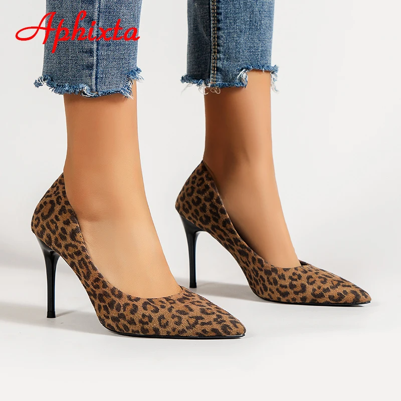 Aphixta 2022 Leopard Pointed Toe Pumps Women Stiletto Heel Shoes 7cm Heels Wedding Party Shoes Woman Big Size 42