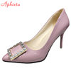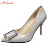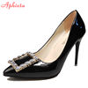 Aphixta 2022 New 10cm Thin Heels Shoes Women Pumps Wedding Party Official Leisure Crystals Luxury Buckle Black Super Big Szie 48