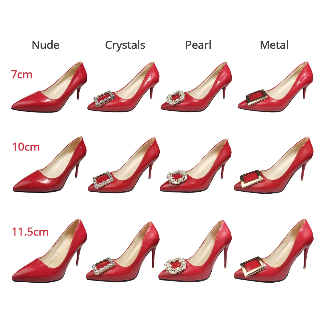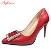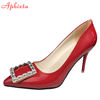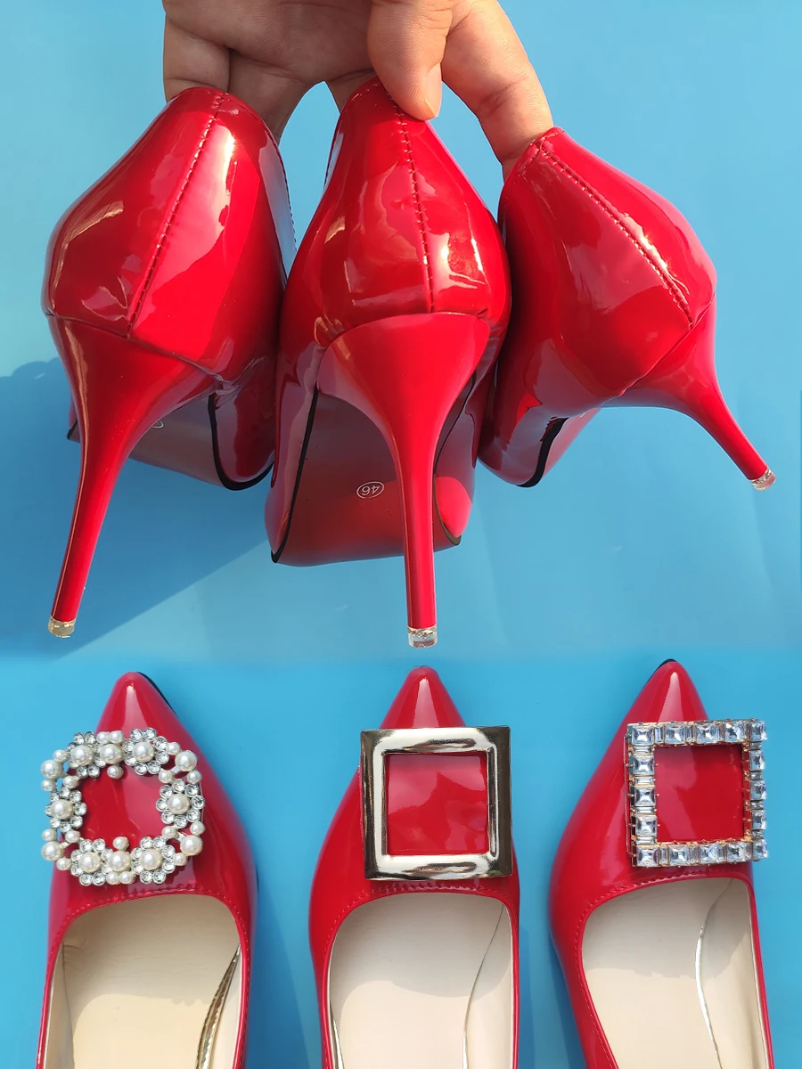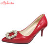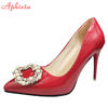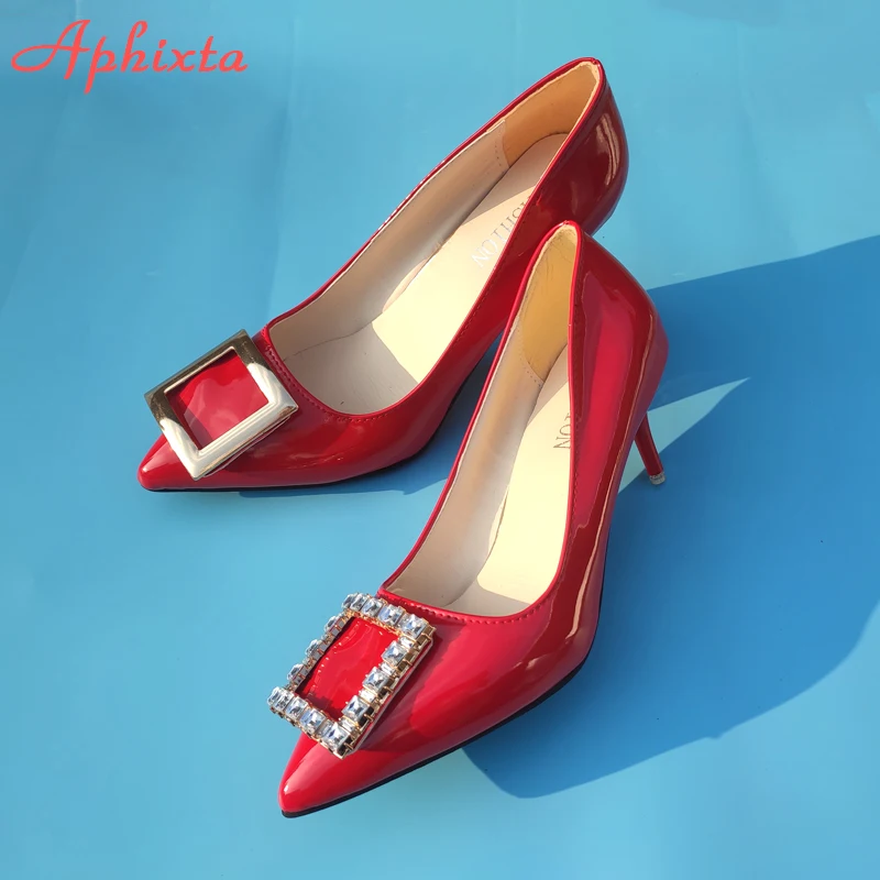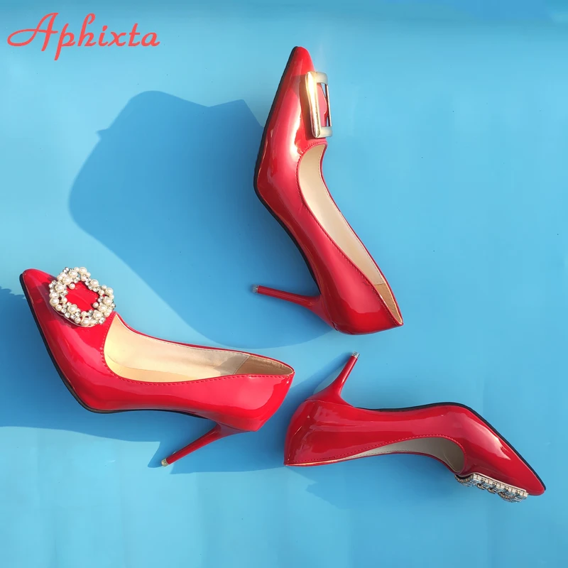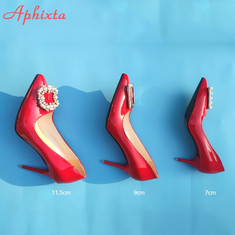 Aphixta 2022 New 7cm 10cm 11.5cm Thin Heels Shoes Women Pumps Pearl Crystals Luxury Buckle Party Official Leisure Big Szie 49 50