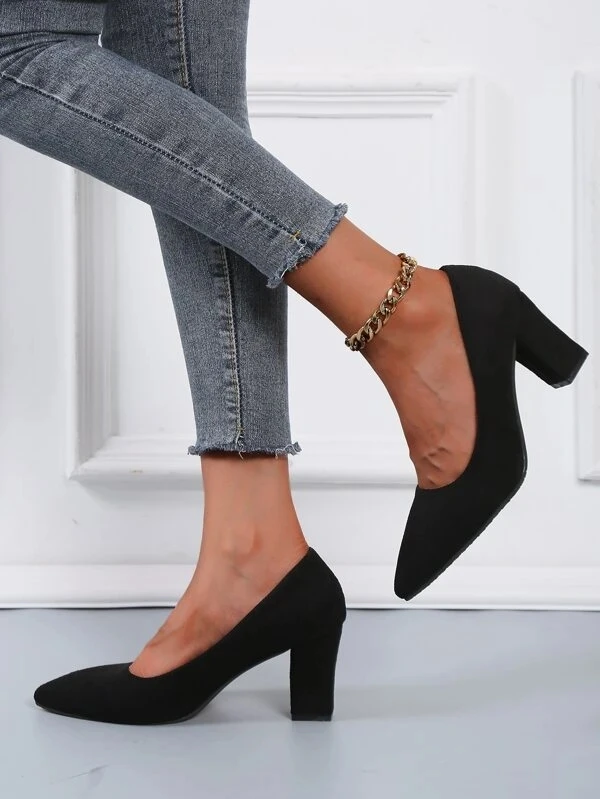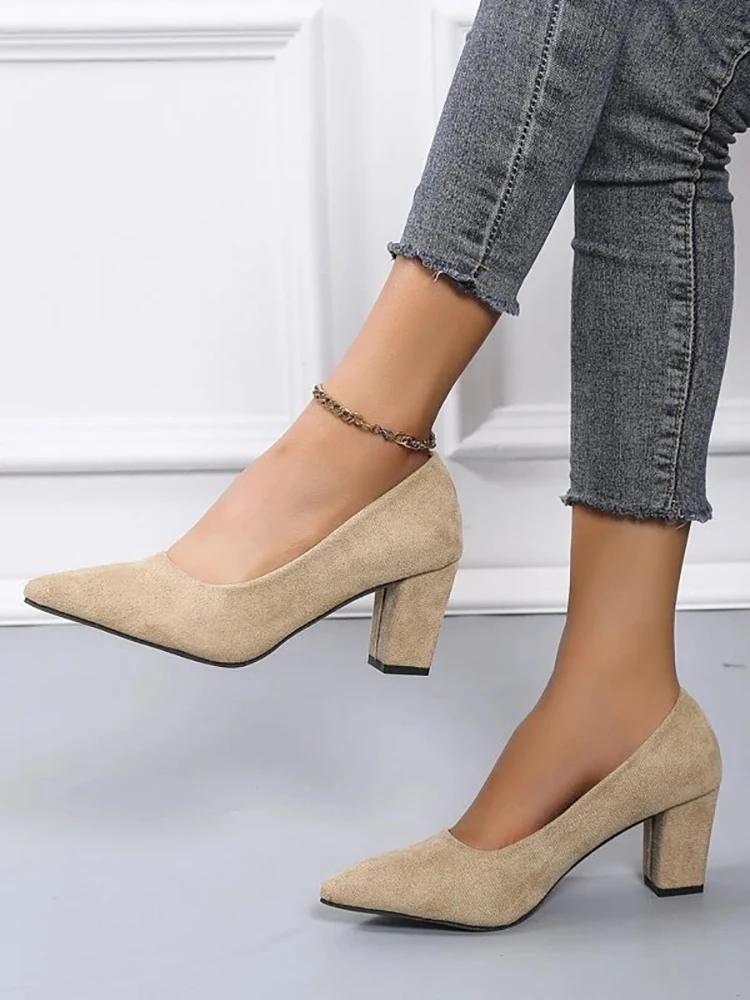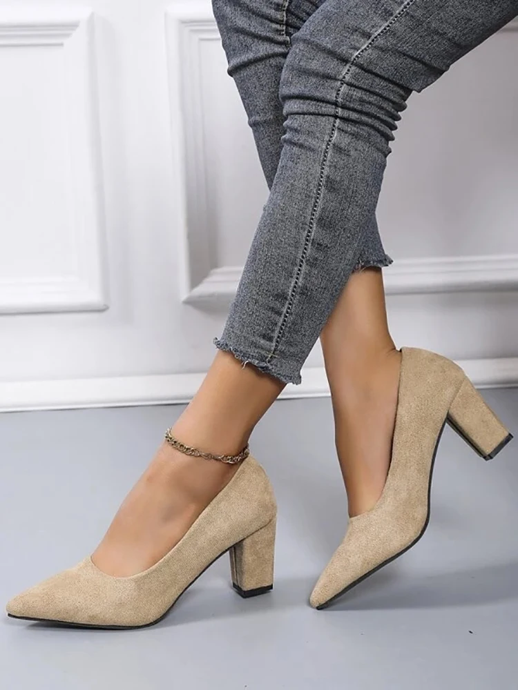 Aphixta 2022 New 7cm Chunky Heels Women Pumps Shoes Students And Mom Beige Suede Wedding Party Leisure Square Heels Plus Size