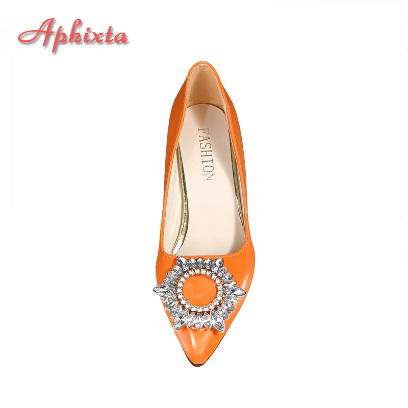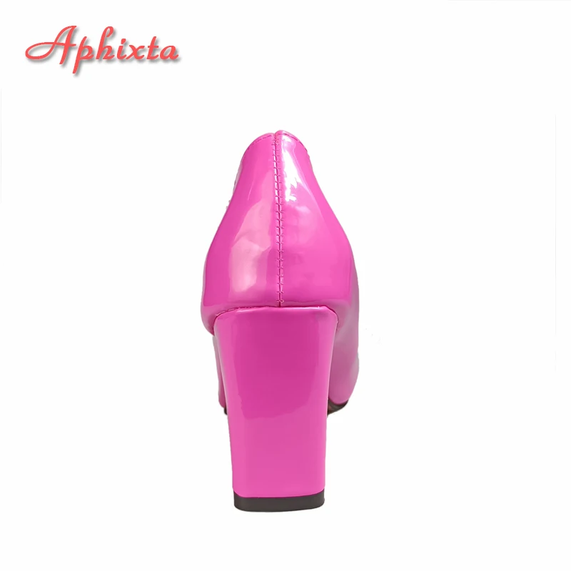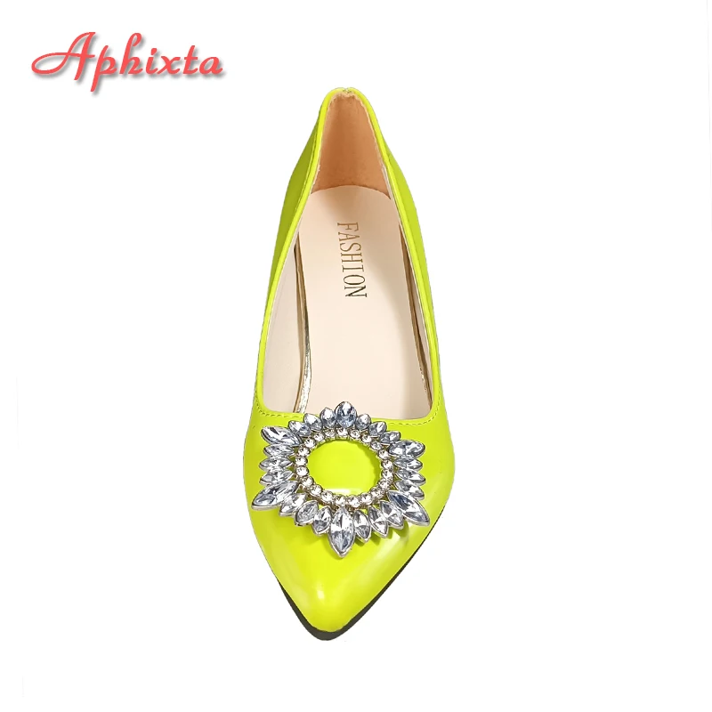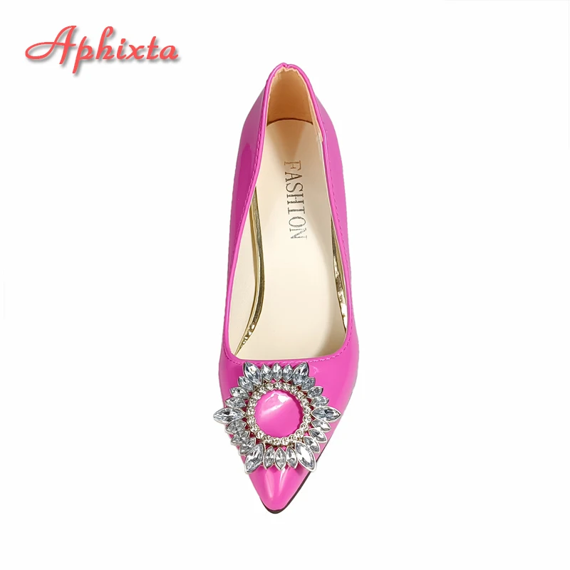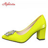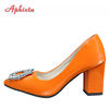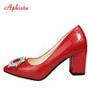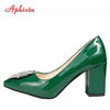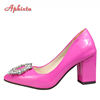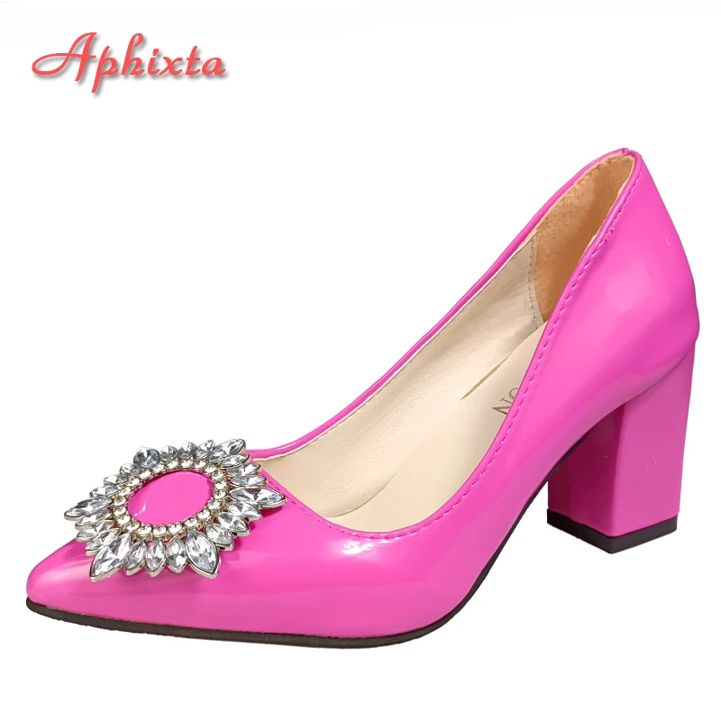 Aphixta 2022 Patent Leather 7cm Square Heels Pumps Women Shoes Crystal Sunflower Buckle Party Official Leisure Big Szie 31-50