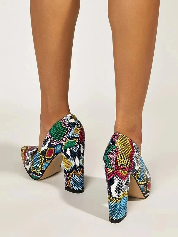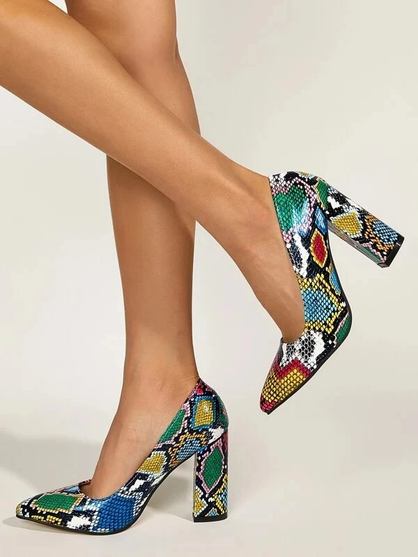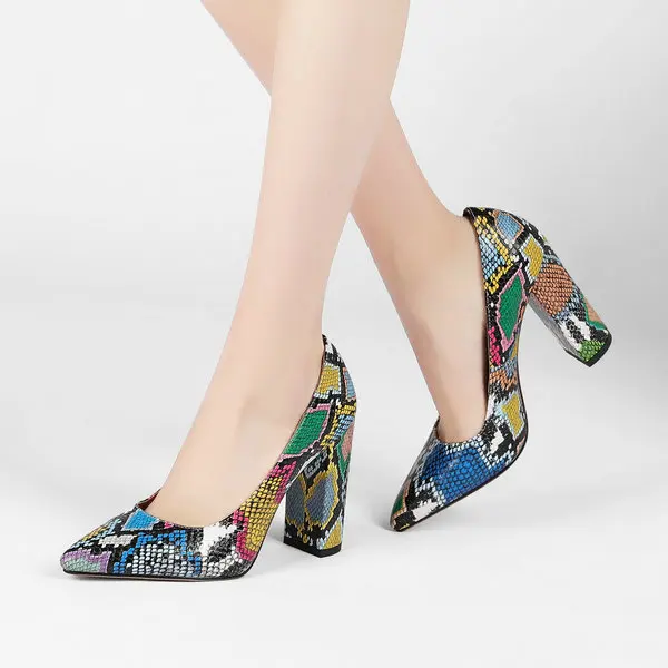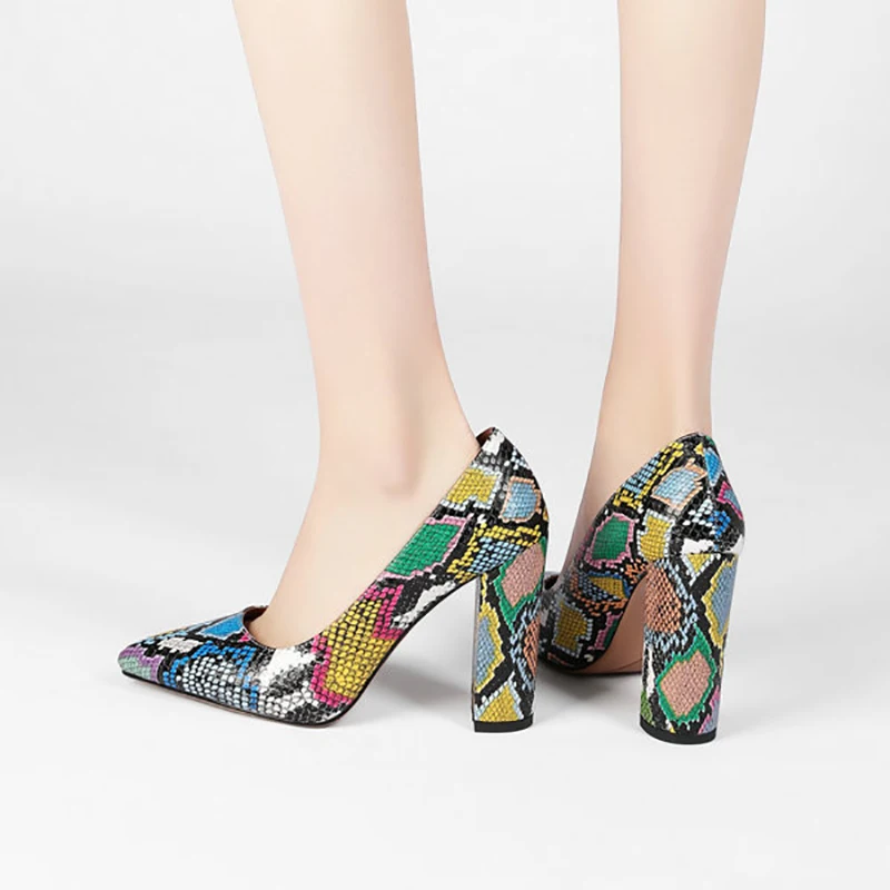 Aphixta 2022 Snakeskin Print Chunky Heeled Pumps Women Shoes Green Extreme Leather Sexy Wedding Party Leisure Square Heels