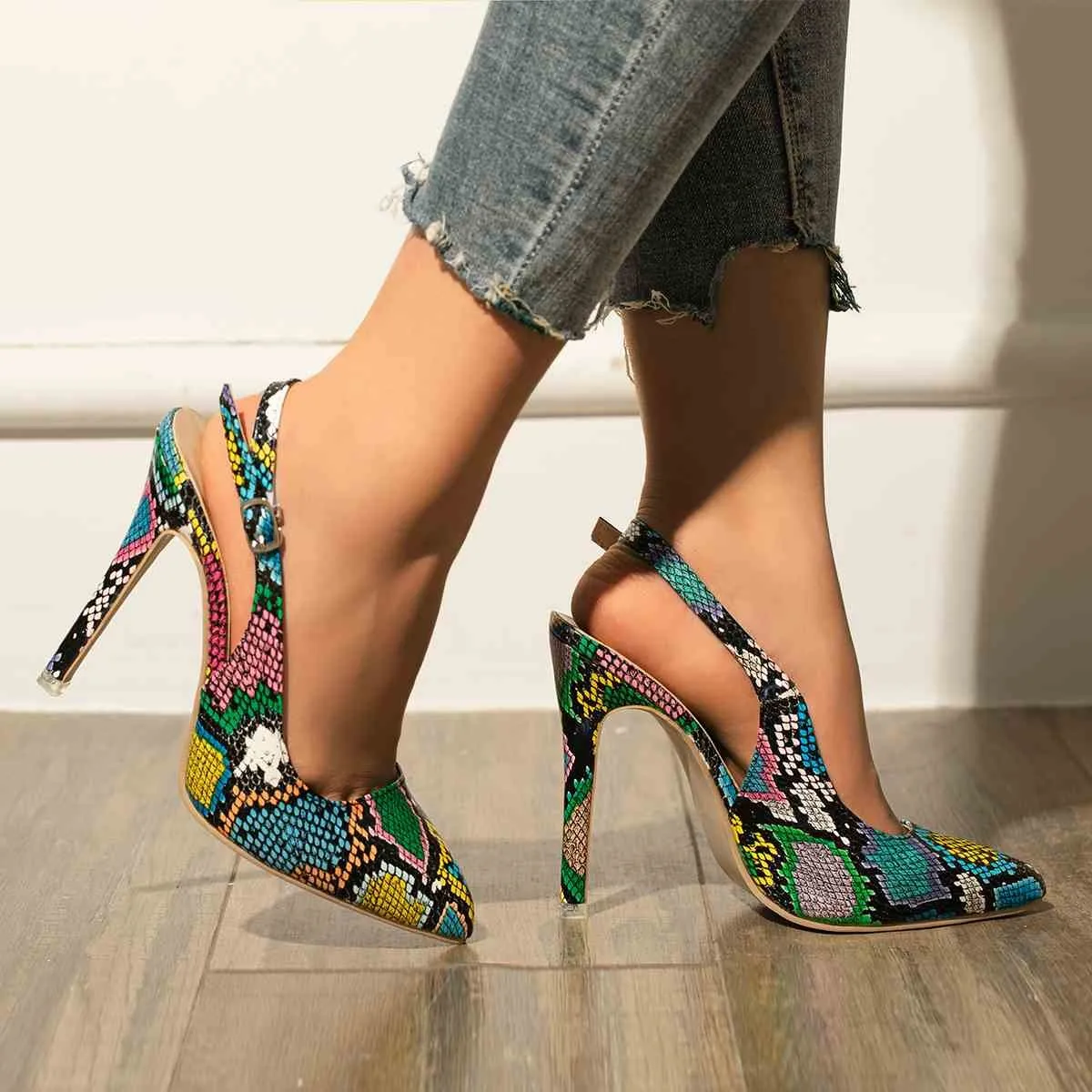 Aphixta 2022 Spring Summer Sandals Pumps Women Shoes Strip Buckle Thin Heels Snak Prints Office Ins Style Shoes Big Size 43