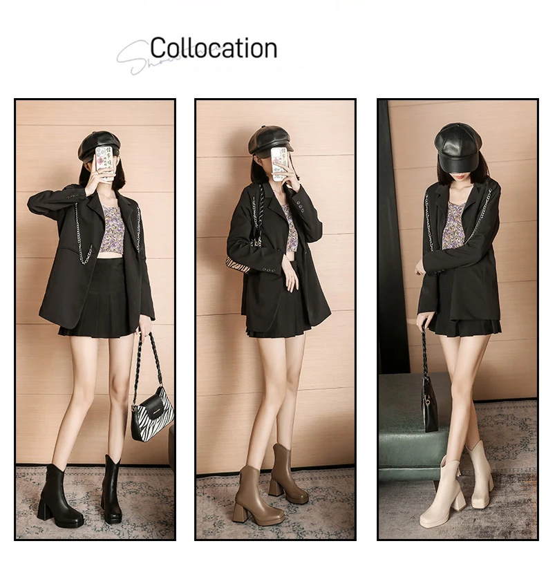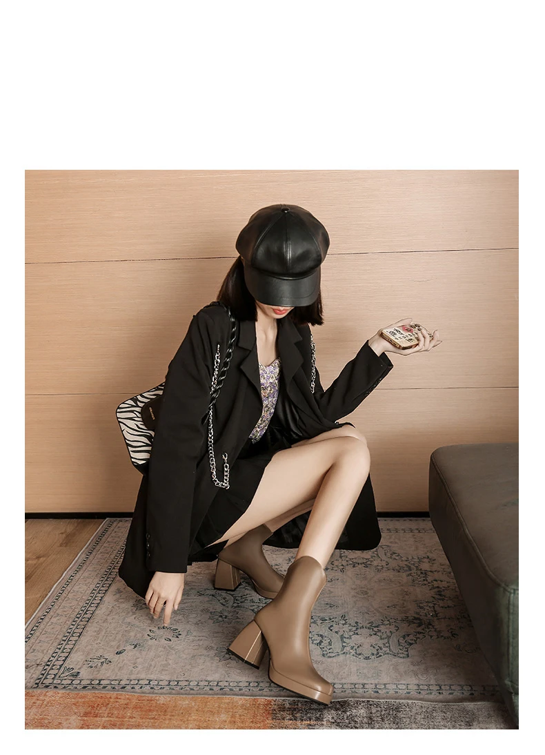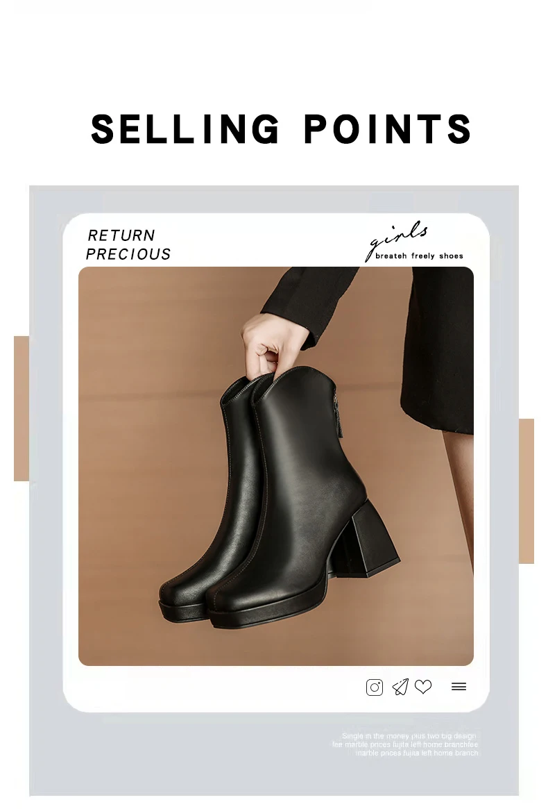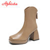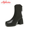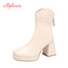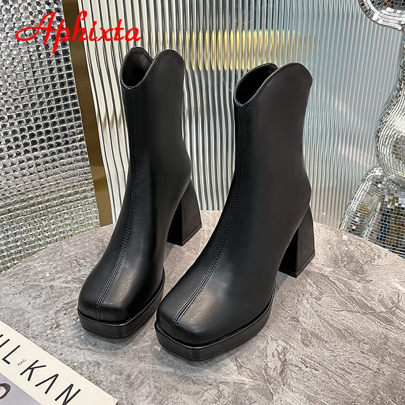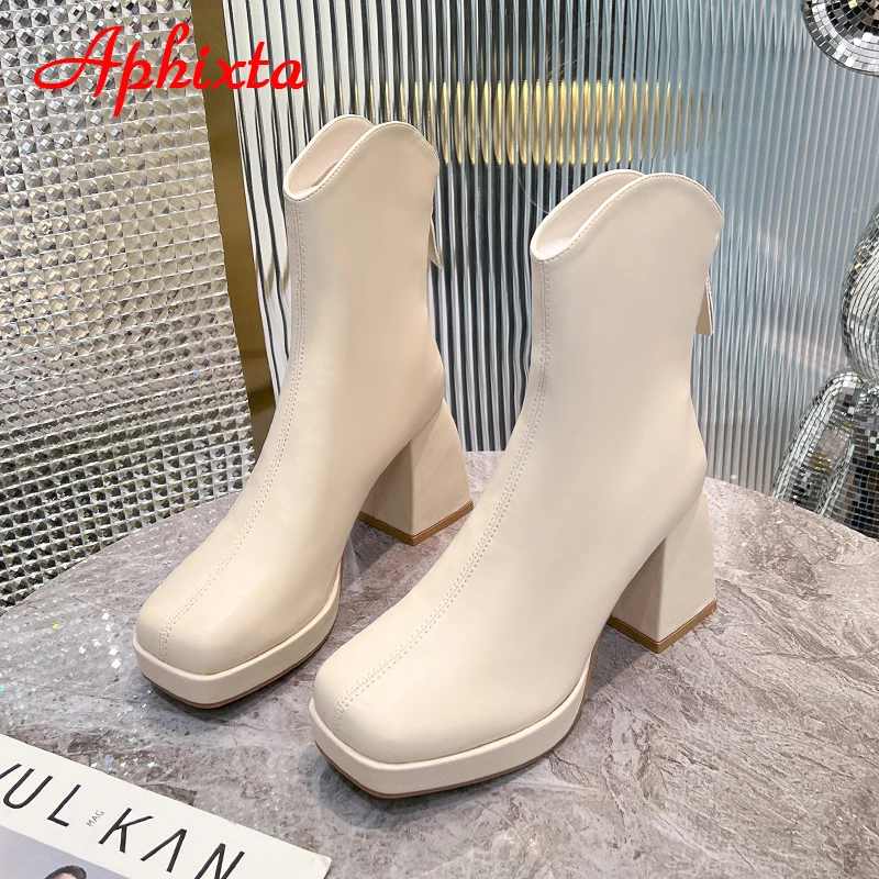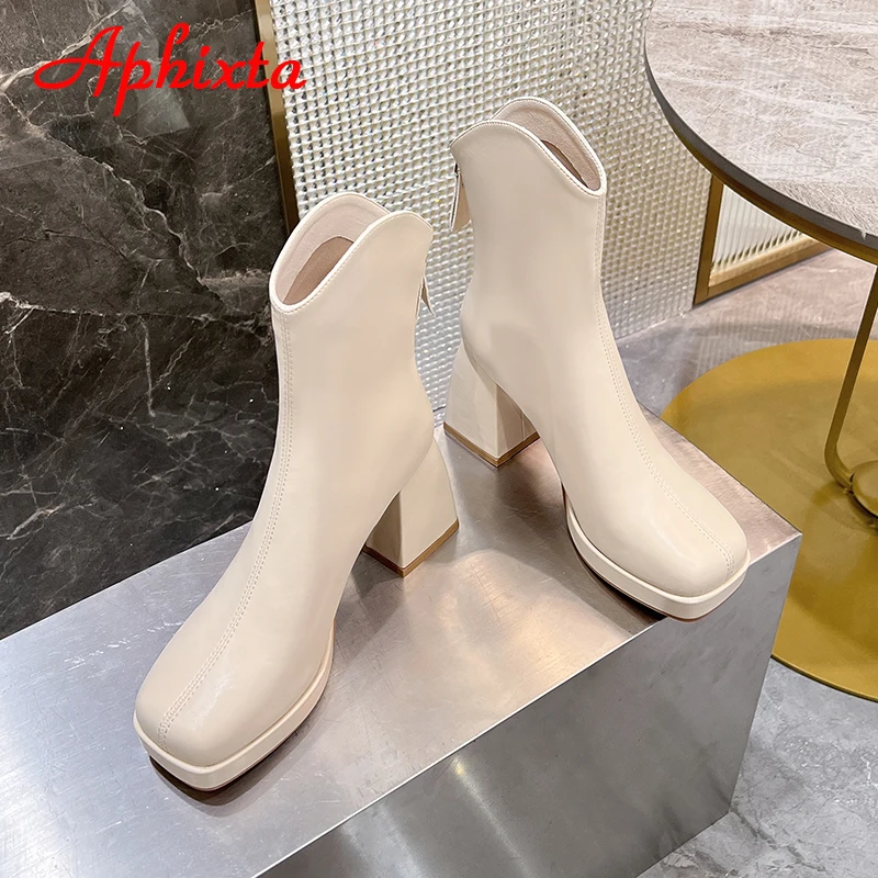 Aphixta 2022 Winter Warm Platform Short Ankle Boots Women 8cm Square Heel Back Fringe Zip Lady Footwear Shoes Big Size 43
