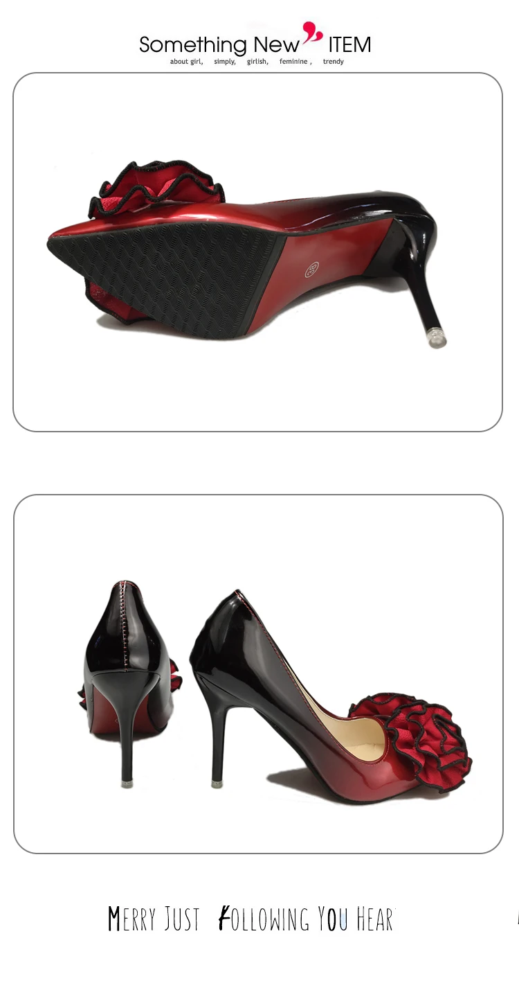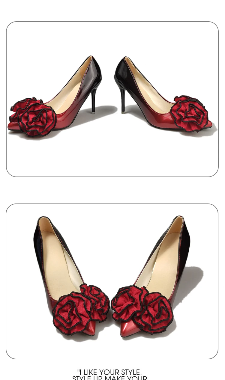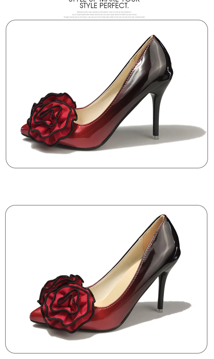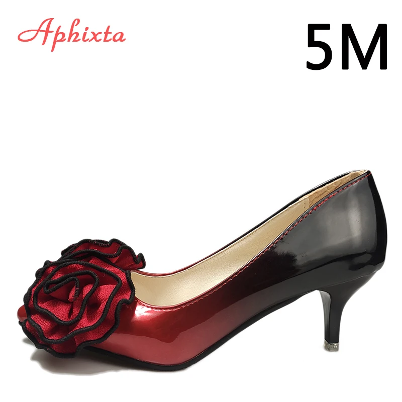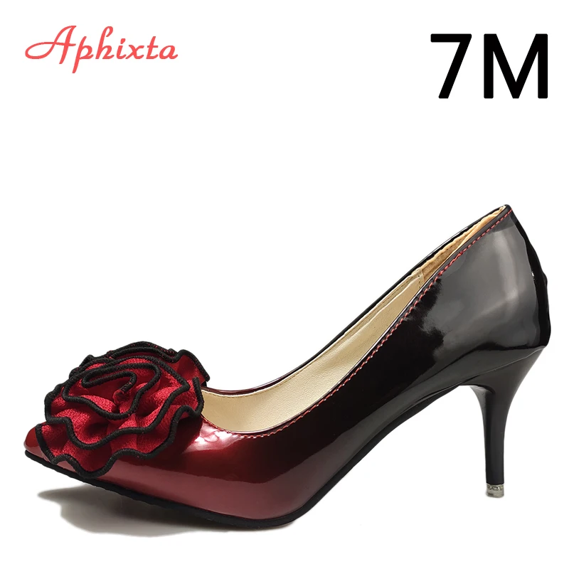 Aphixta 3.93inch Heels Pointed Toe Pumps Women Flower Thin High Heel Shoes Gradient Discolor Patent Leather Wedding Shoes Woman